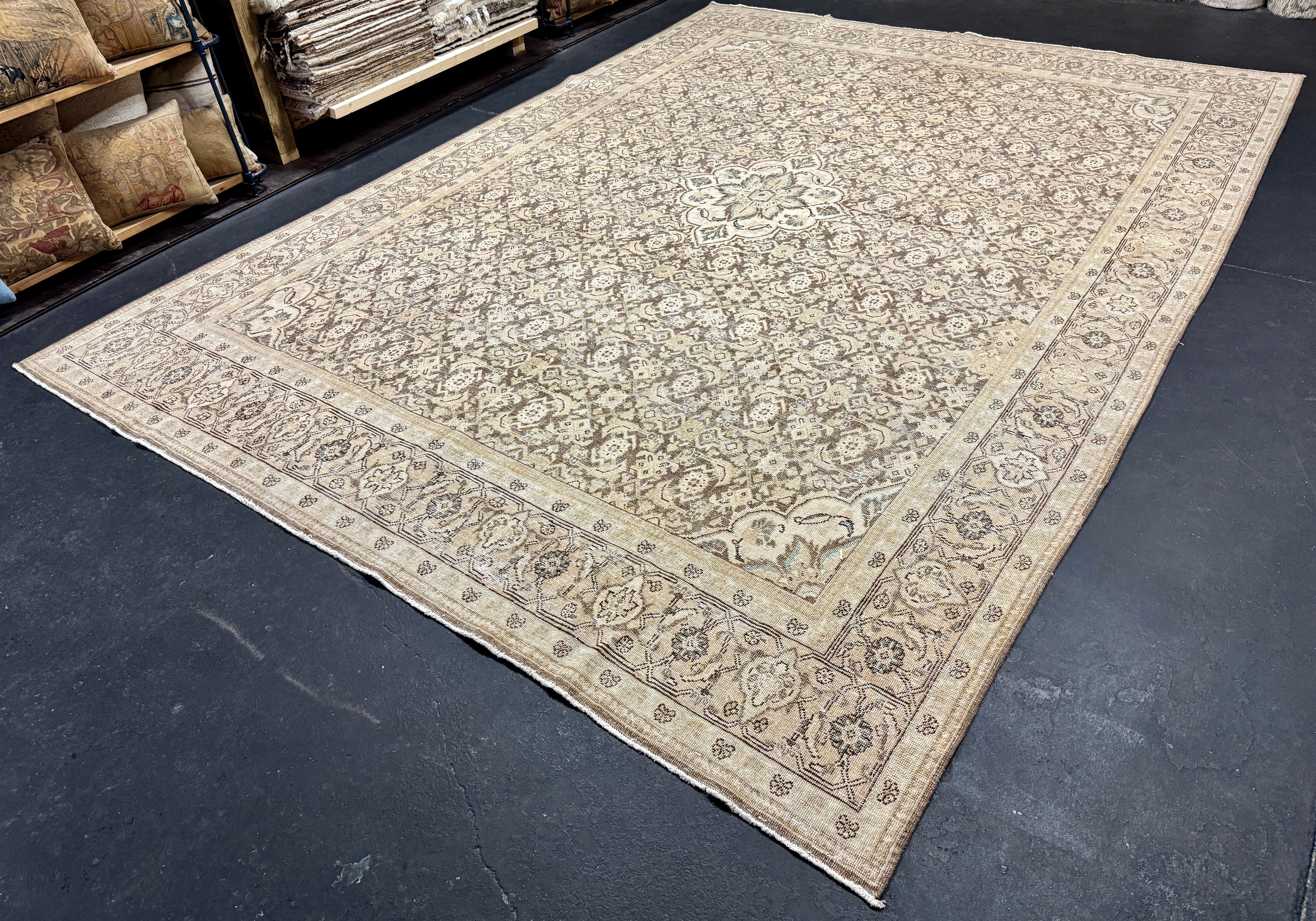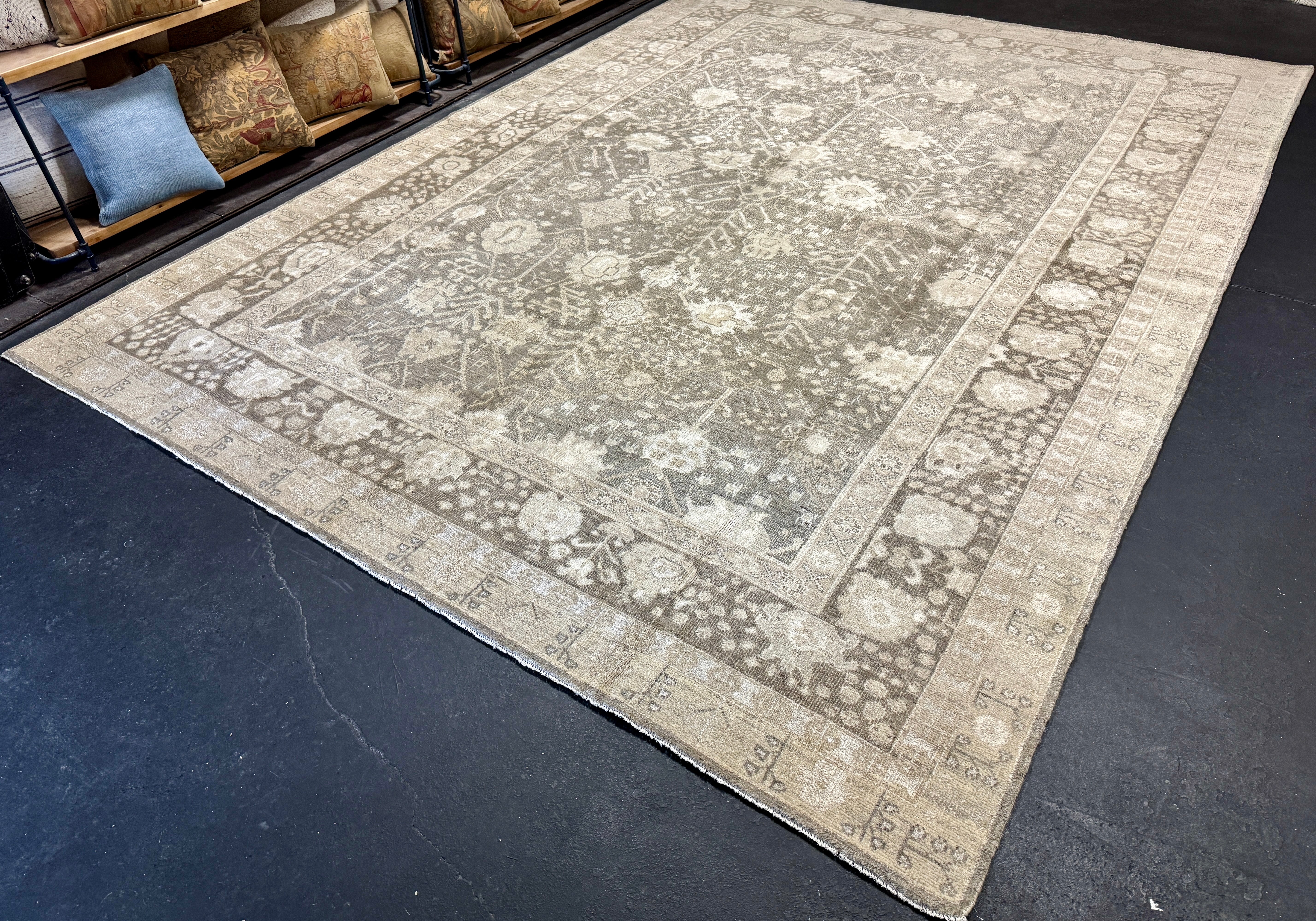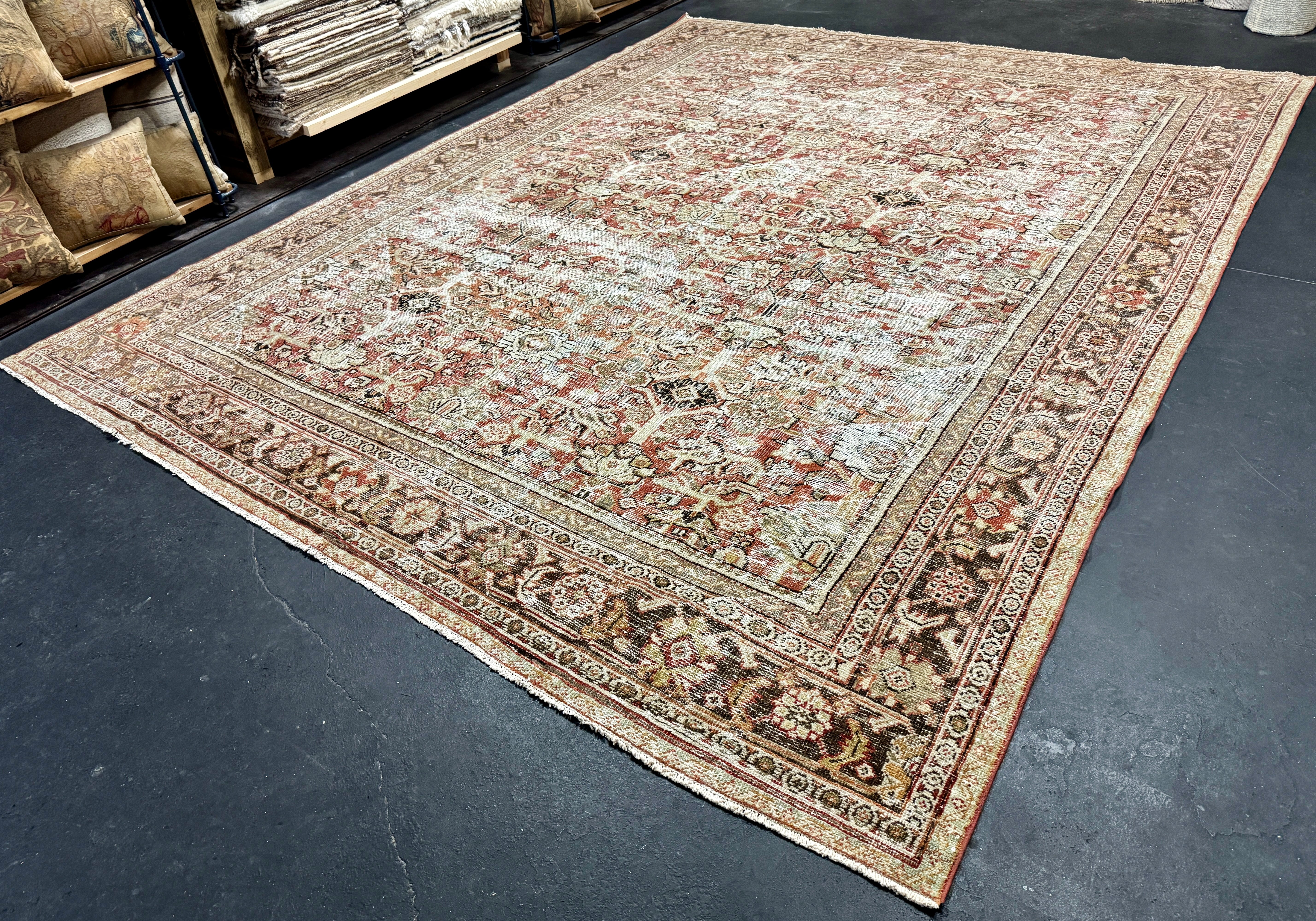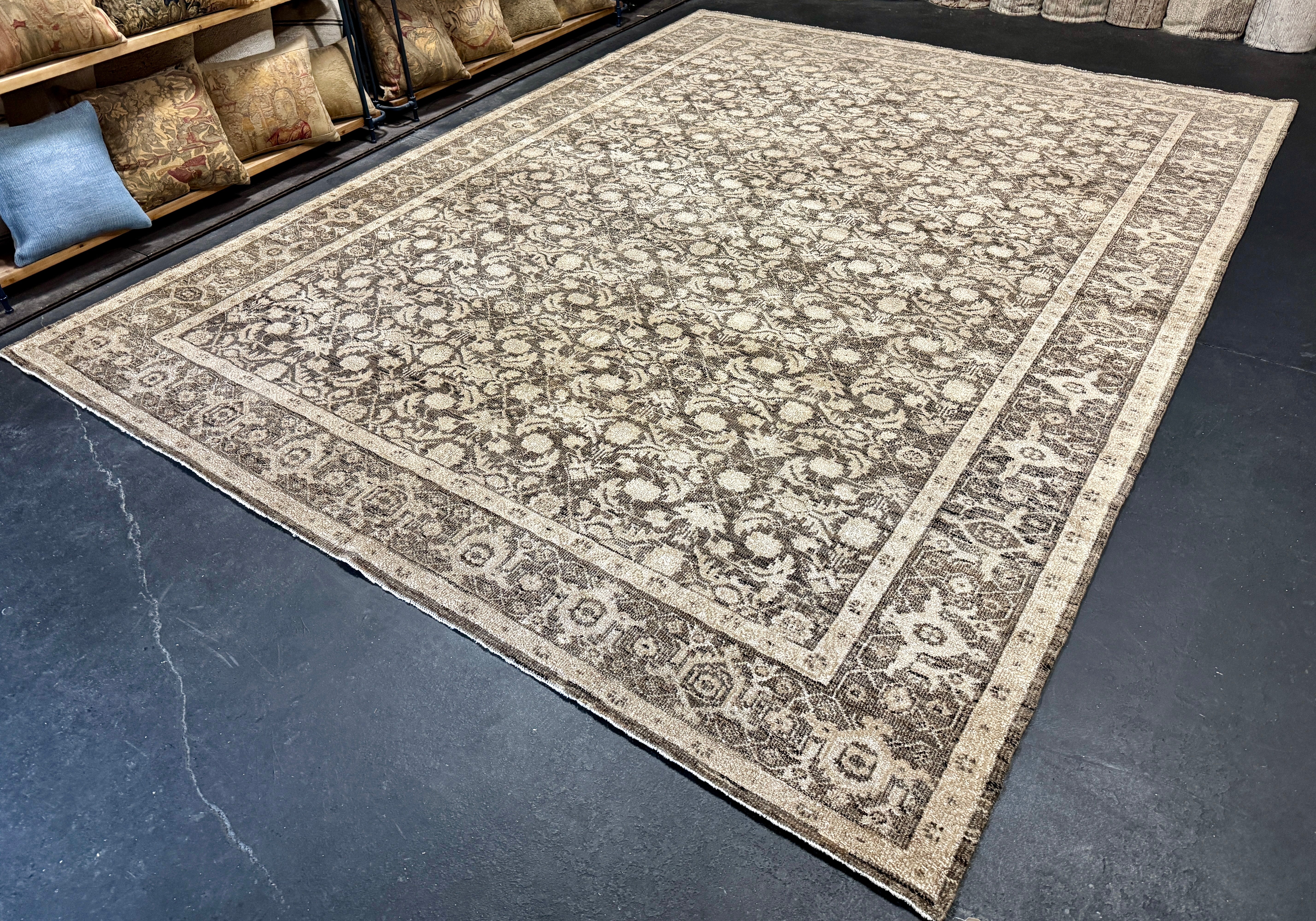 Our Antique and Vintage rugs are sourced from all around the world, including America. They are in preloved & owned condition with so much rich history, but are washed, restored, and blocked, exclusively at our wash plant in Oushak, Turkey to ensure sustainability at the utmost quality.