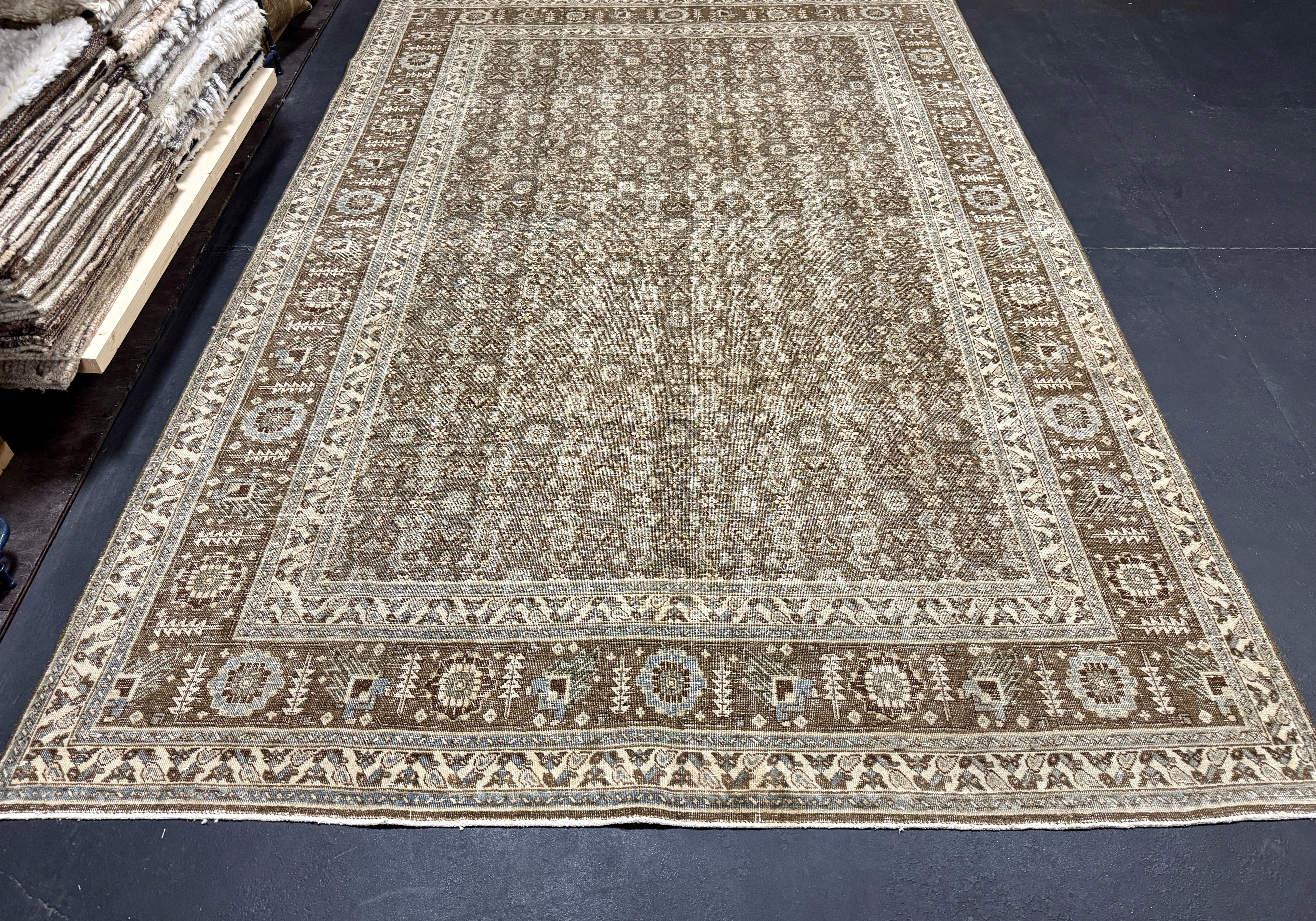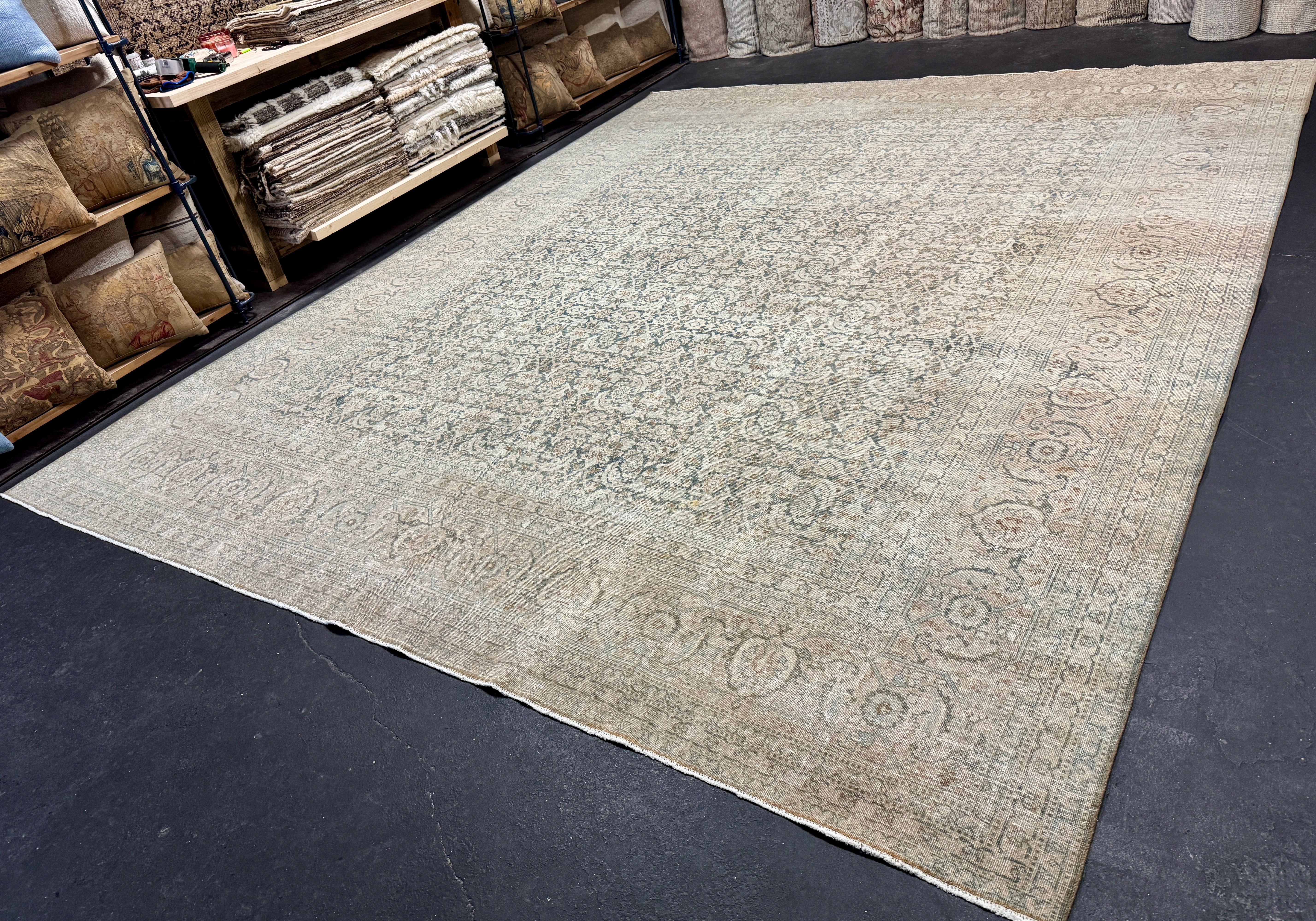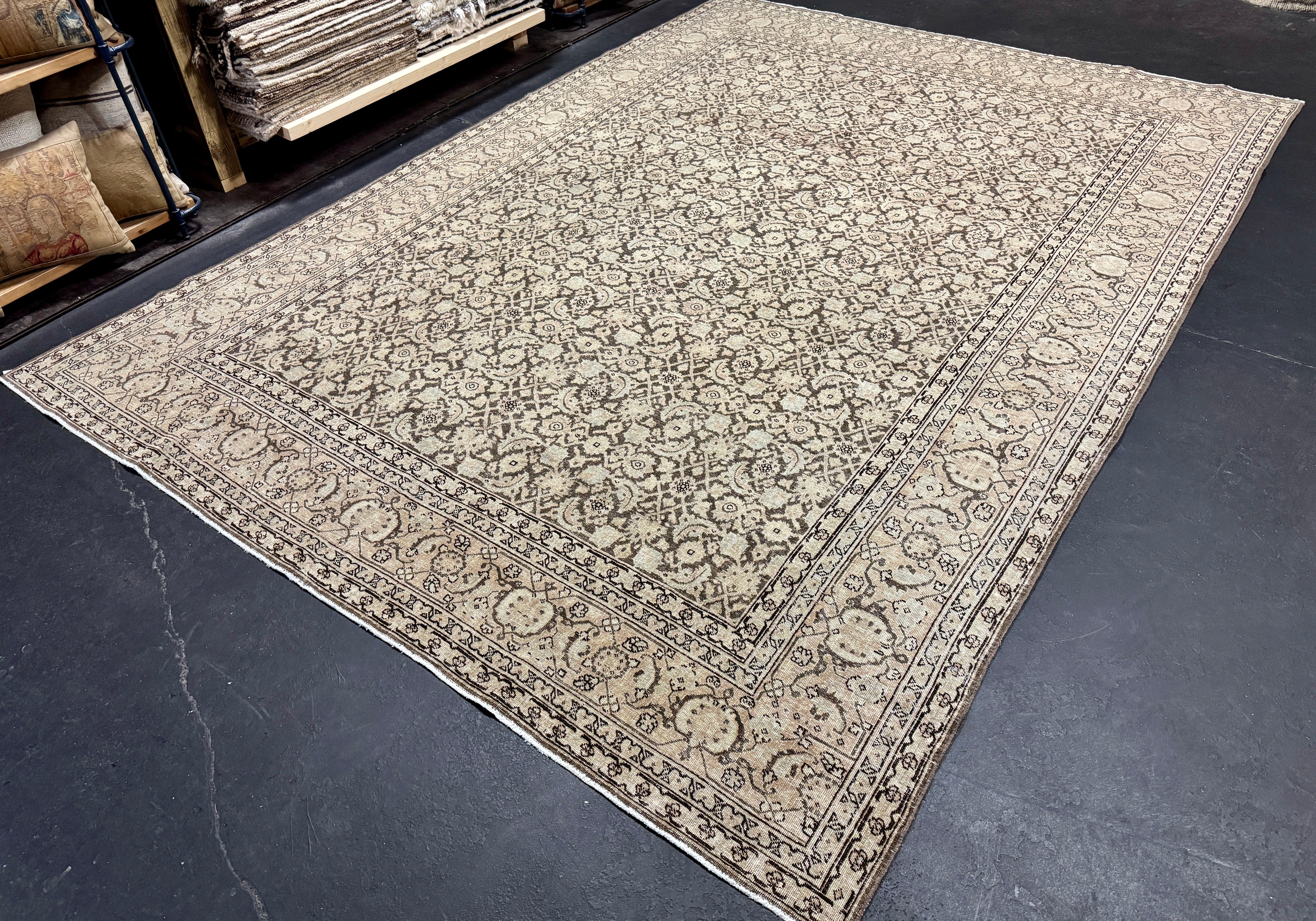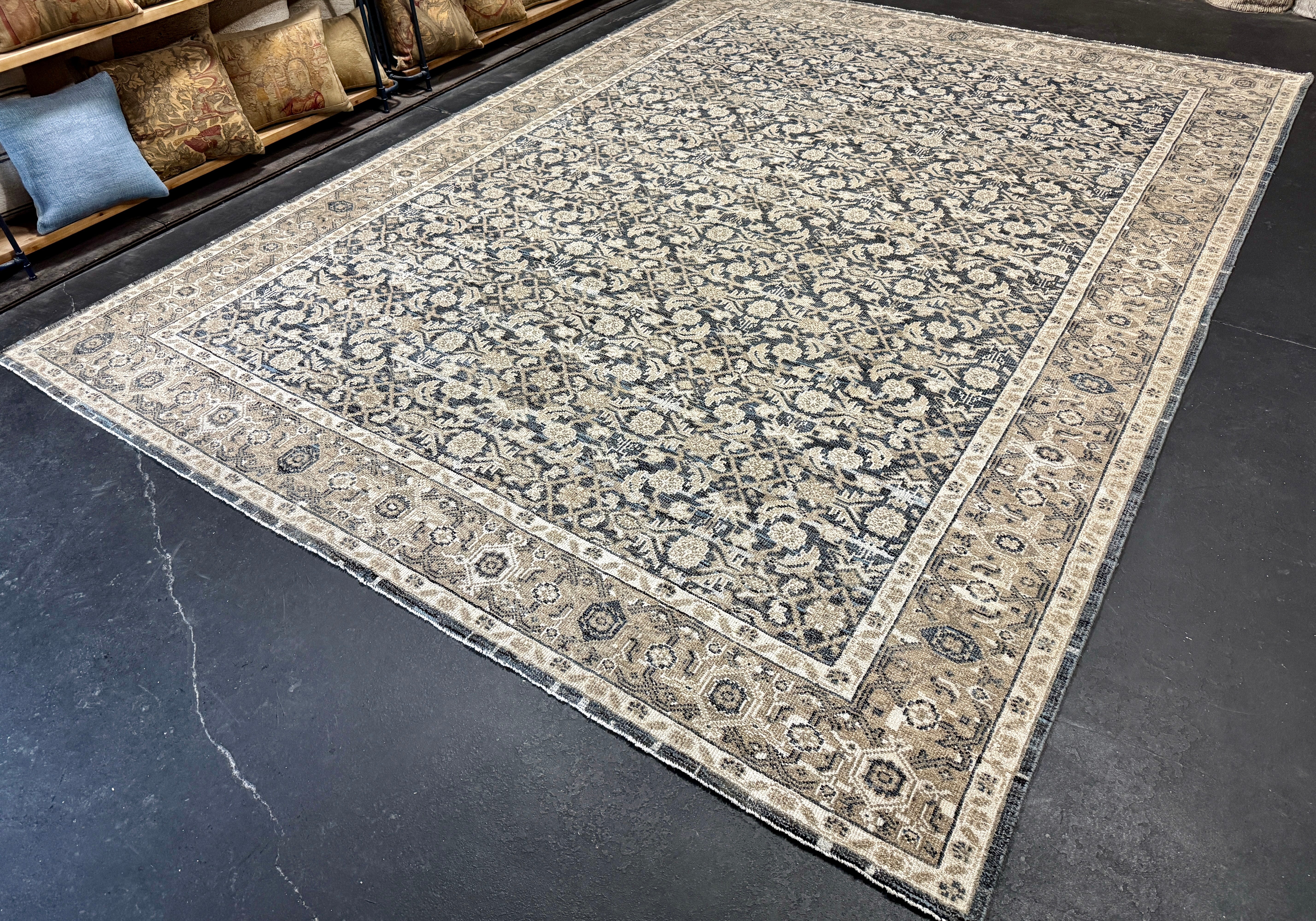Our Antique and Vintage rugs are sourced from all around the world, including America. They are in preloved & owned condition with so much rich history, but are washed, restored, and blocked, exclusively at our wash plant in Oushak, Turkey to ensure sustainability at the utmost quality.