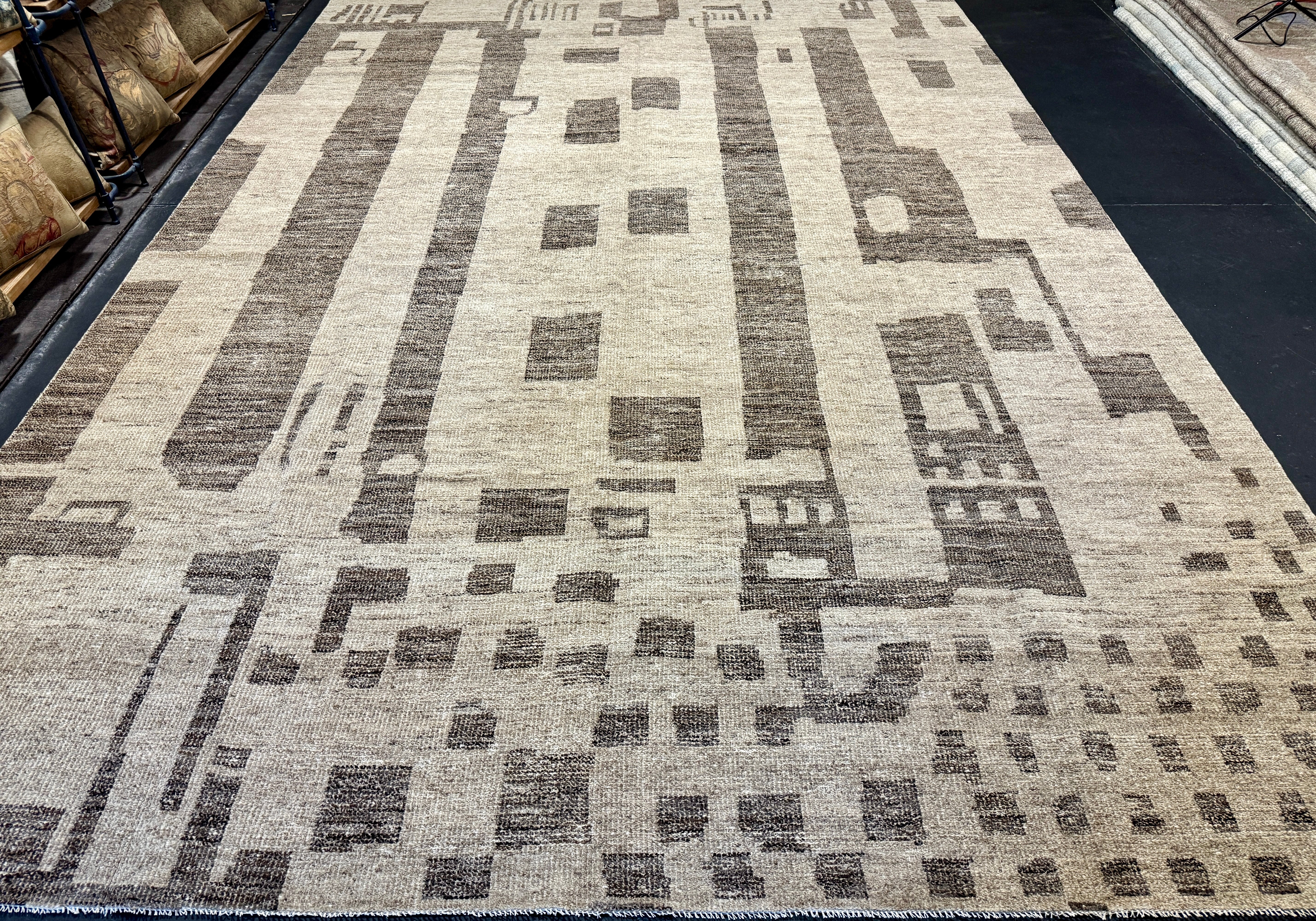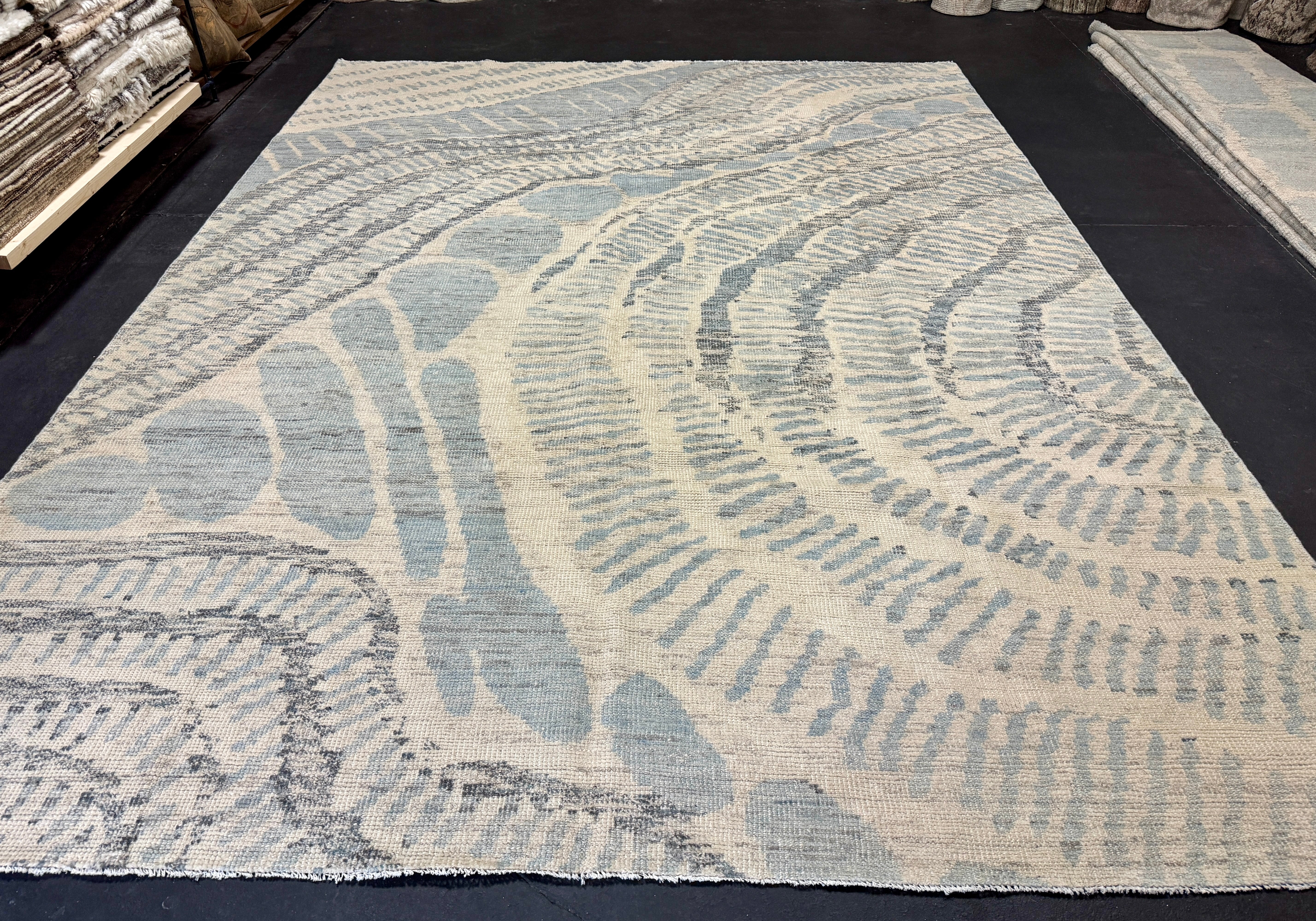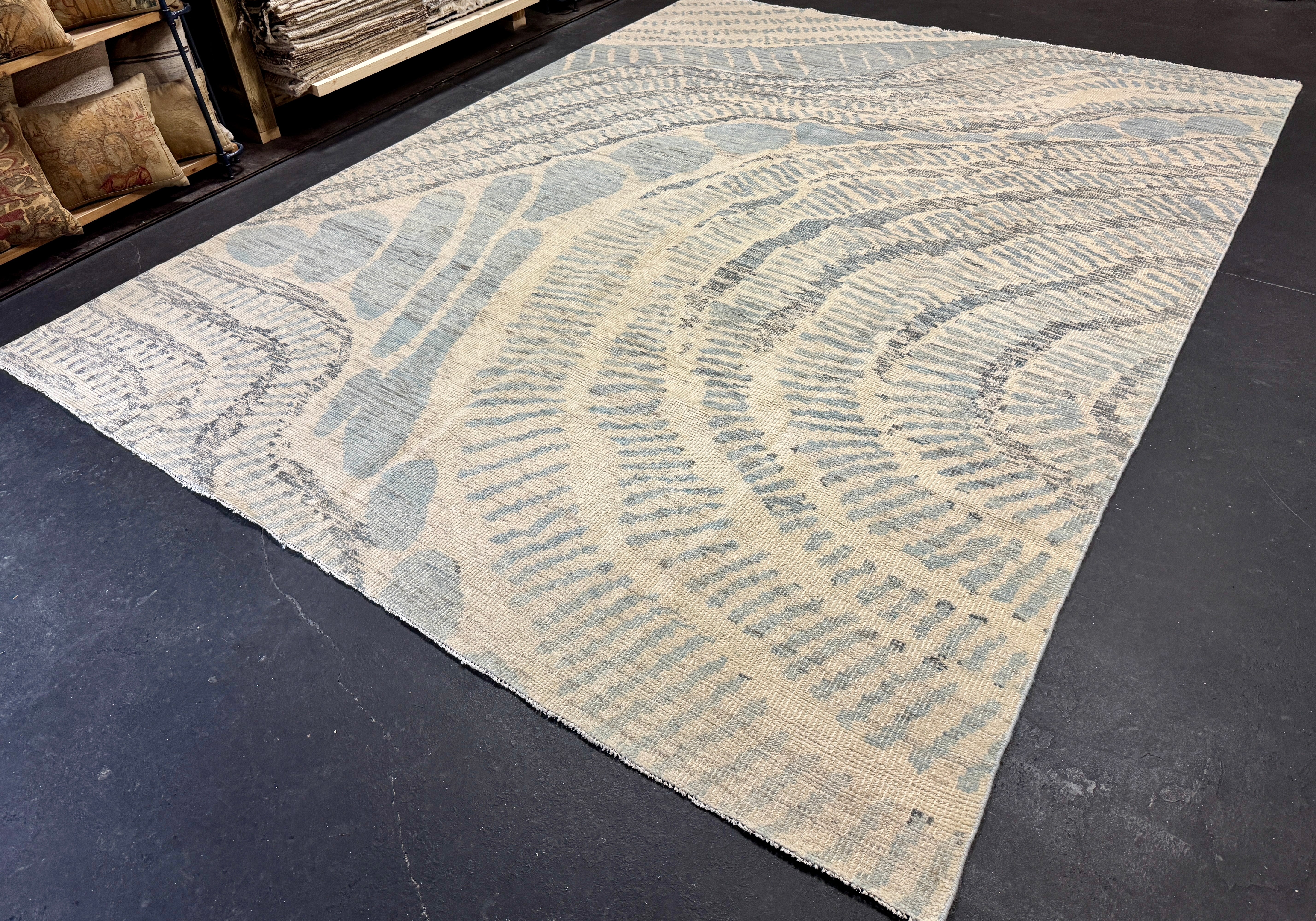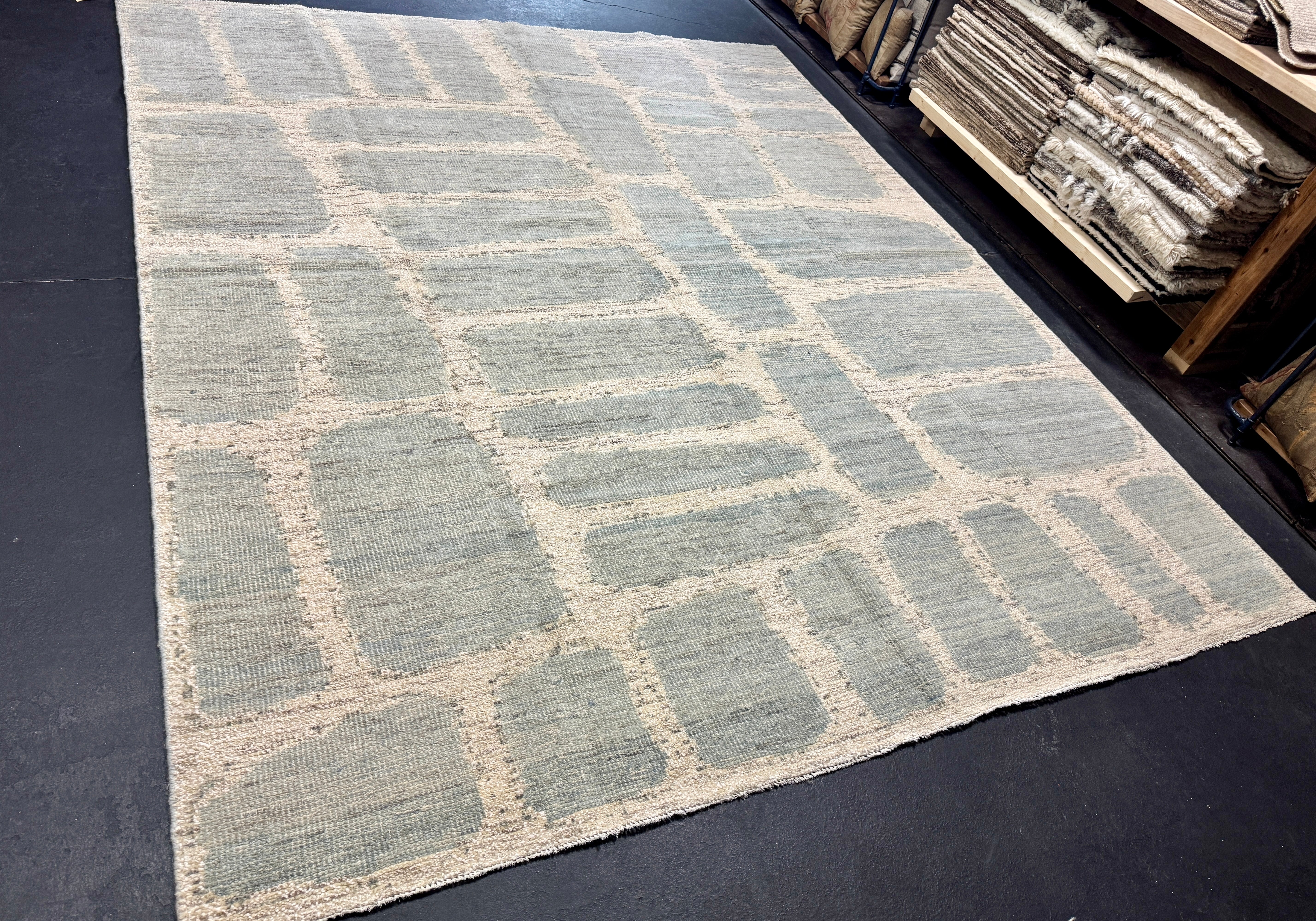 Our Moroccan style rug collection utilizes both New Zealand & Afghan wool. New Zealand wool, for the purity of the rugs whiteness, and undyed Afghan wool for it's natural Earth tones. The wool is then hand spun & woven either in Turkey (if the rug requires Turkish knot) or India ( if it’s a Persian knot). These pieces are hand knotted per Moroccan designs, which is why this collection bears the name. Regardless of where they are crafted, all our pieces are shipped to Turkey for final finishings.