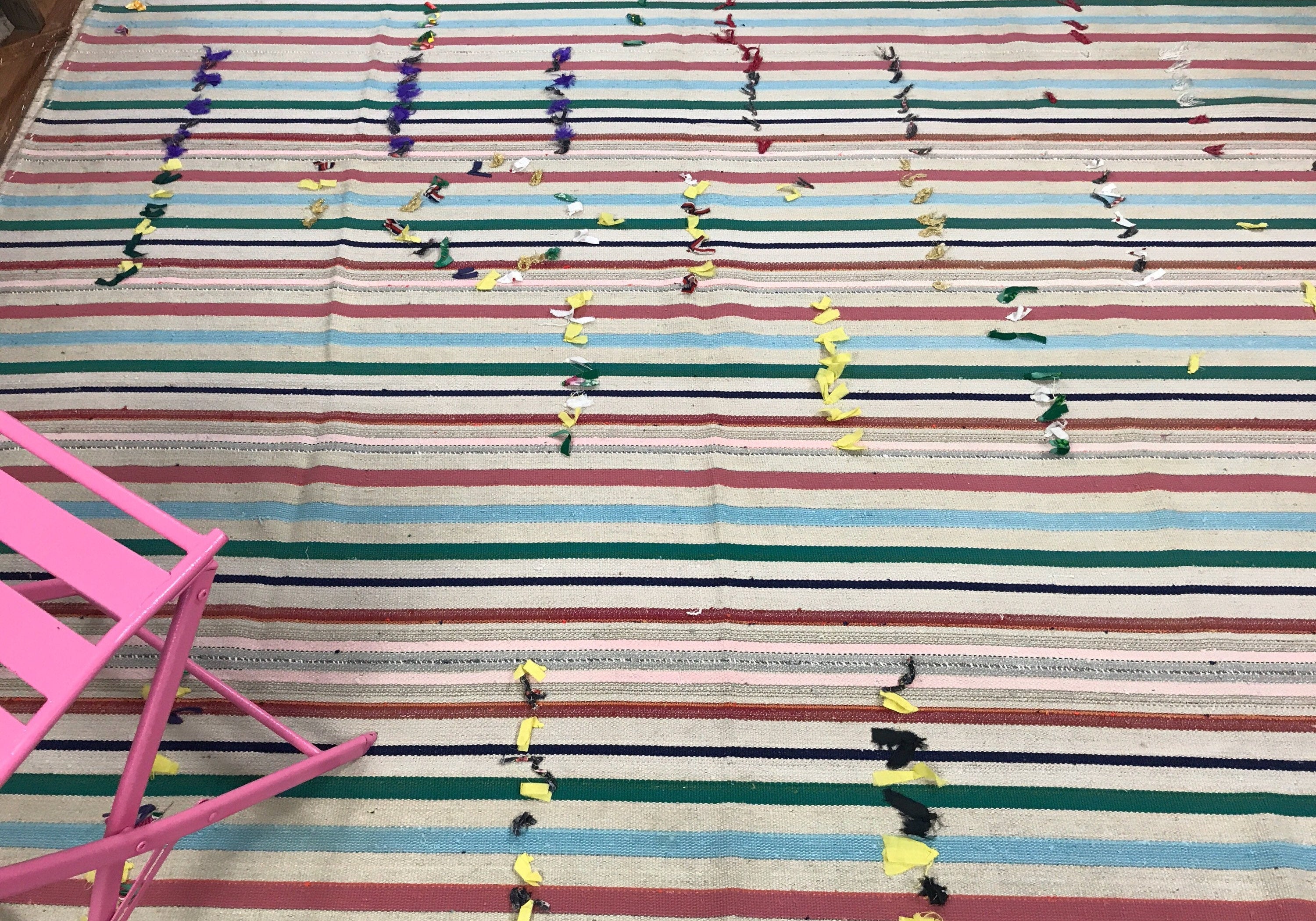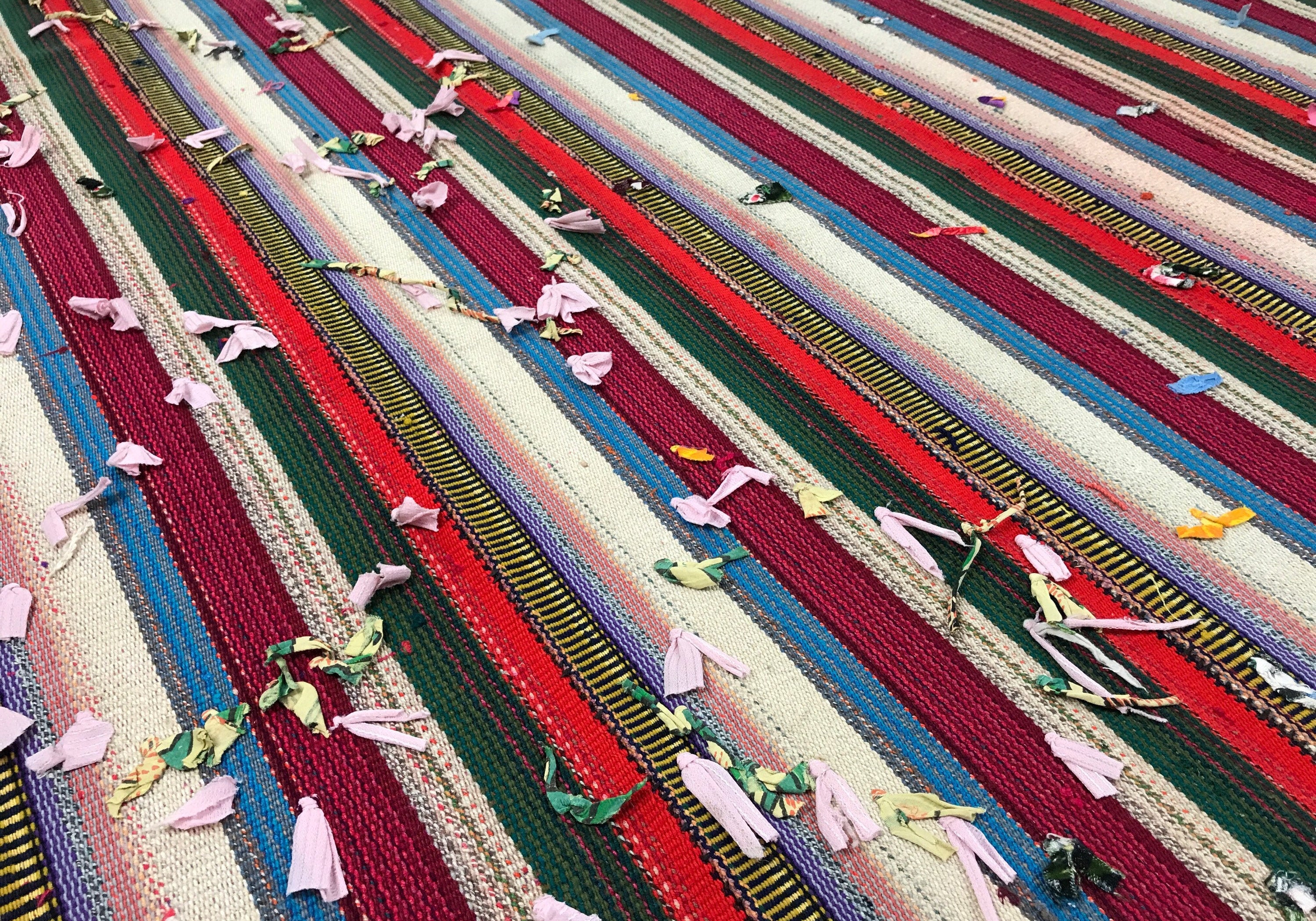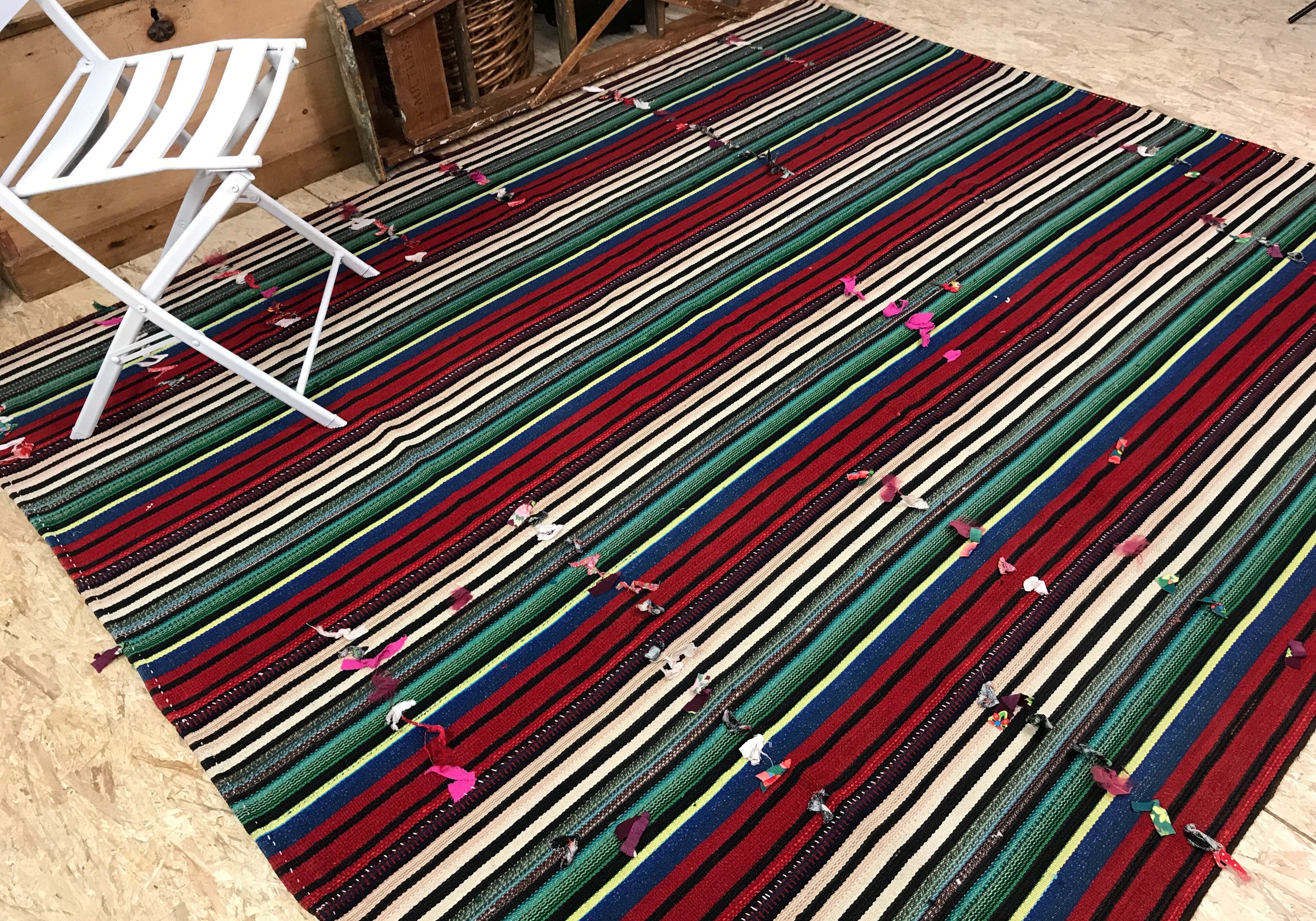 7 x 8 MCM Filikli Kilim Red, White, Green, and Blue Stripes