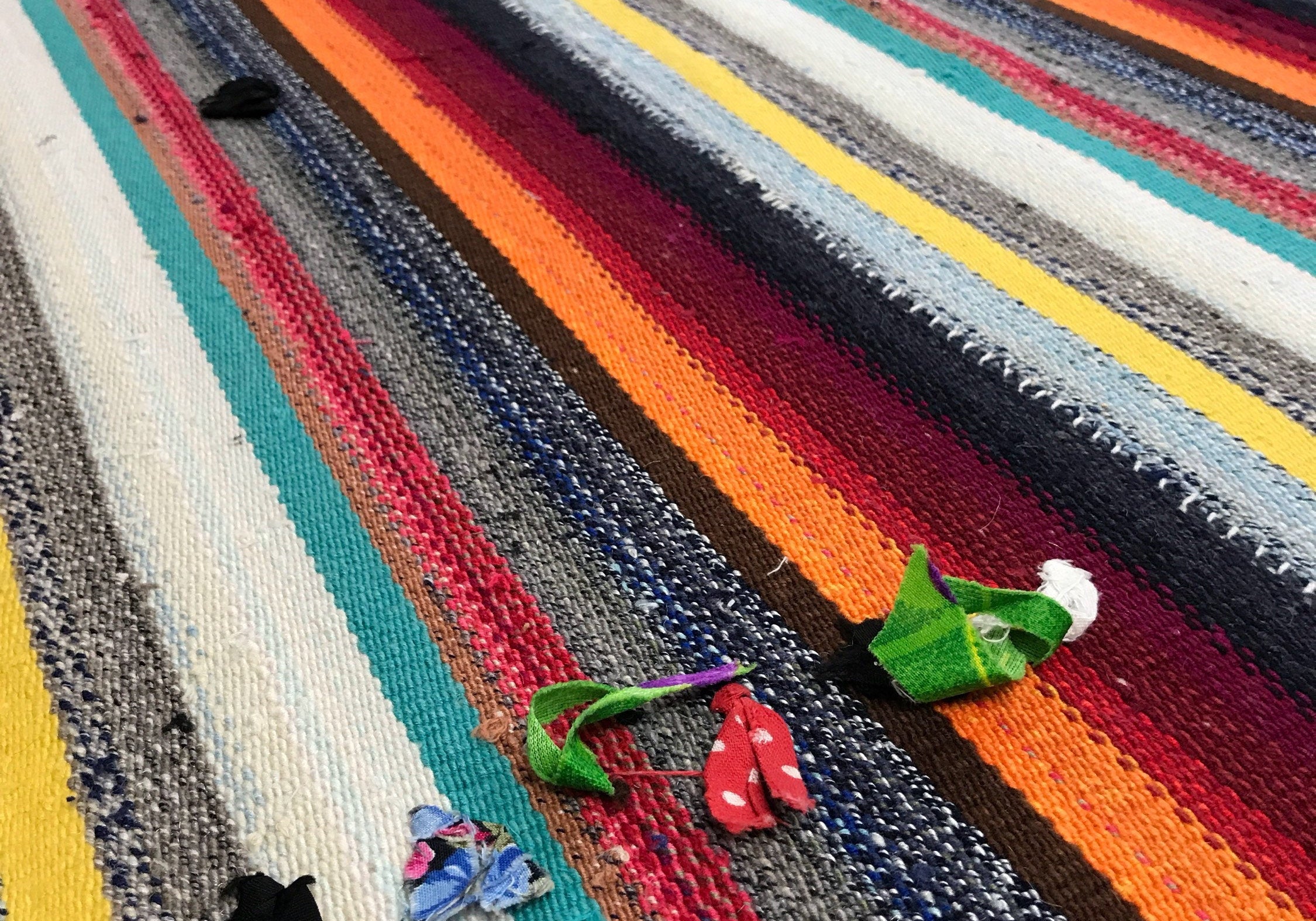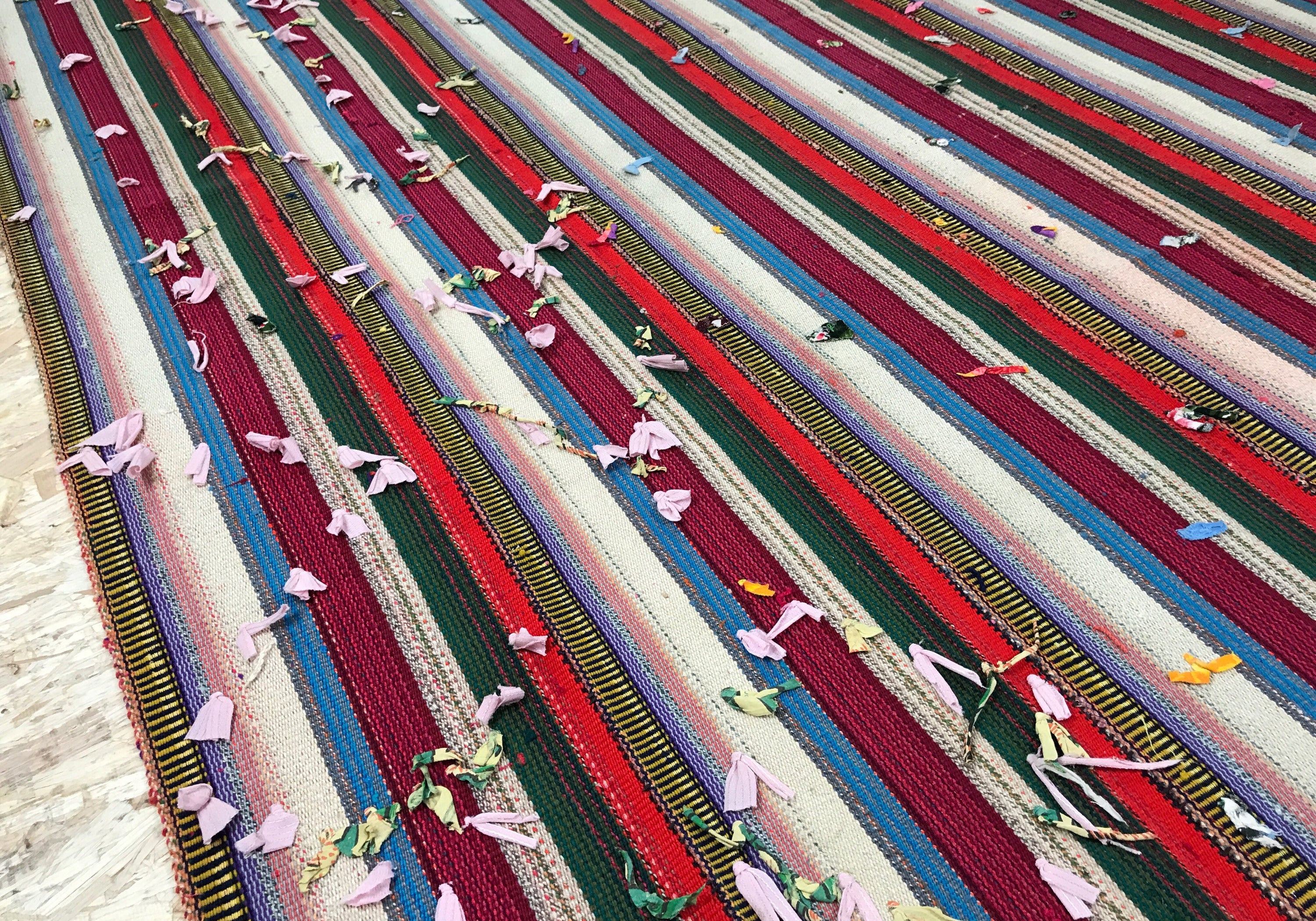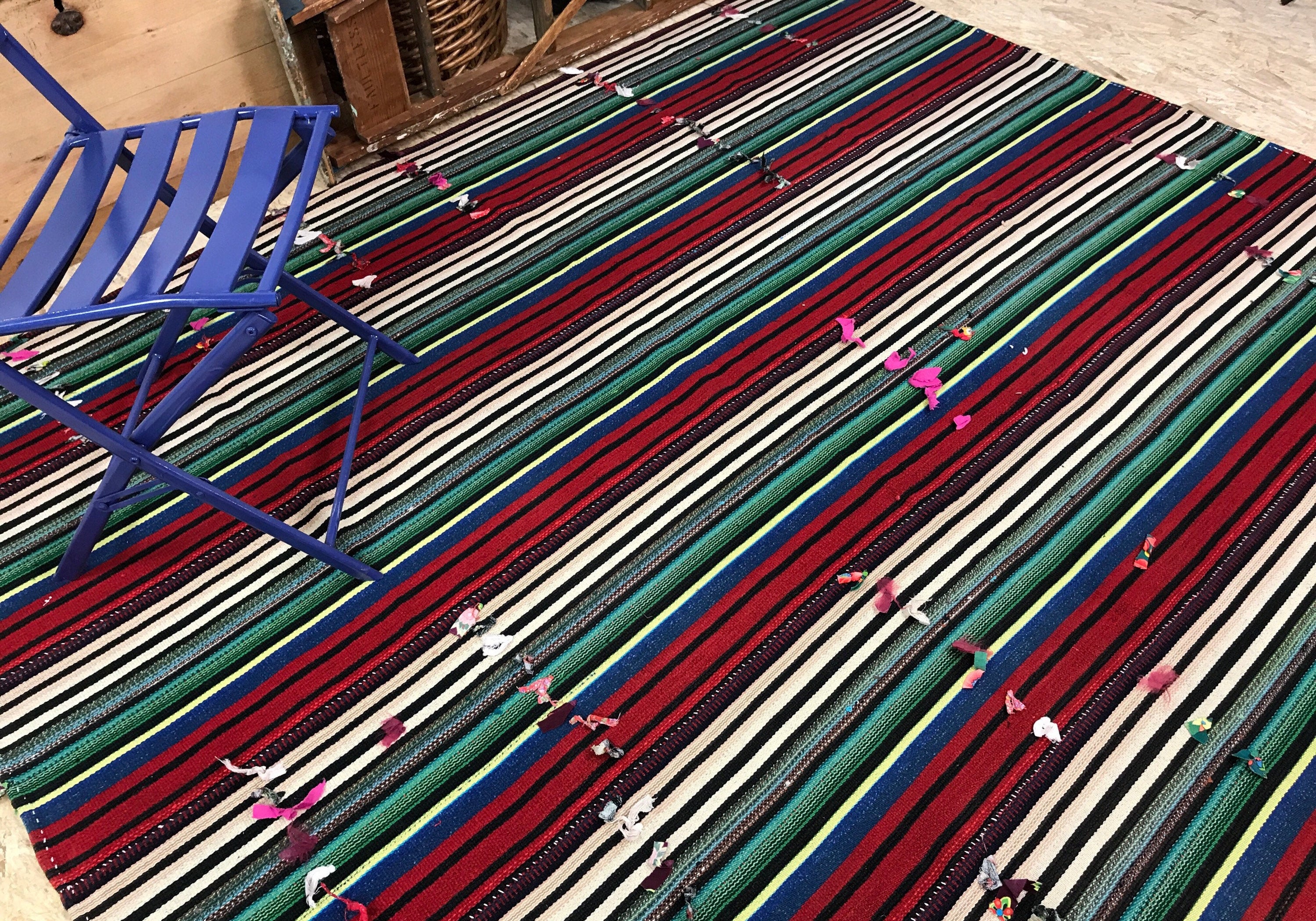 7 x 8 MCM Filikli Kilim Red, White, Green, and Blue Stripes