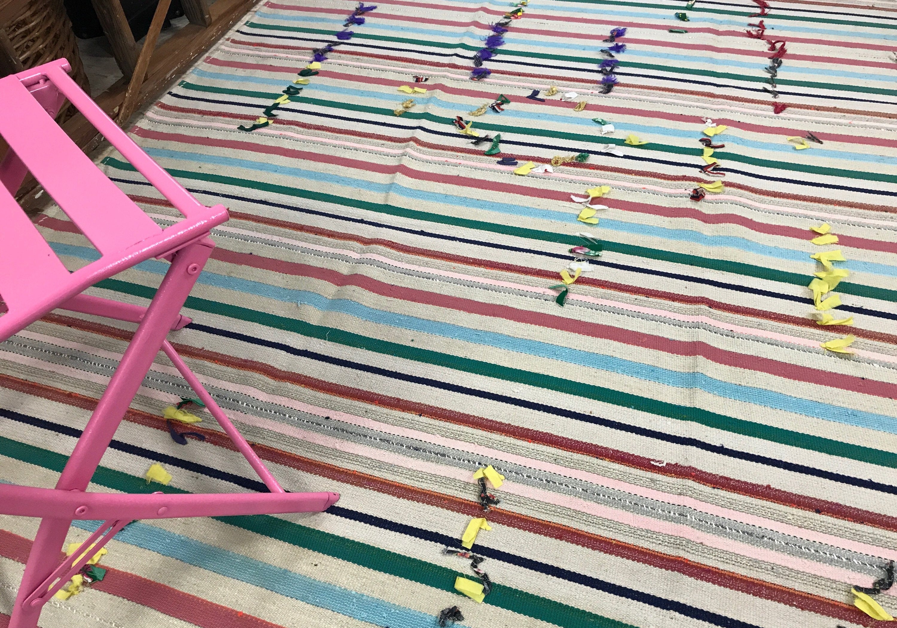 7 x 8 Mid-Century Modern Design TurkishFilikli Kilim from the 70's Pastel Stripes