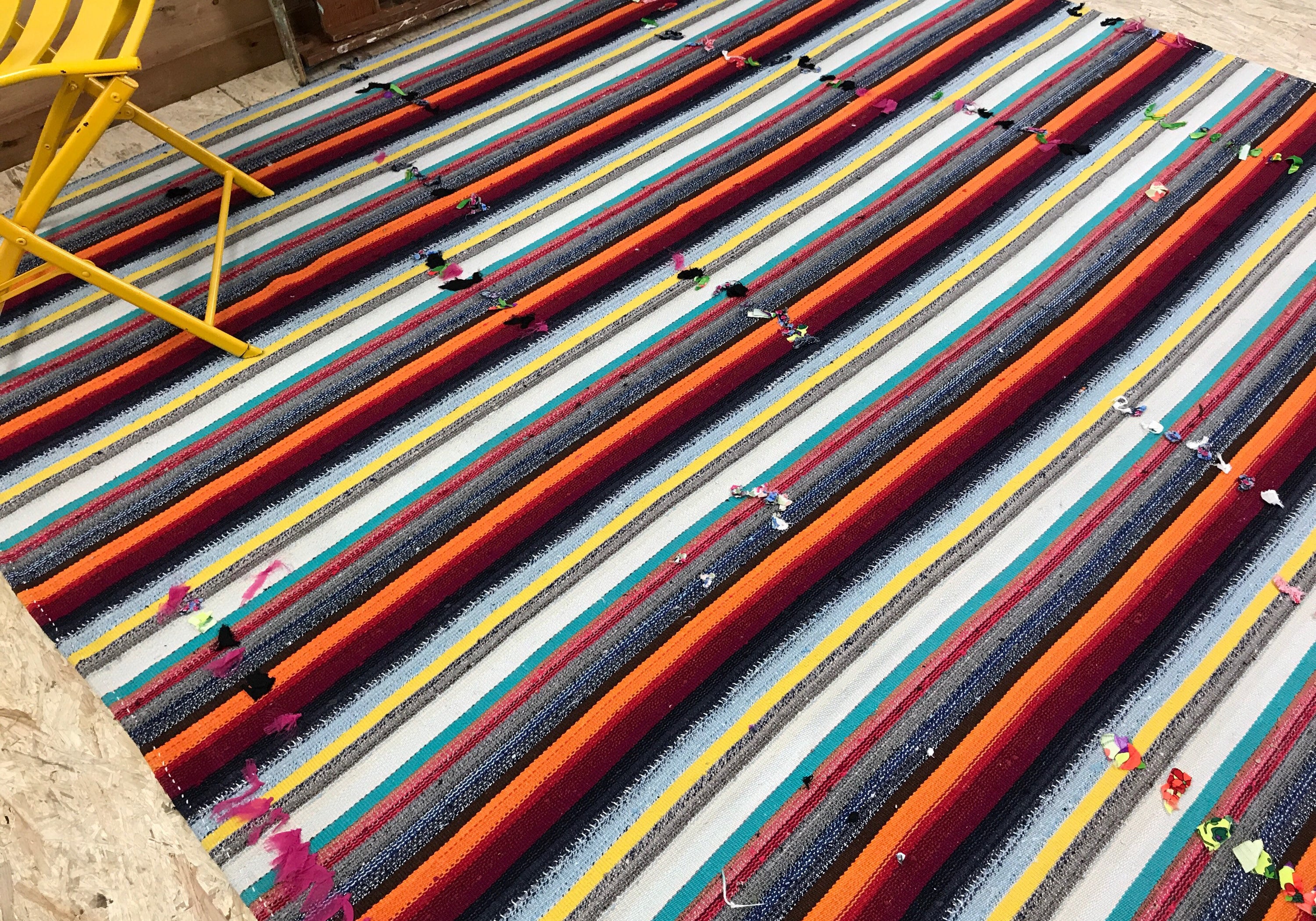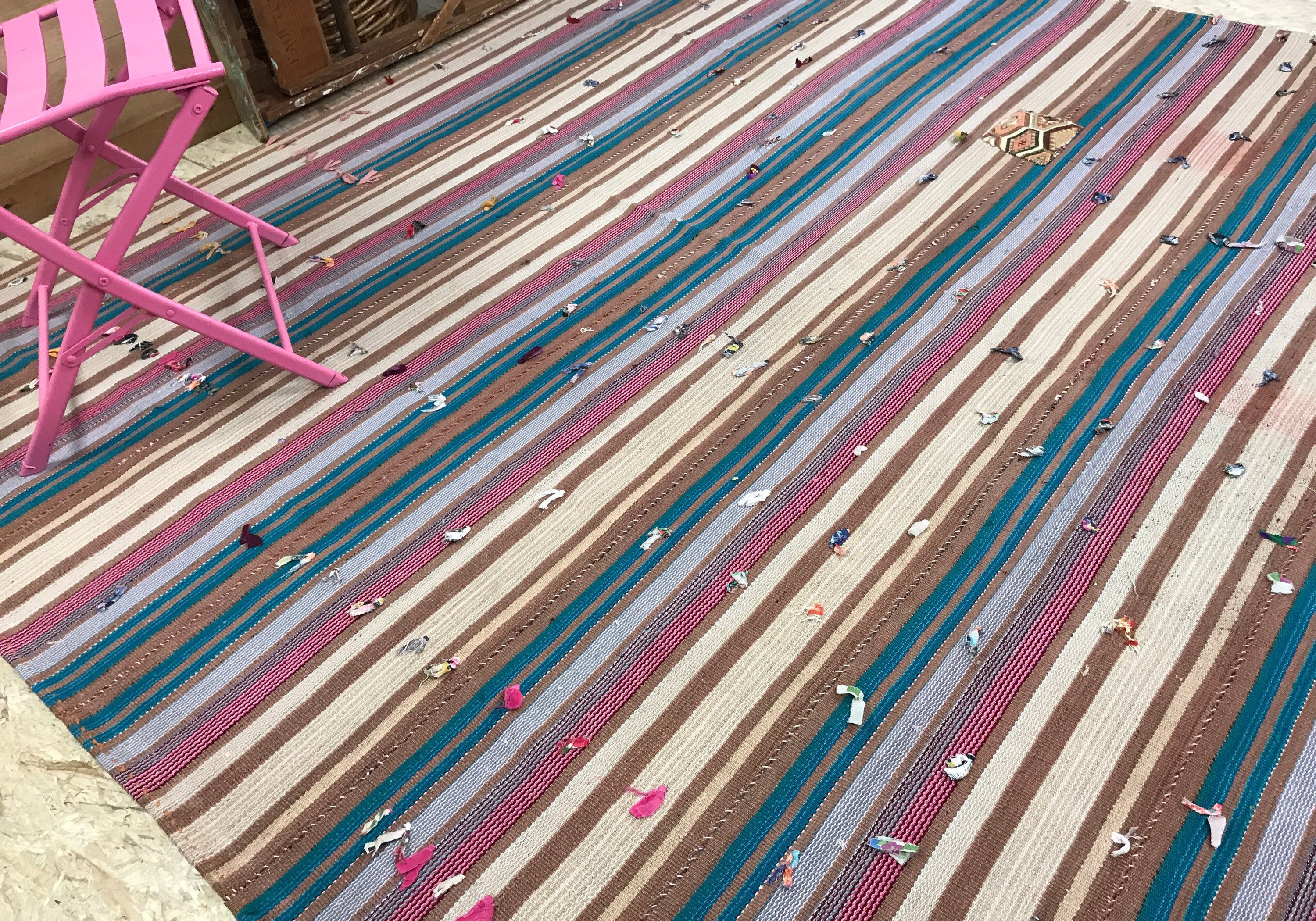7’ x 7’ Mid-Century Modern Design Turkish Filikli Kilim from the 60's Rainbow Stripes