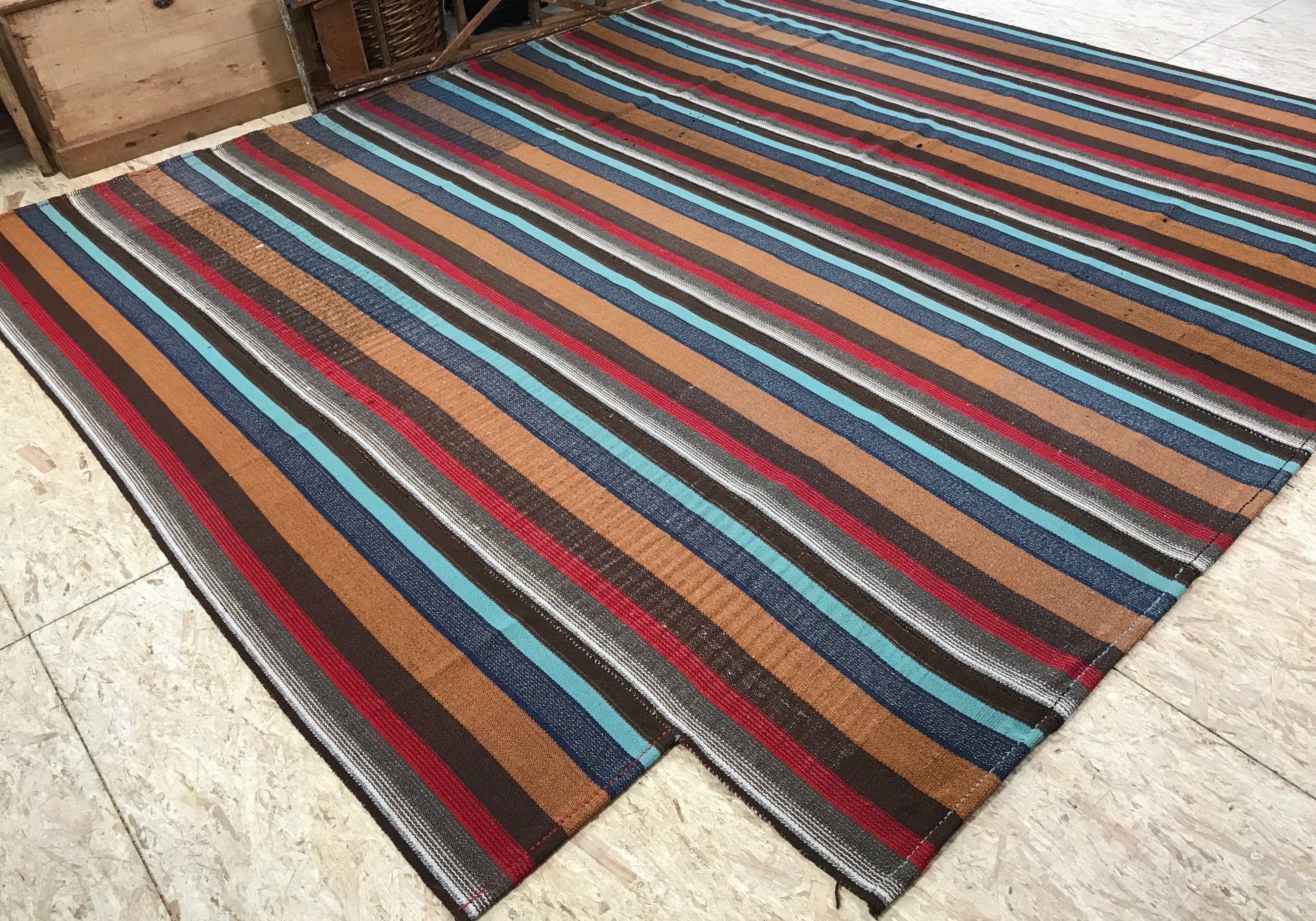 Mid-Century Modern Design 9 x 10 Turkish Kilim Browns and Blues and Reds '160