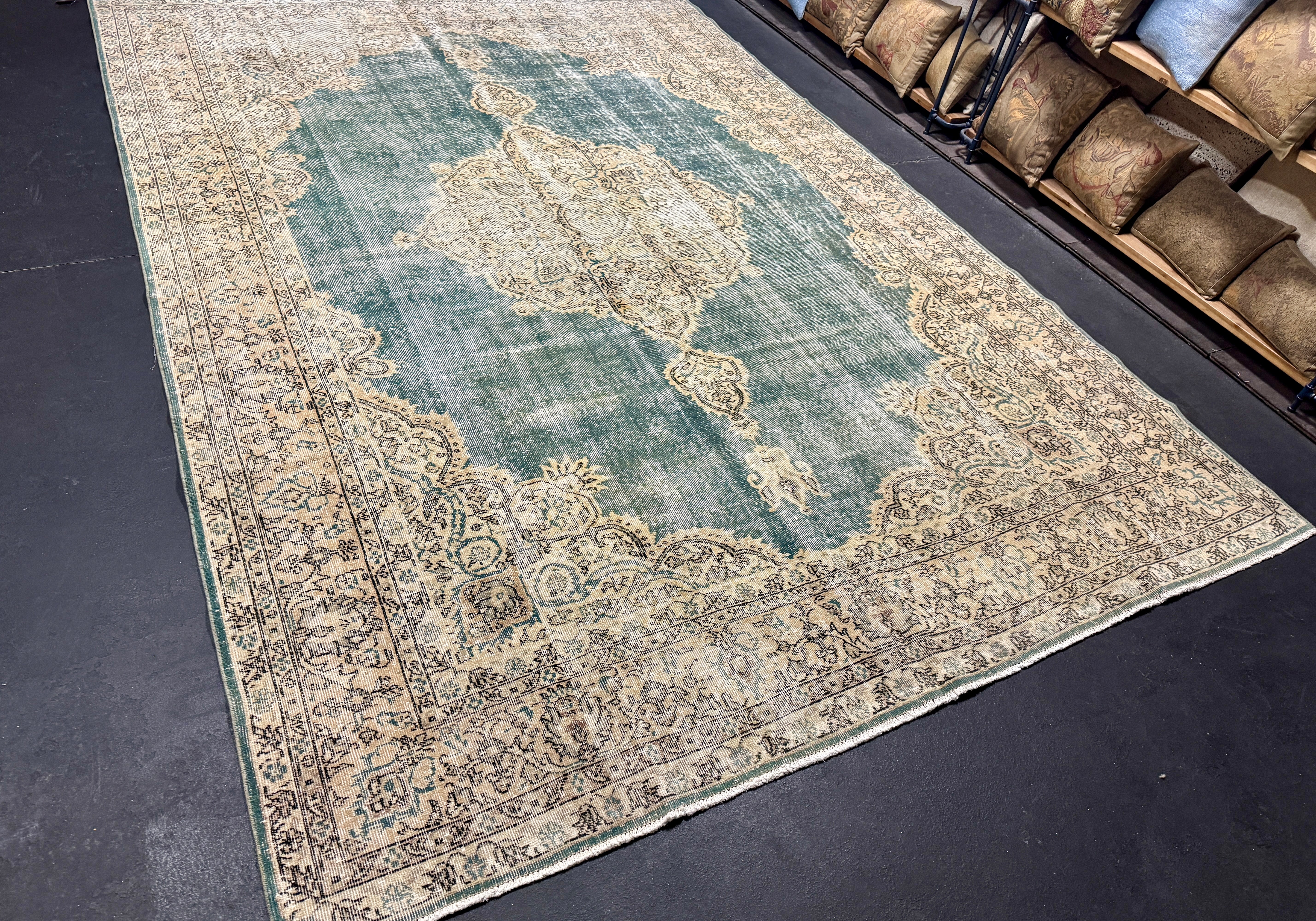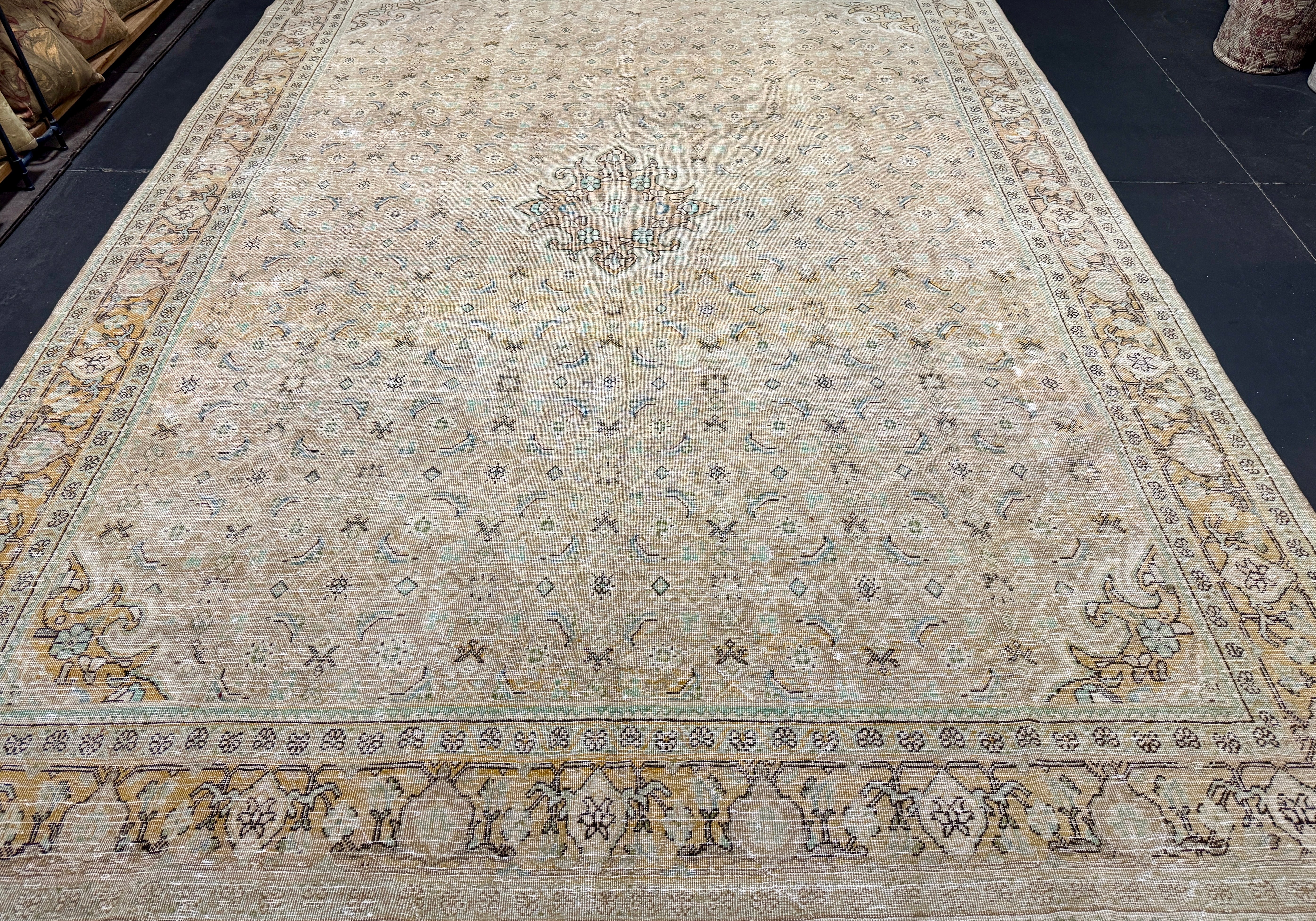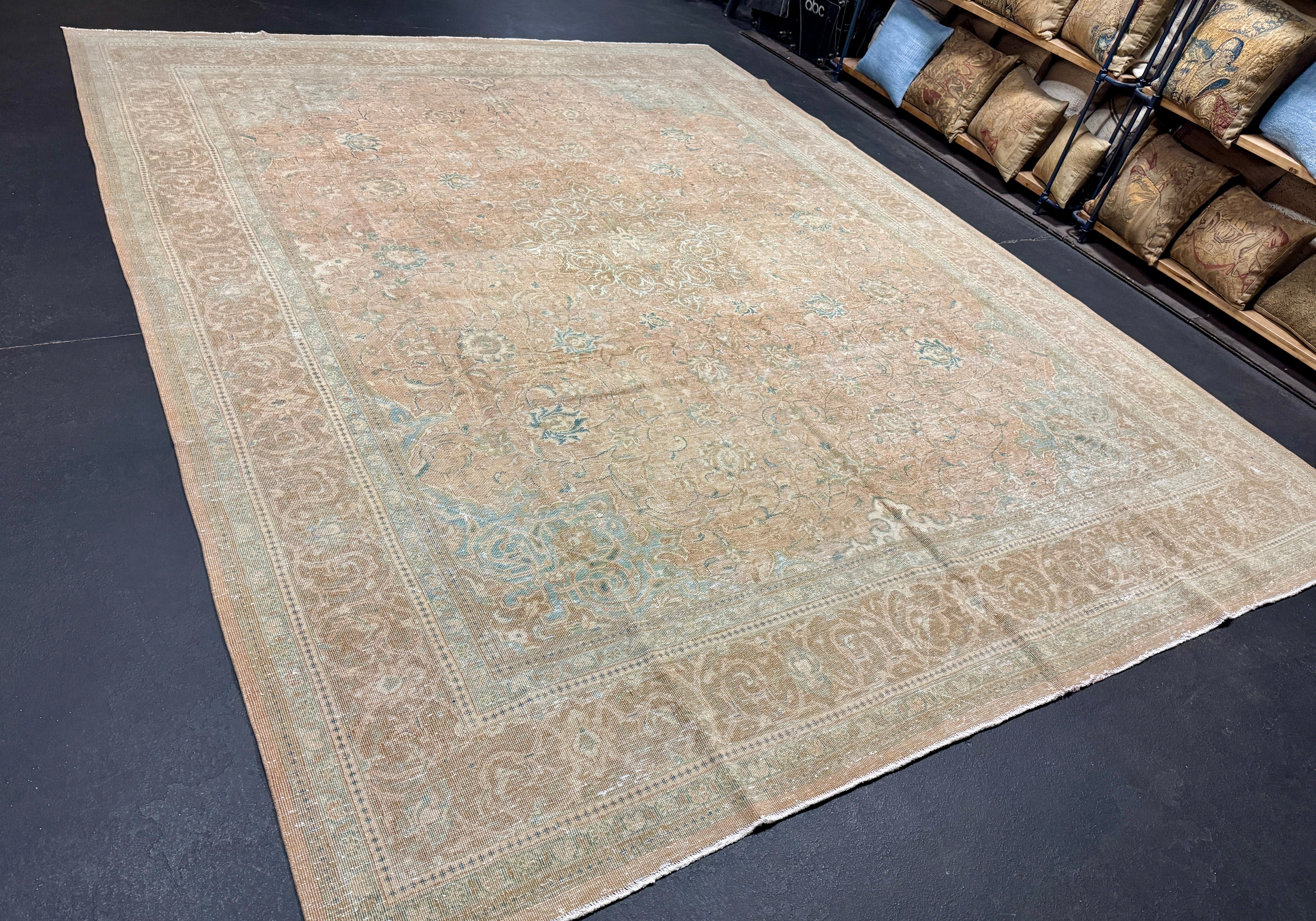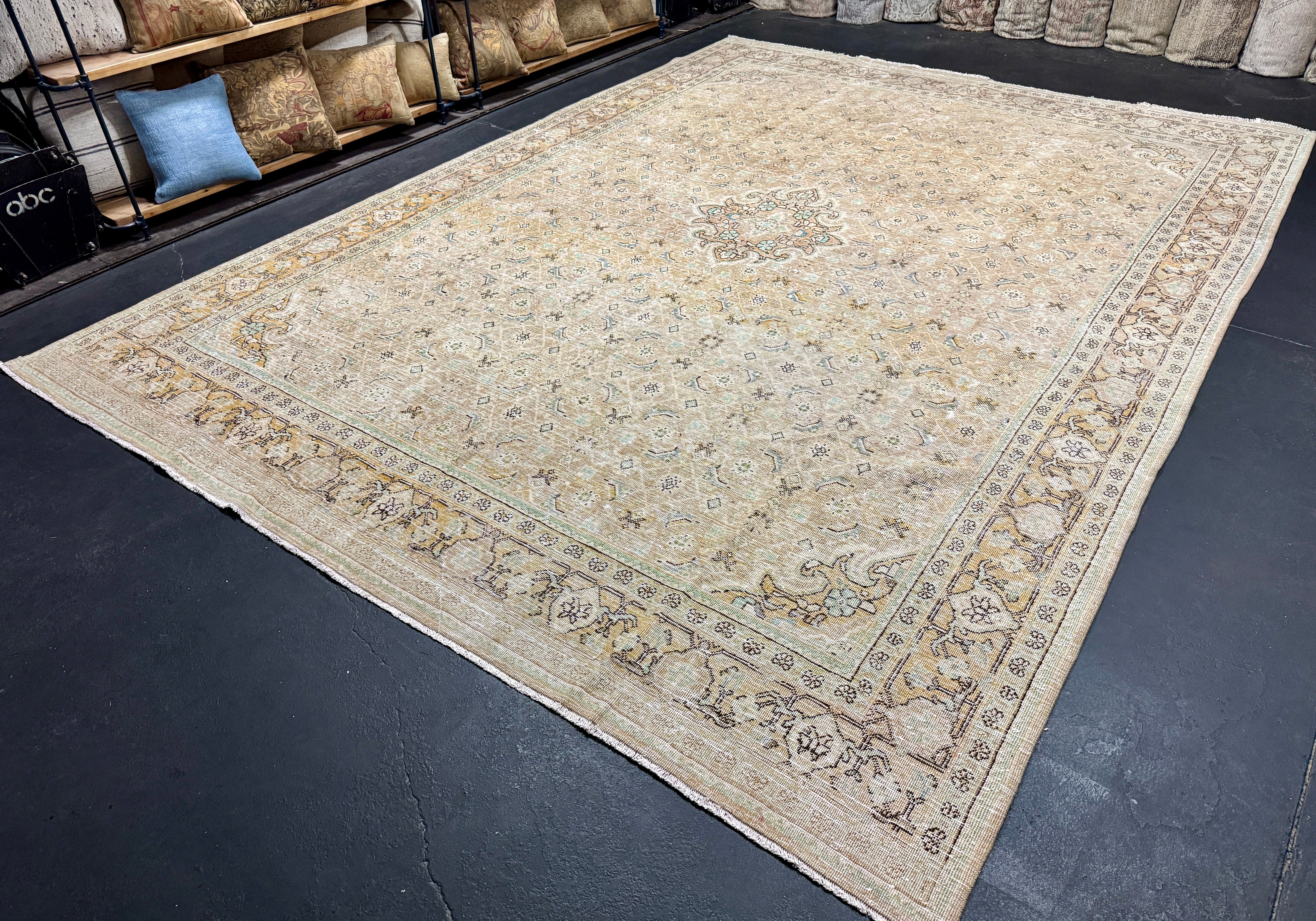 9’9 x 13’5 Classic Vintage Rug Muted Tawny Beige, Sea Foam Green + Blue 5750