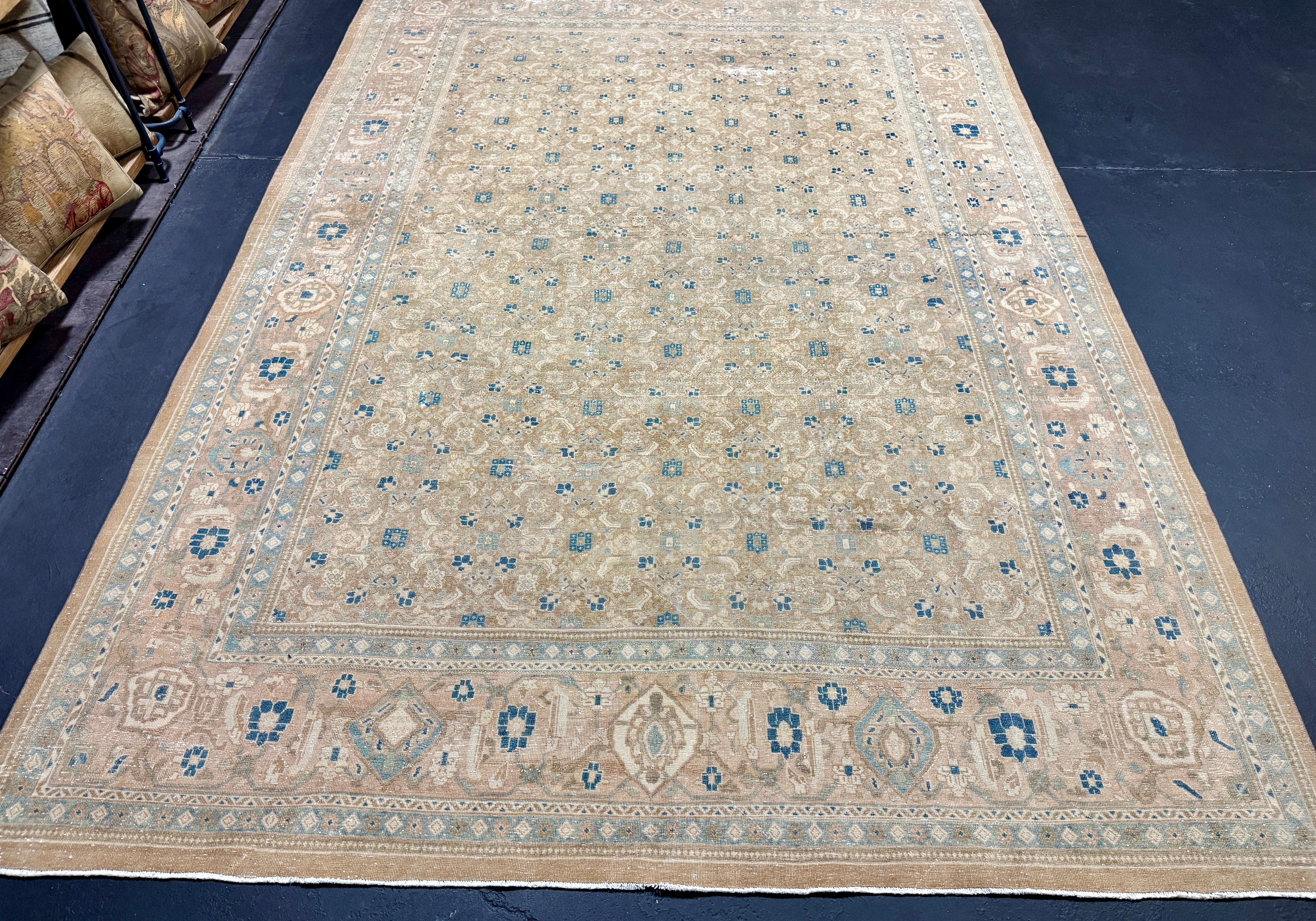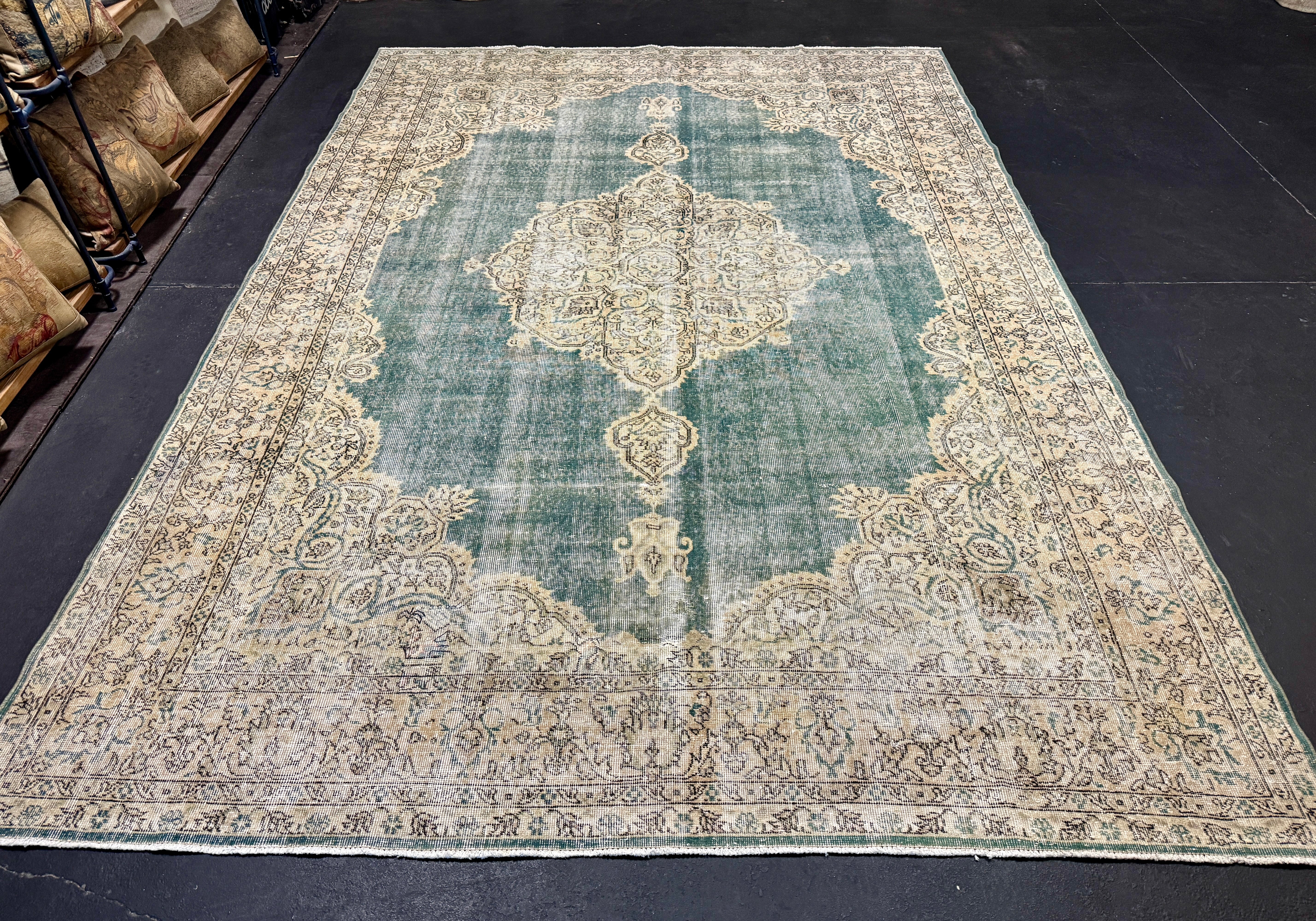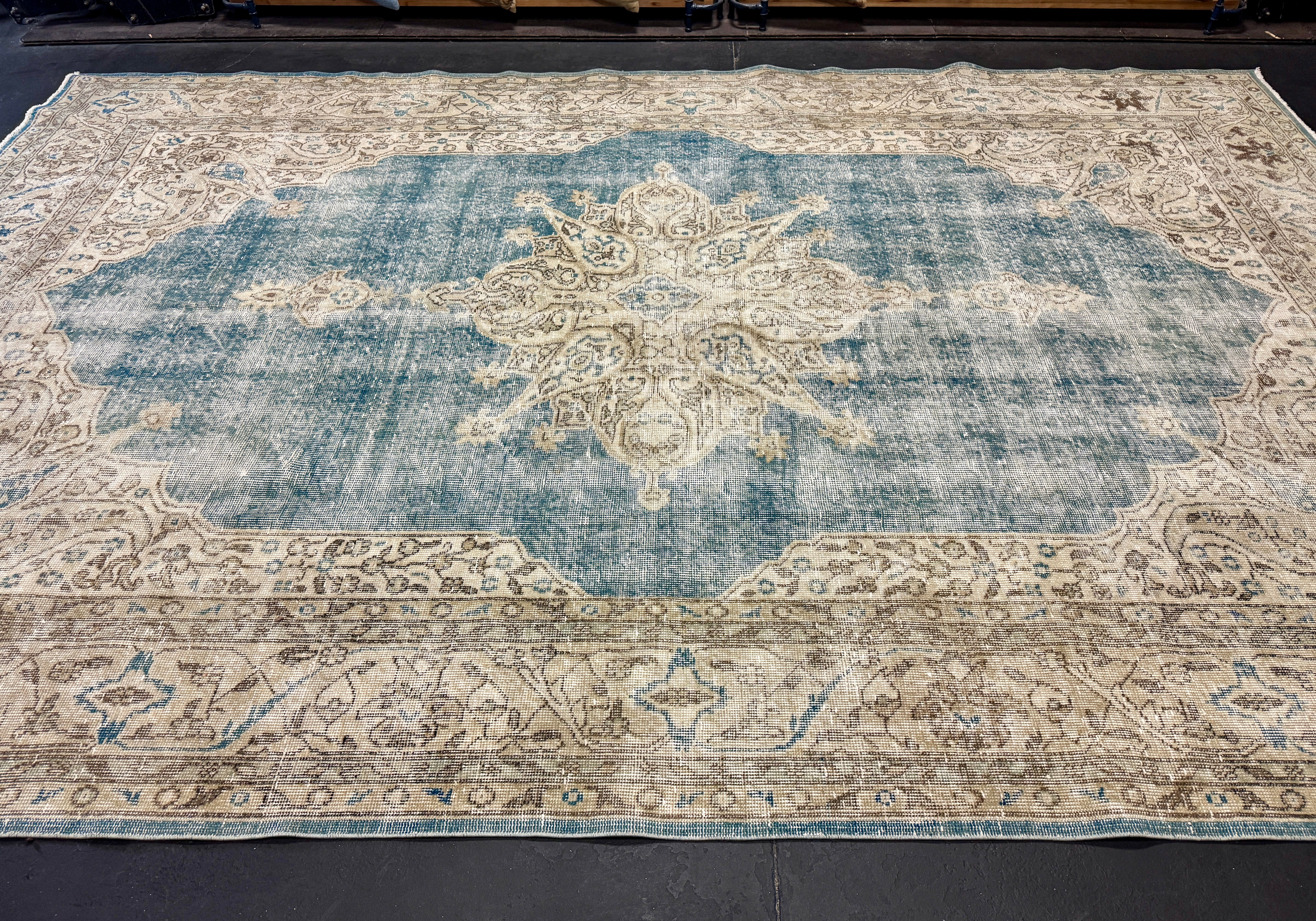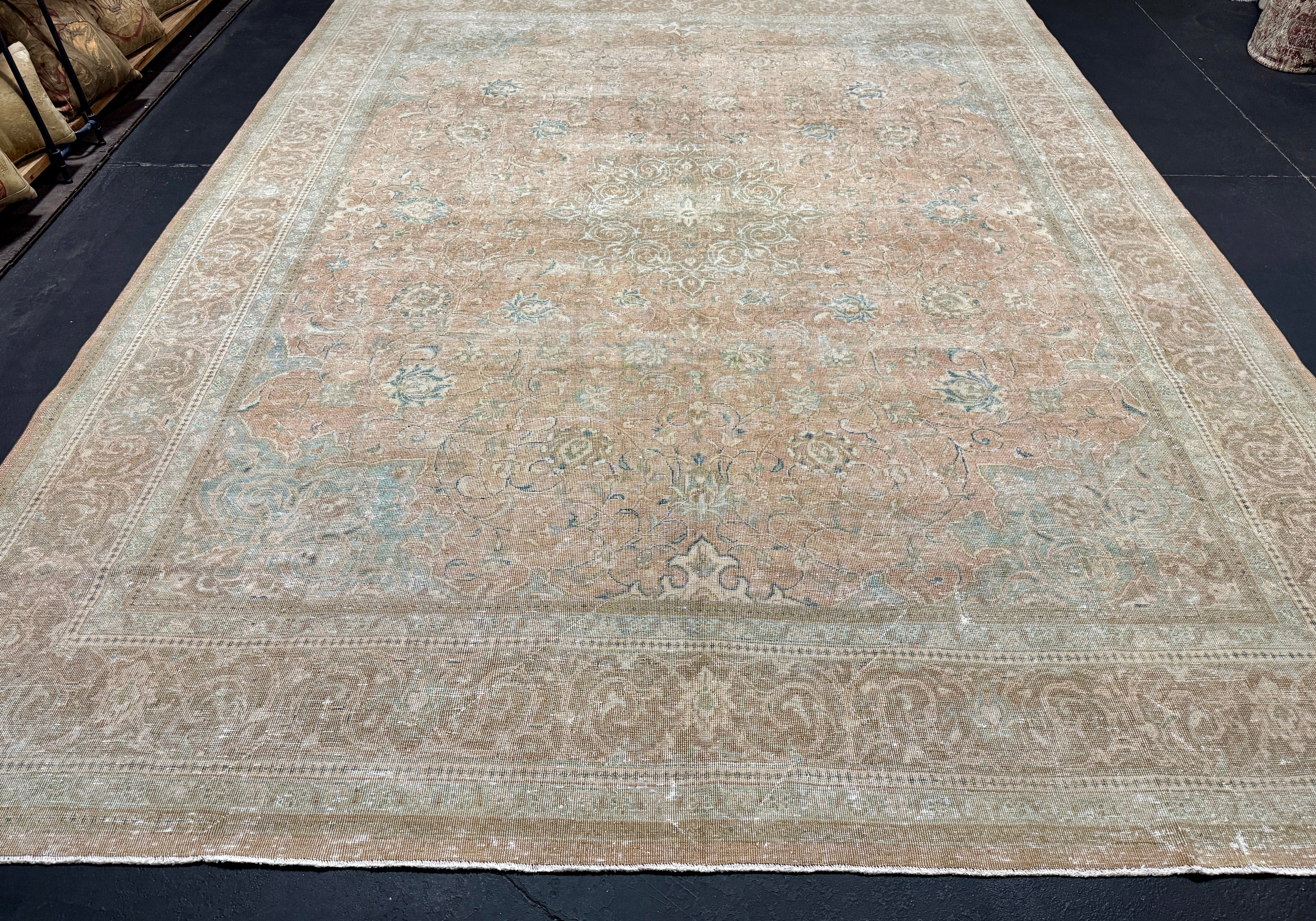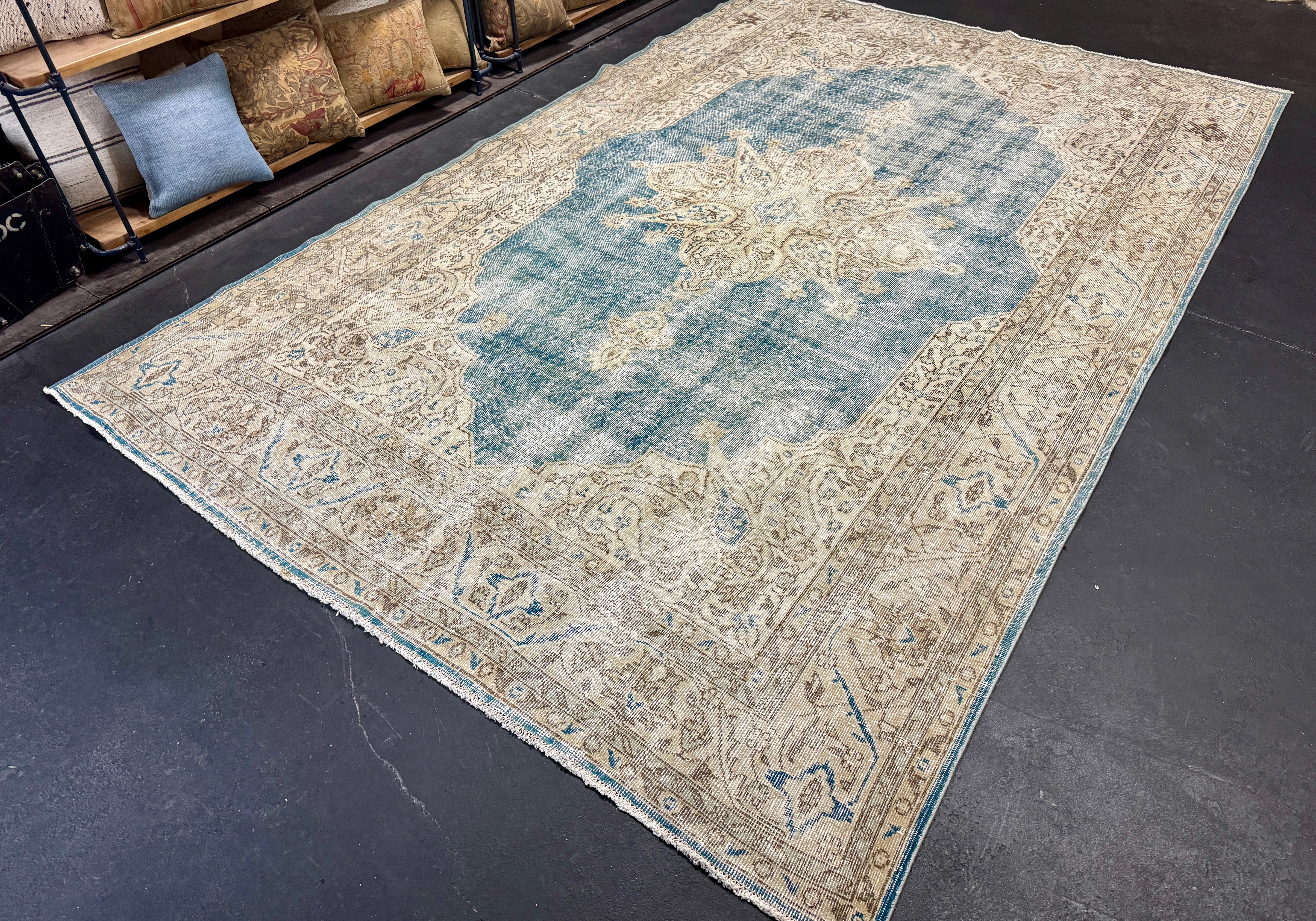 9’9 x 13’5 Classic Vintage Rug Muted Tawny Beige, Sea Foam Green + Blue 5750