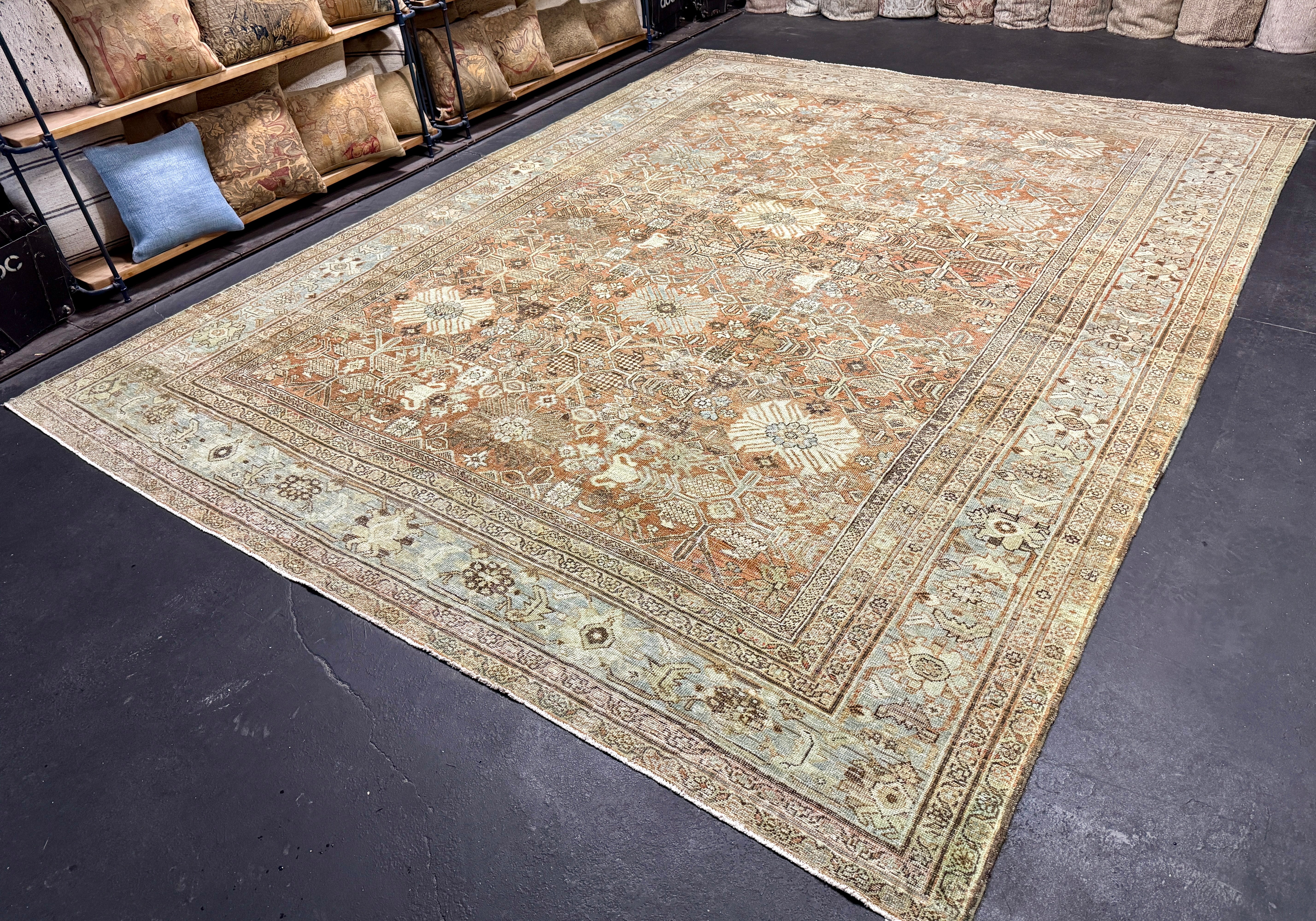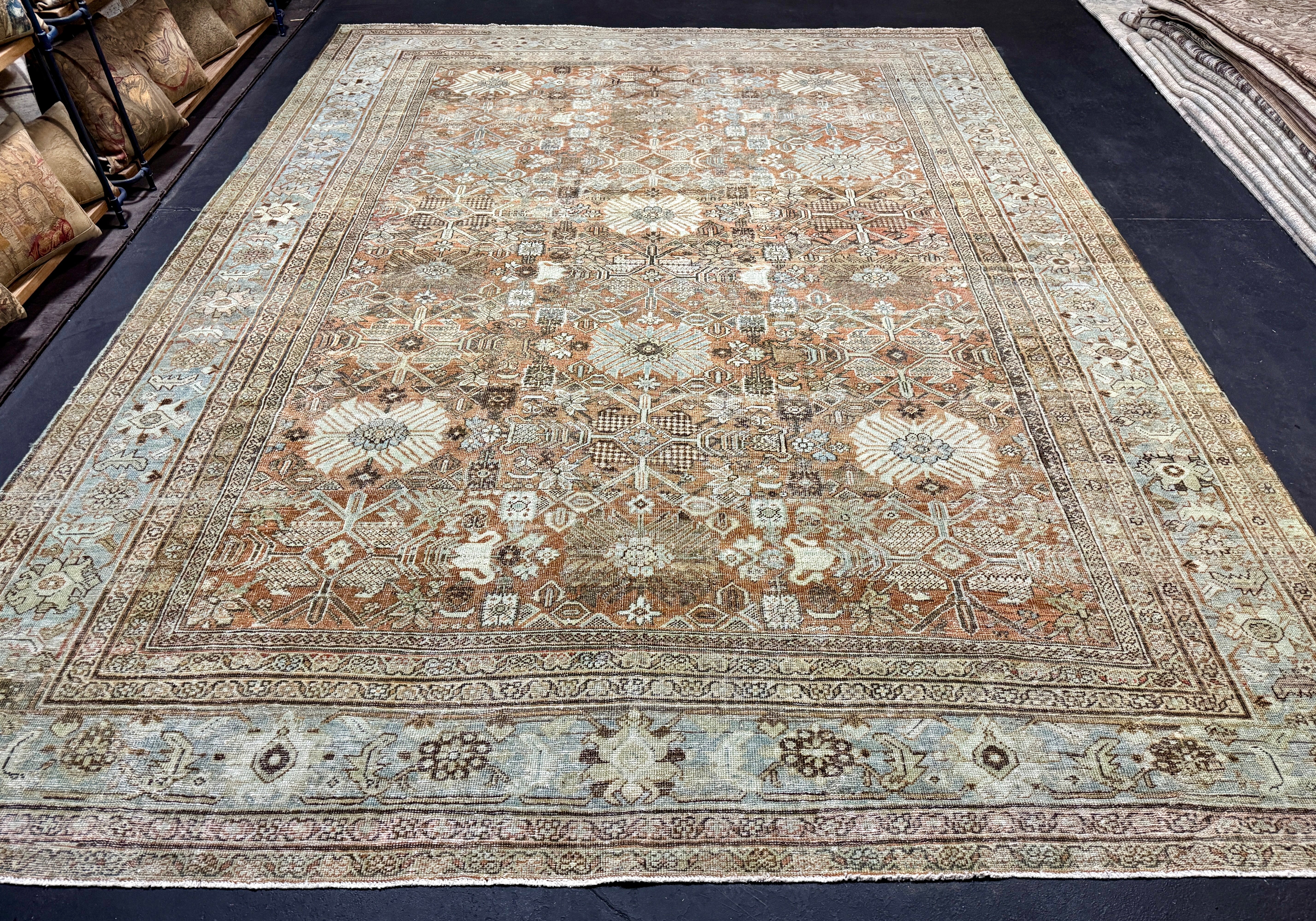 9’5 x 12’4 Classic Antique Rug Muted Powder Blue, Rust, Bone & Brown 5759