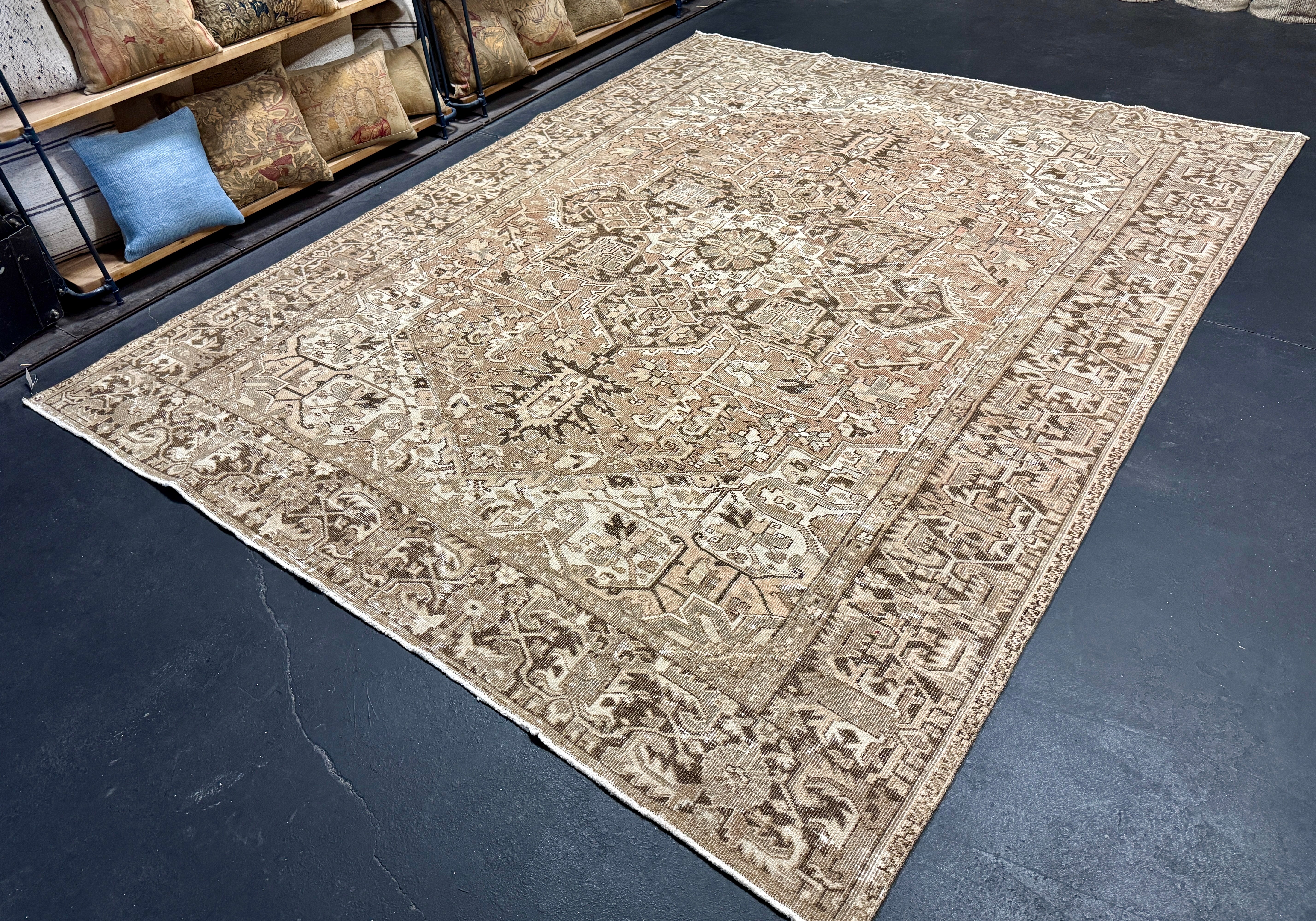 7’7 x 11’10 Classic Vintage Rug Muted Sea Blue, Beige + Brown 5761