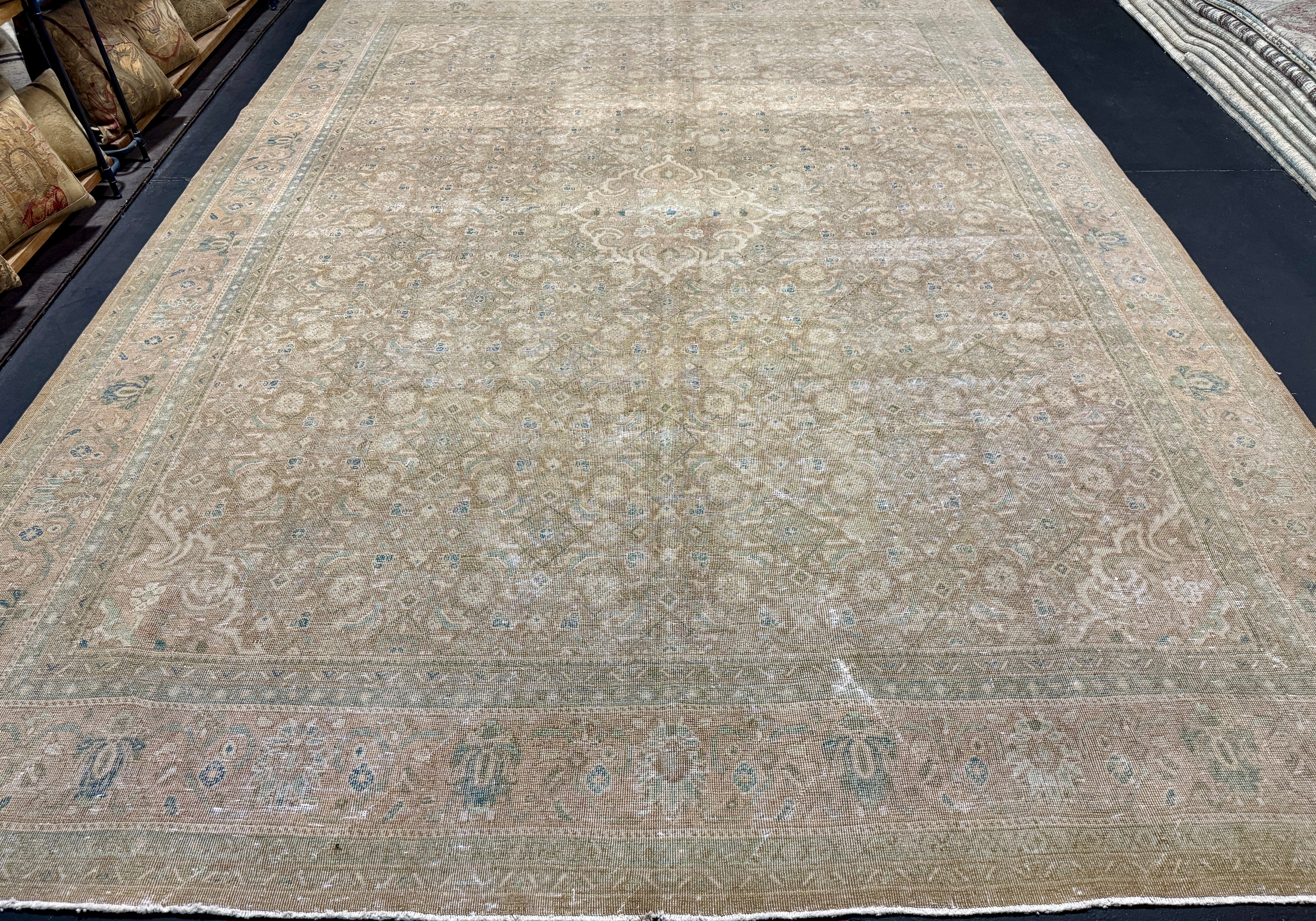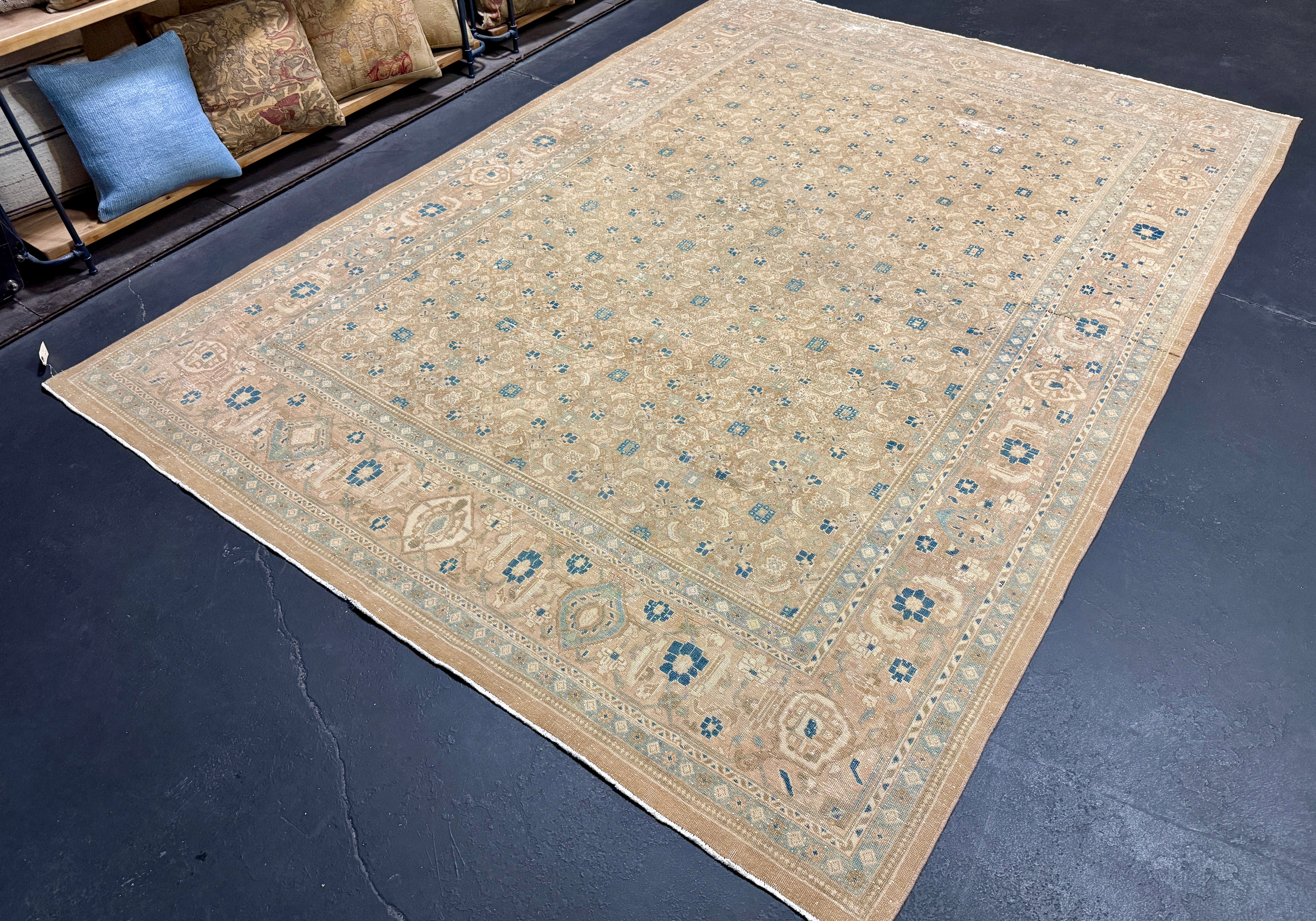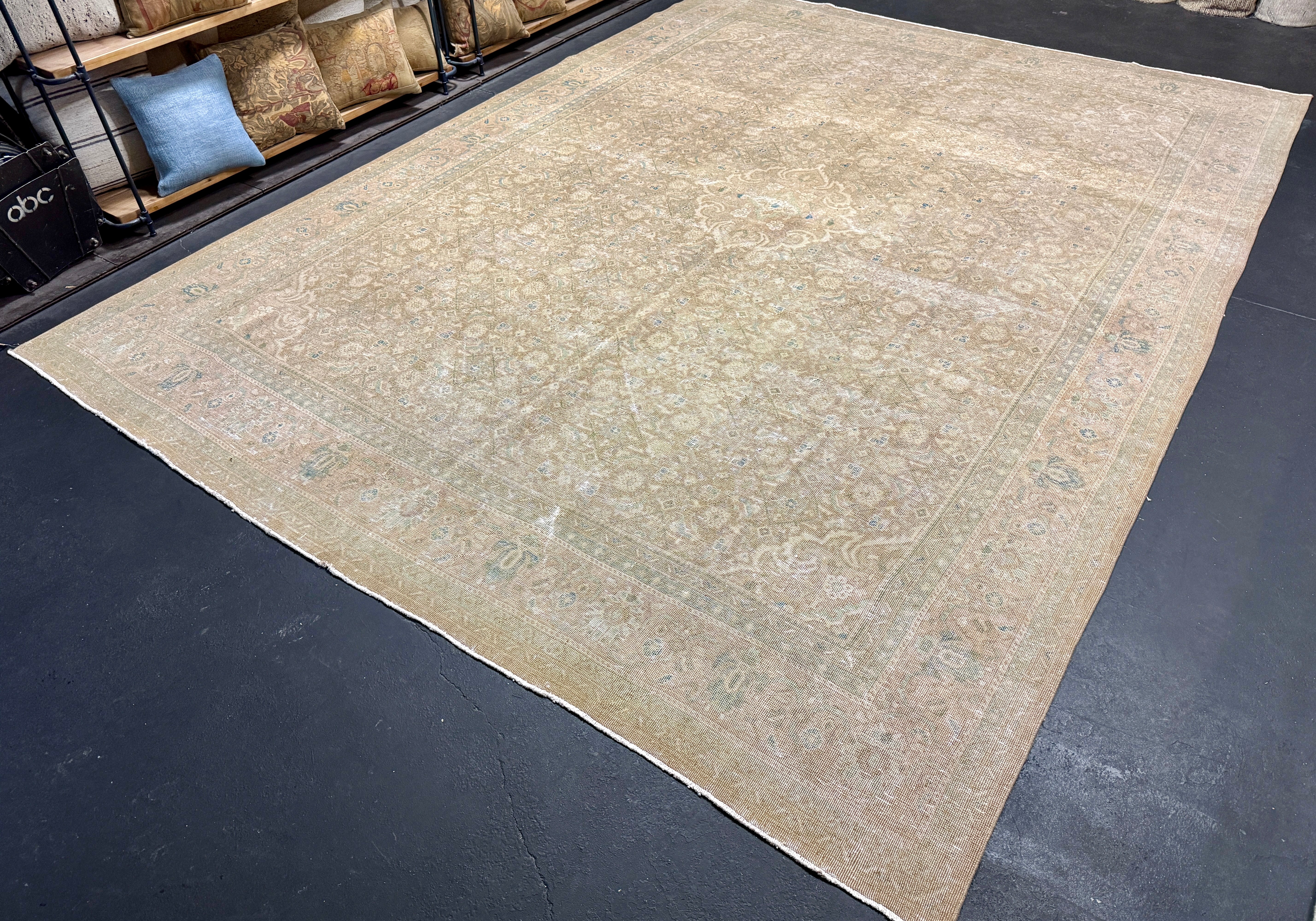 9’7 x 12’11 Classic Vintage Rug Muted Camel Beige, Sand Beige, Sea Foam Blue & Green 5757