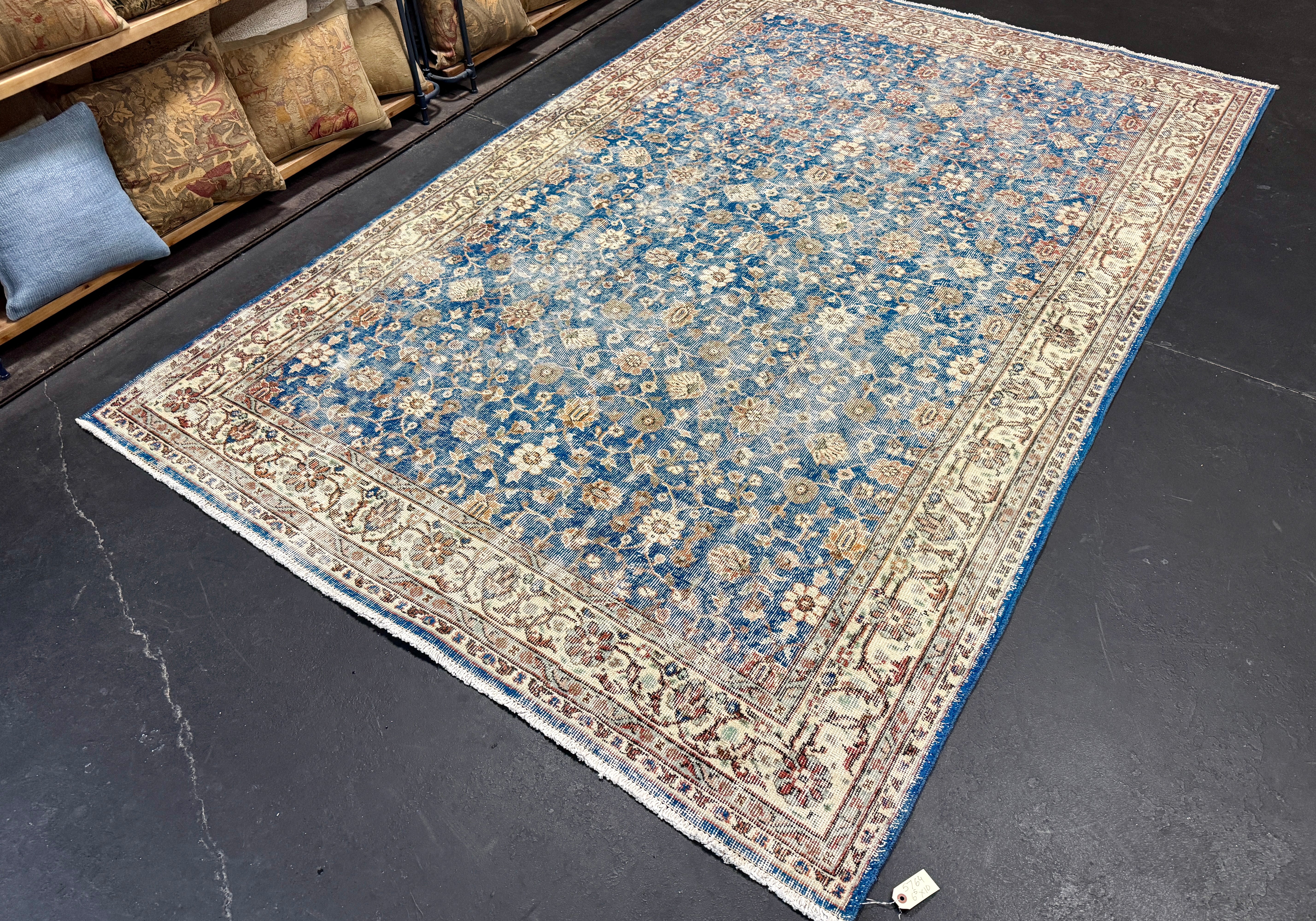 6’5 x 10’ Classic Vintage Rug Muted Indigo Blue, Beige + Rust 5764