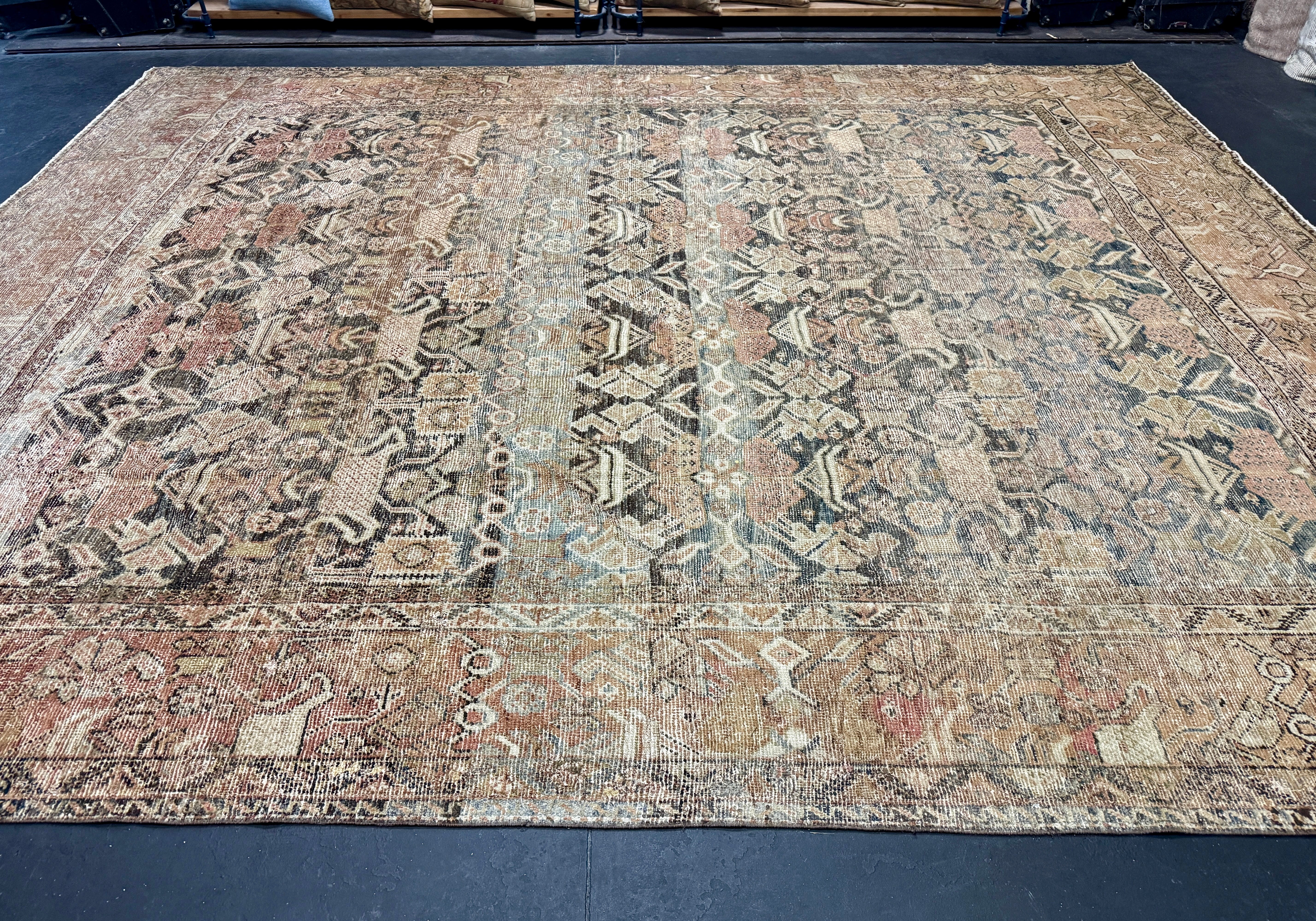 9’ x 11’3 Classic Vintage Rug Muted Grays, Reds, Blues, Greens 5320