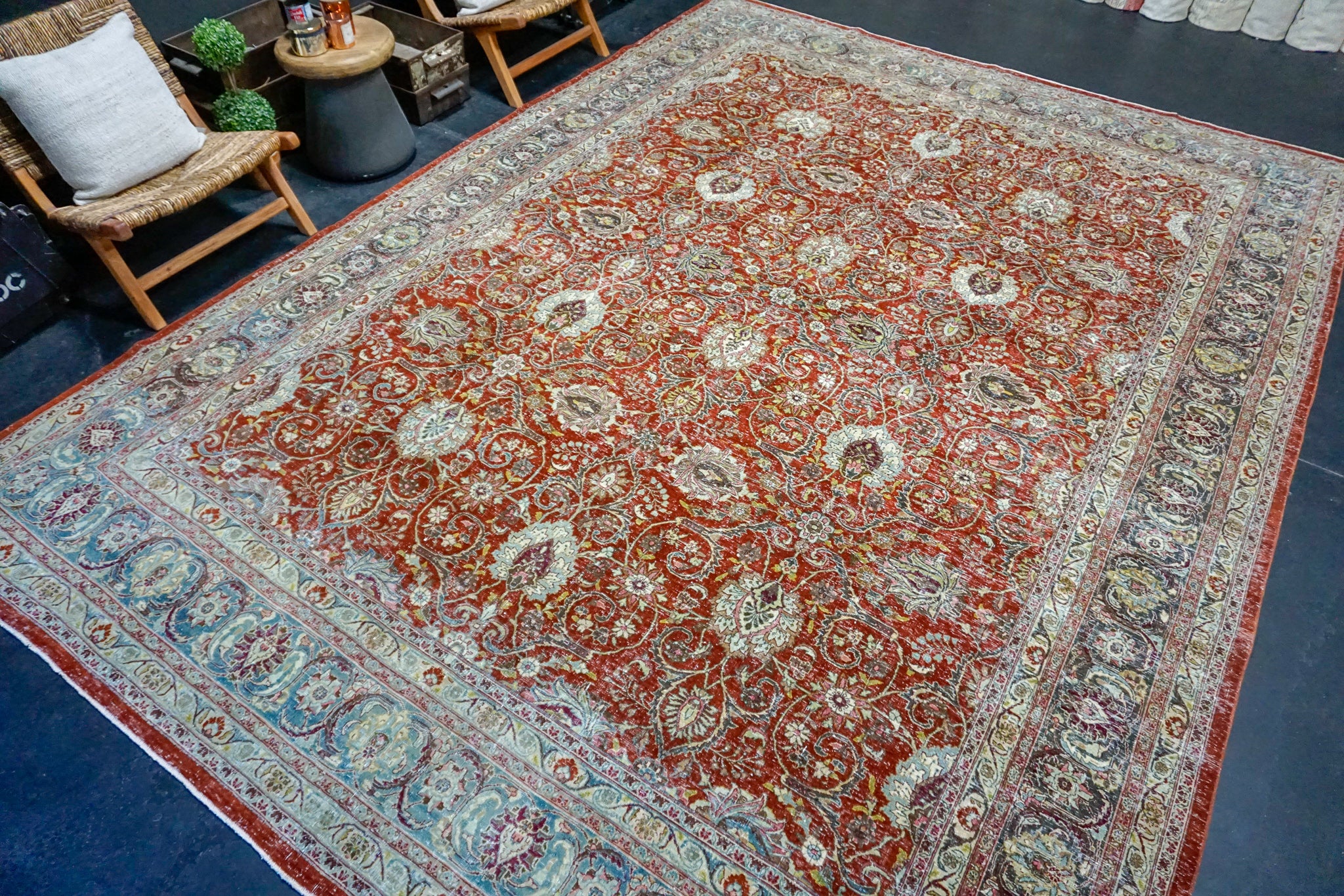 9’5 x 12’6 Classic Vintage Rug Beige, Indigo and Copper Carpet SB '3902