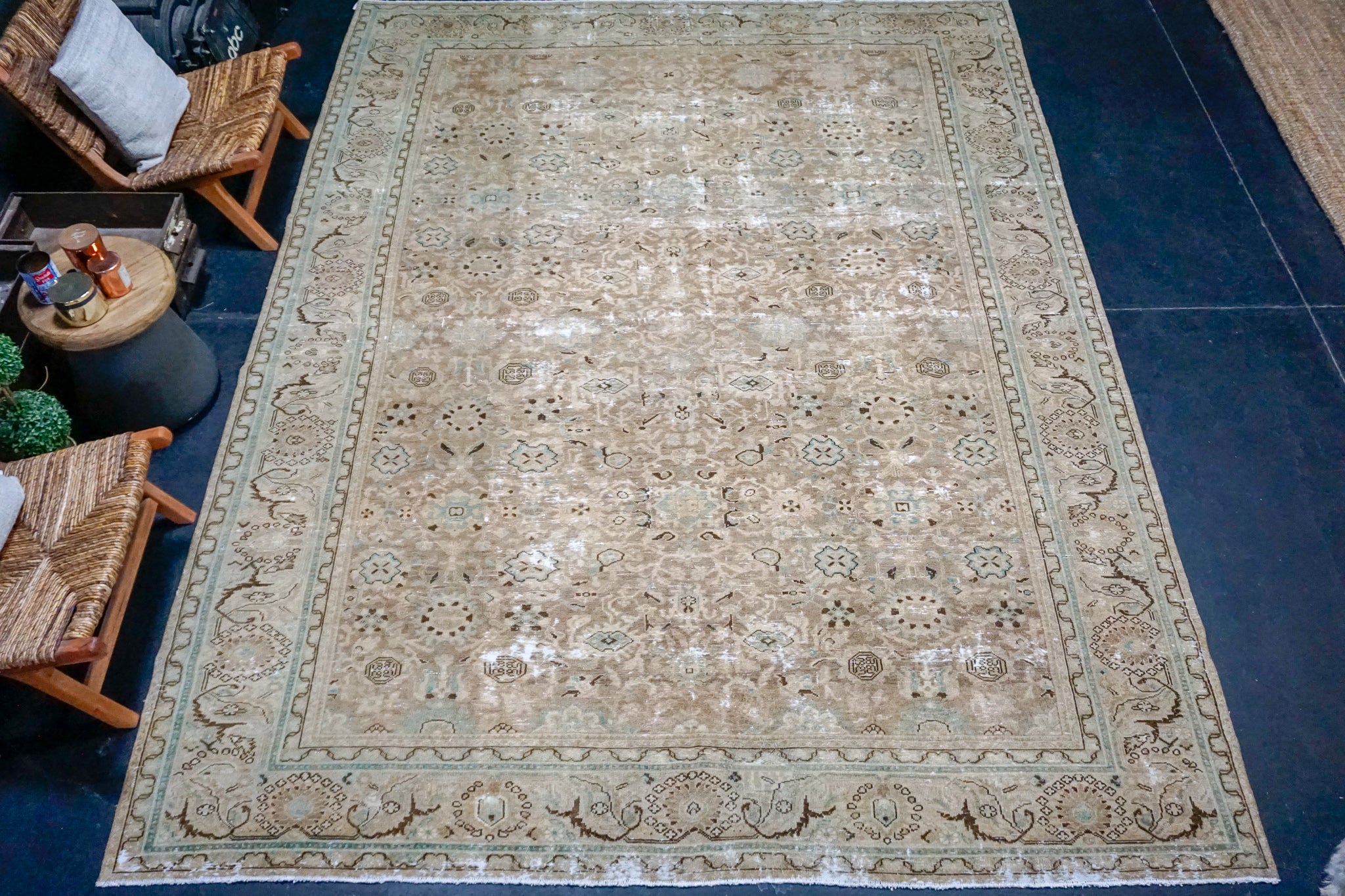 7’4 x 10’6 Vintage Oushak Rug Muted Beige & Sea Foam Green Carpet '3692