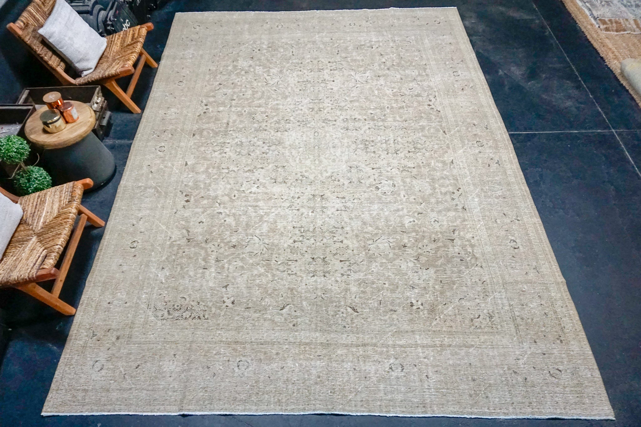 6’4 x 10’6 Vintage Oushak Rug Muted Beige + Brown Carpet SB '3656