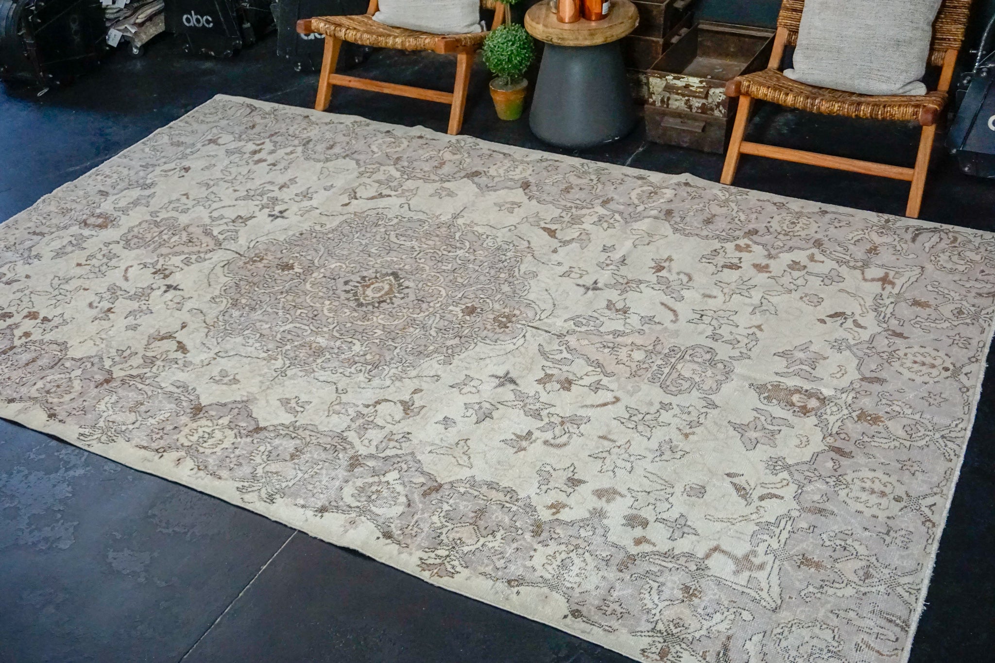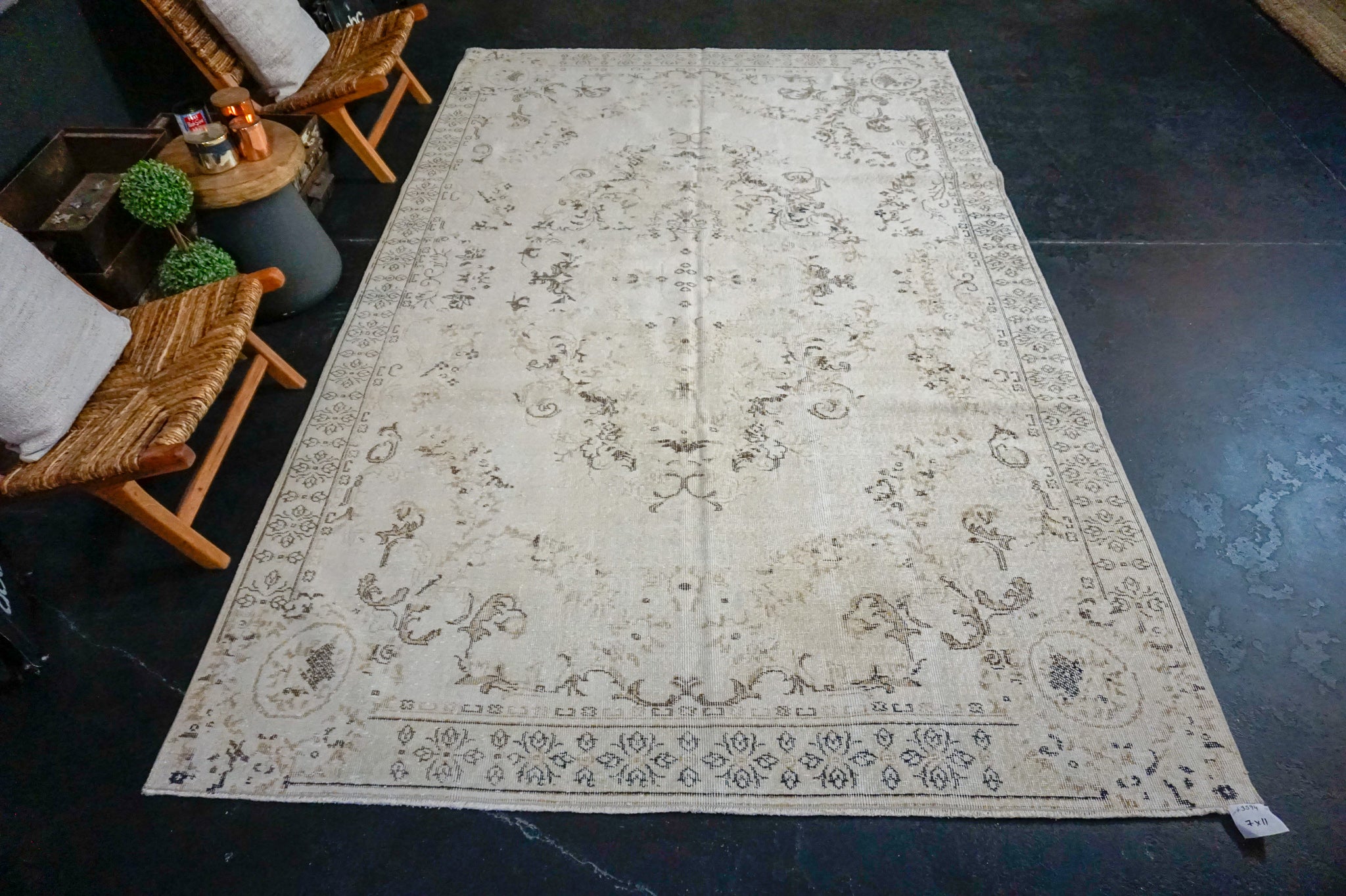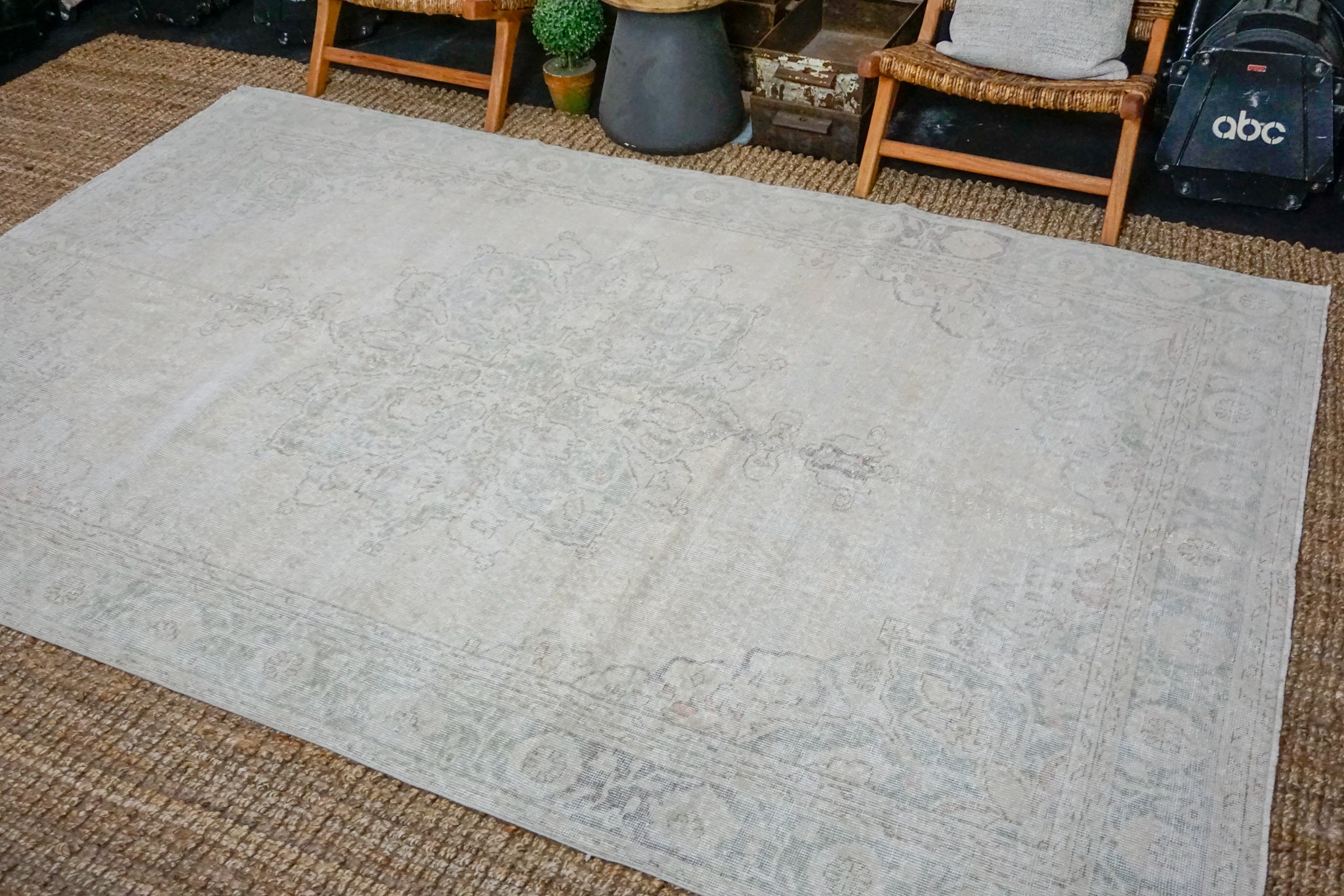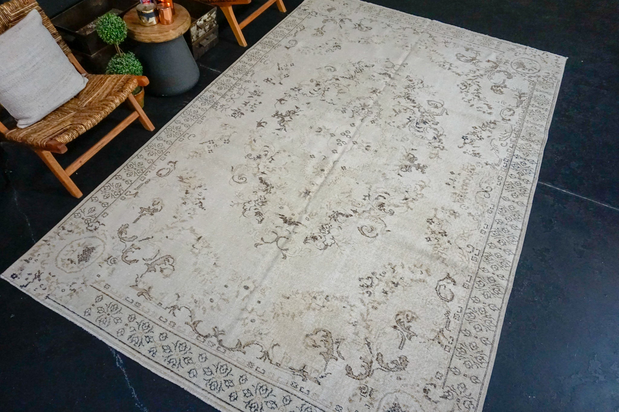 6’10 x 10’2 Vintage Oushak Rug Creamy Beige and Green Carpet '3655