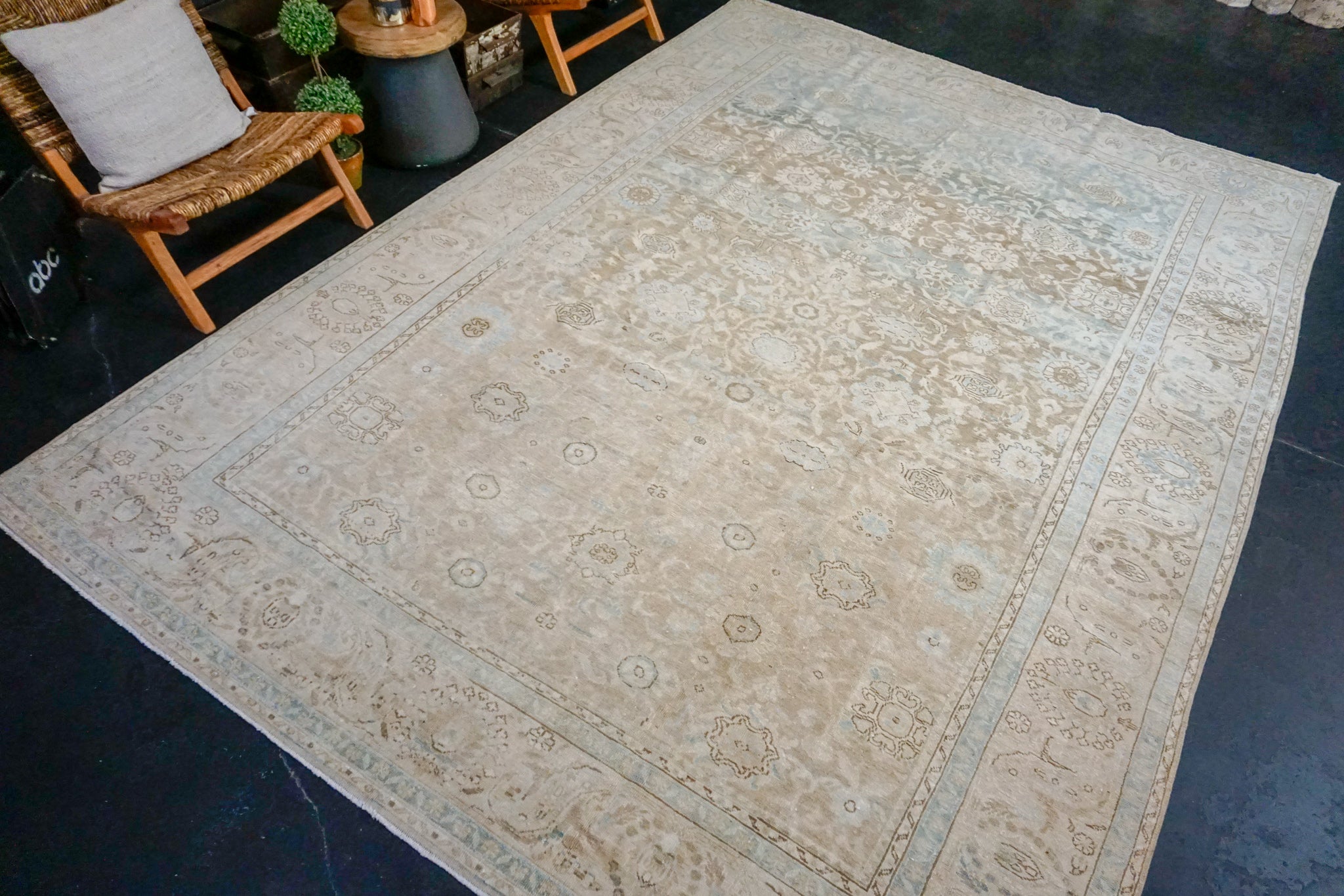 9’6 x 12’10 Classic Vintage Rug Muted Beige, Blue & Brown Carpet SB '3763