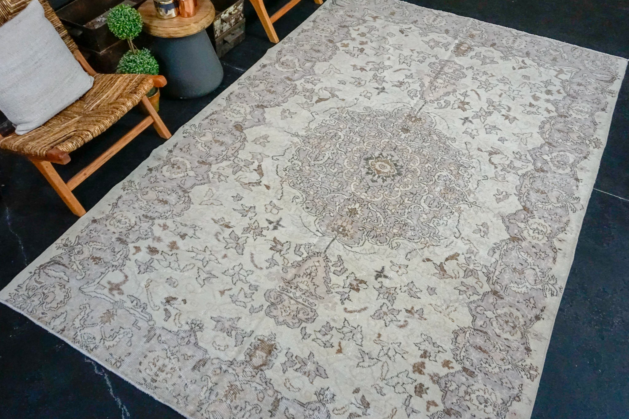 6’6 x 10’3 Vintage Oushak Rug Muted Violet, Beige and Brown Carpet '3678