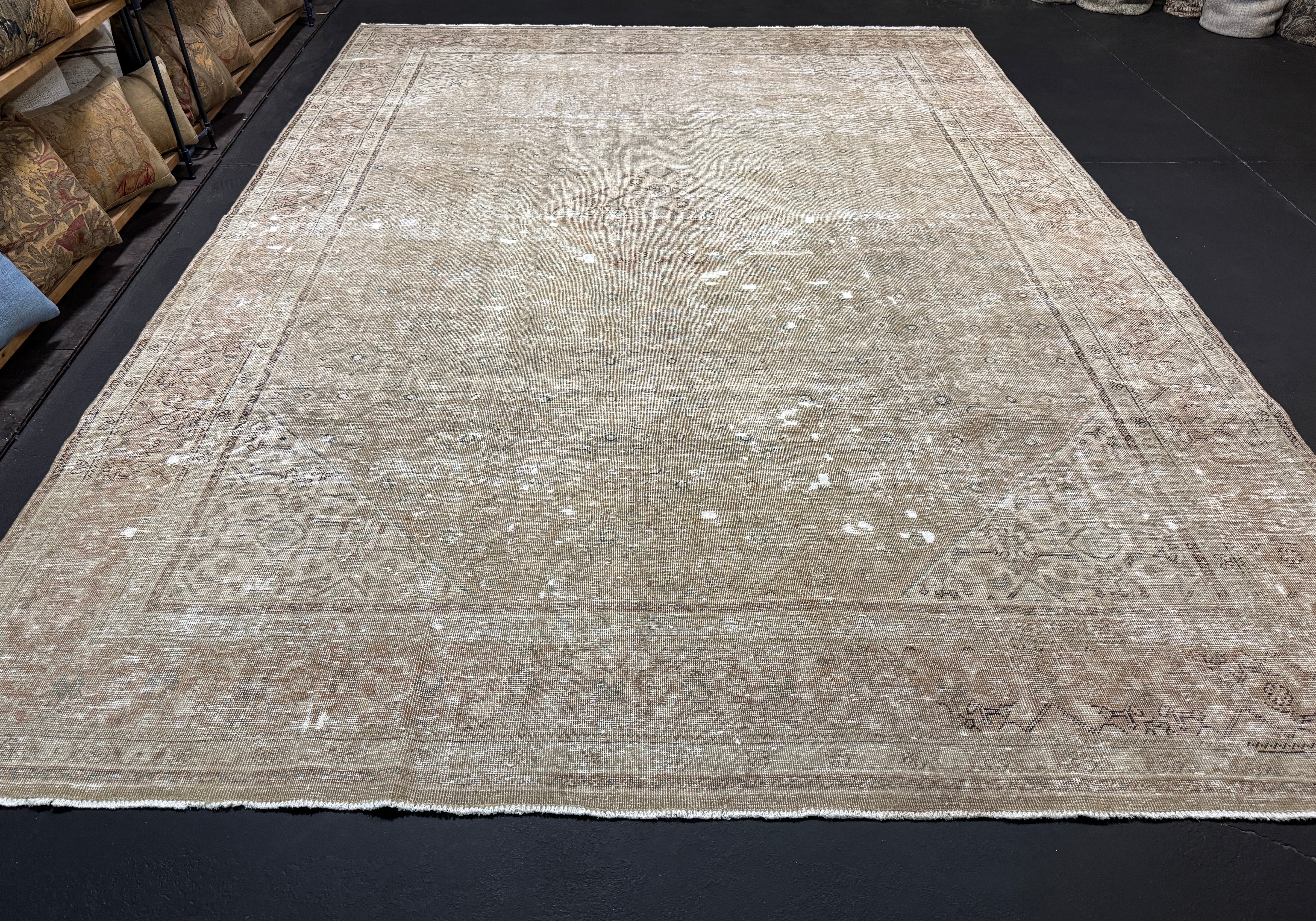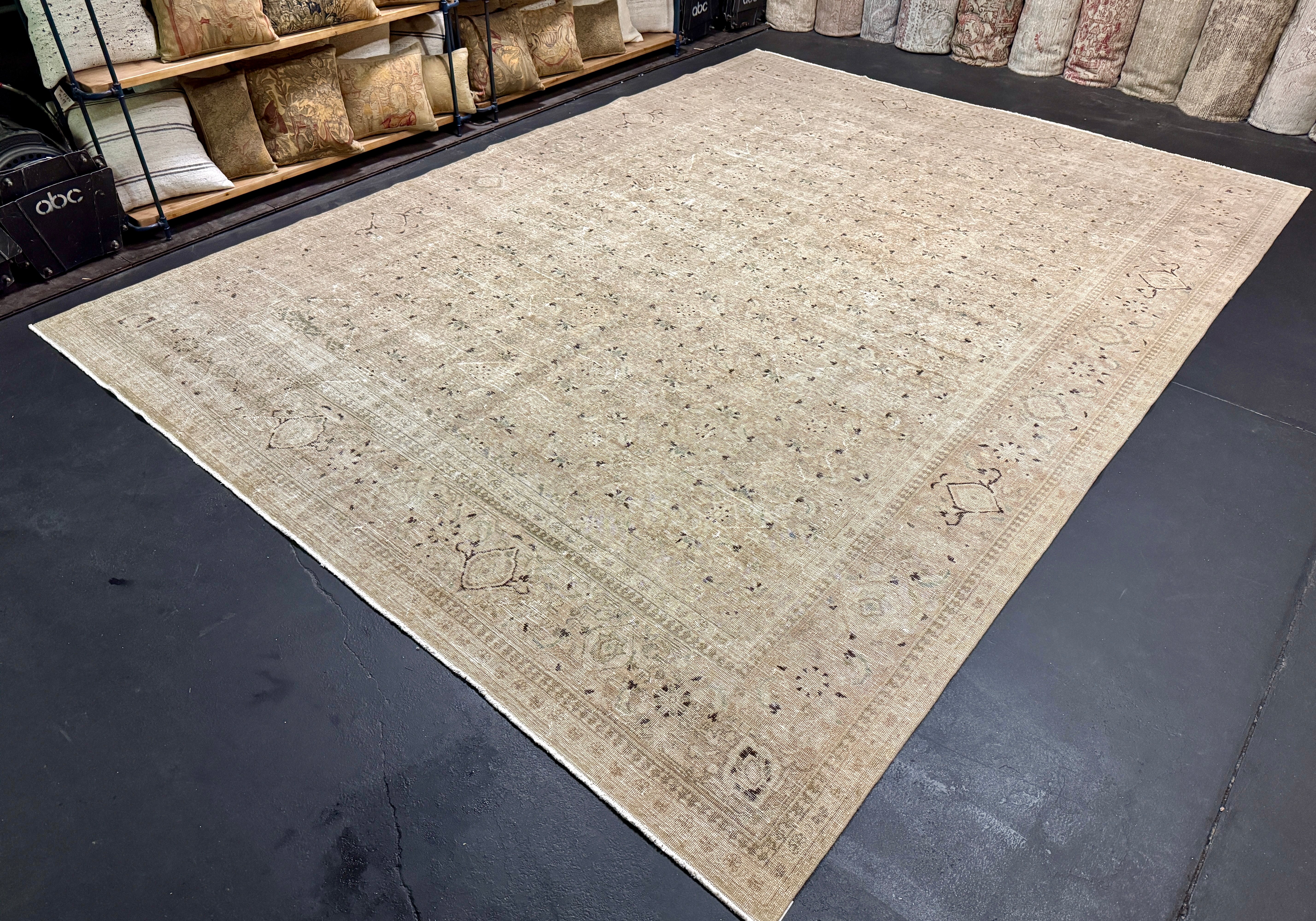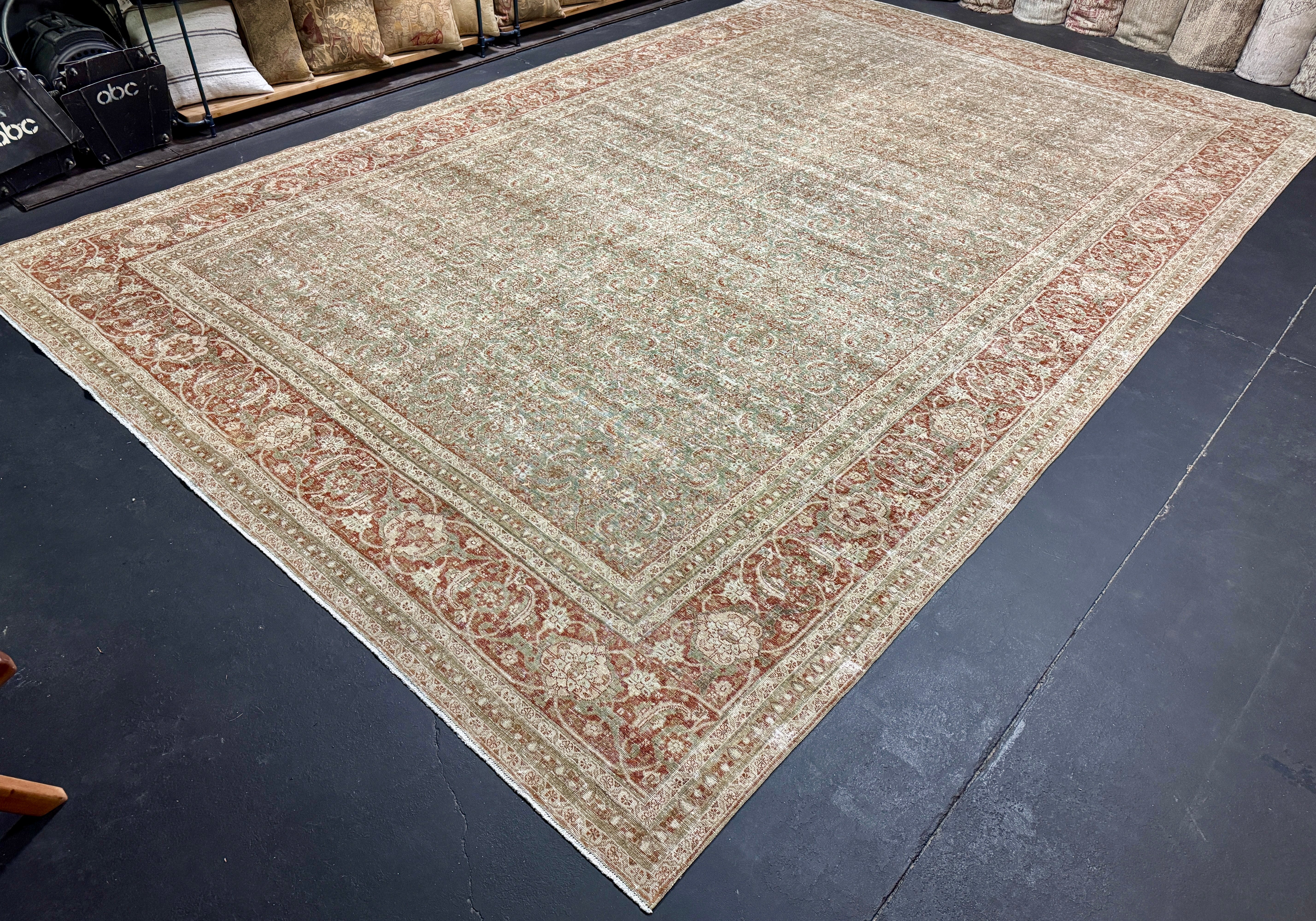 9’9 x 12’8 Classic Vintage Rug Muted Beige, Sea Foam Green & Brown '5434
