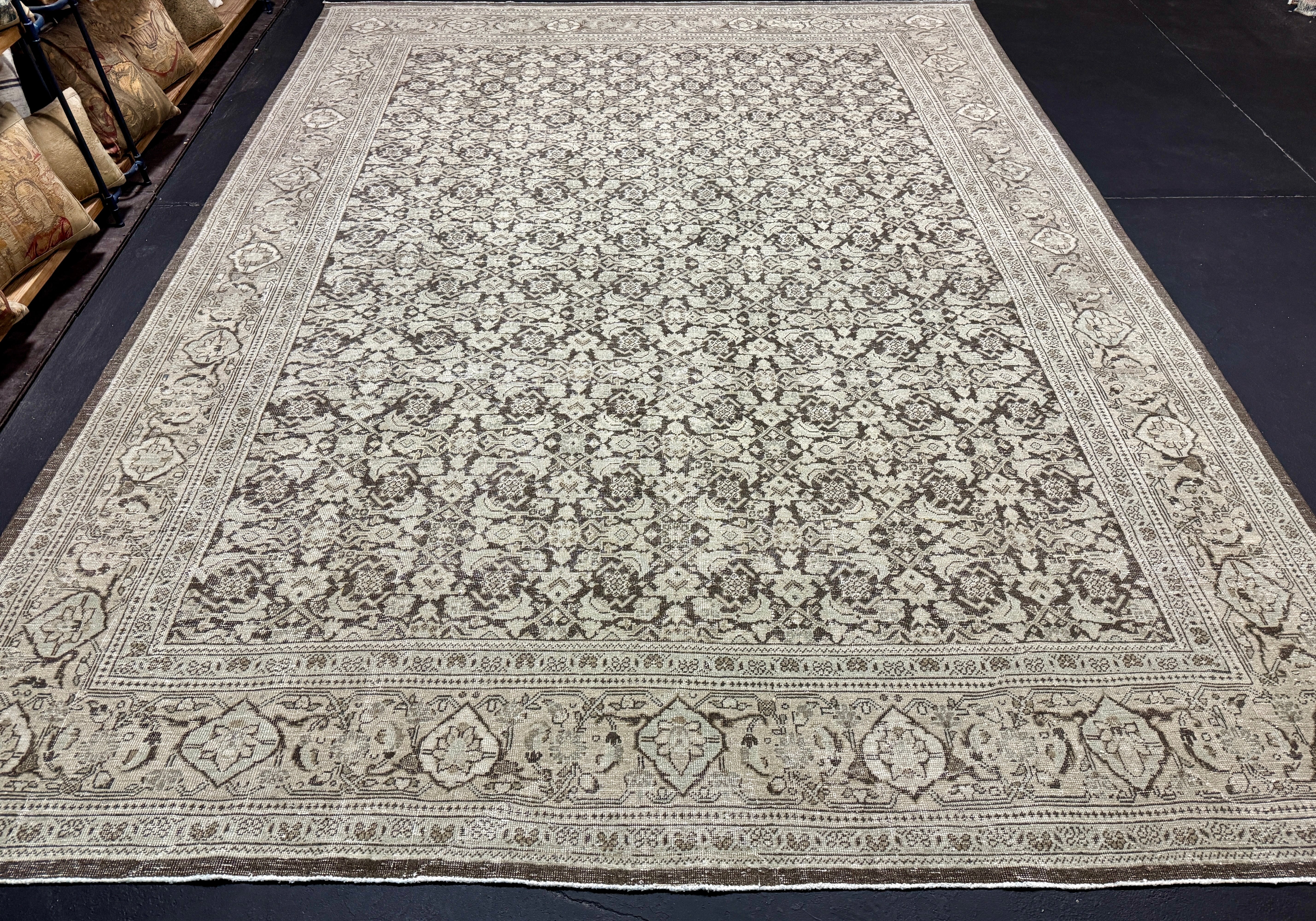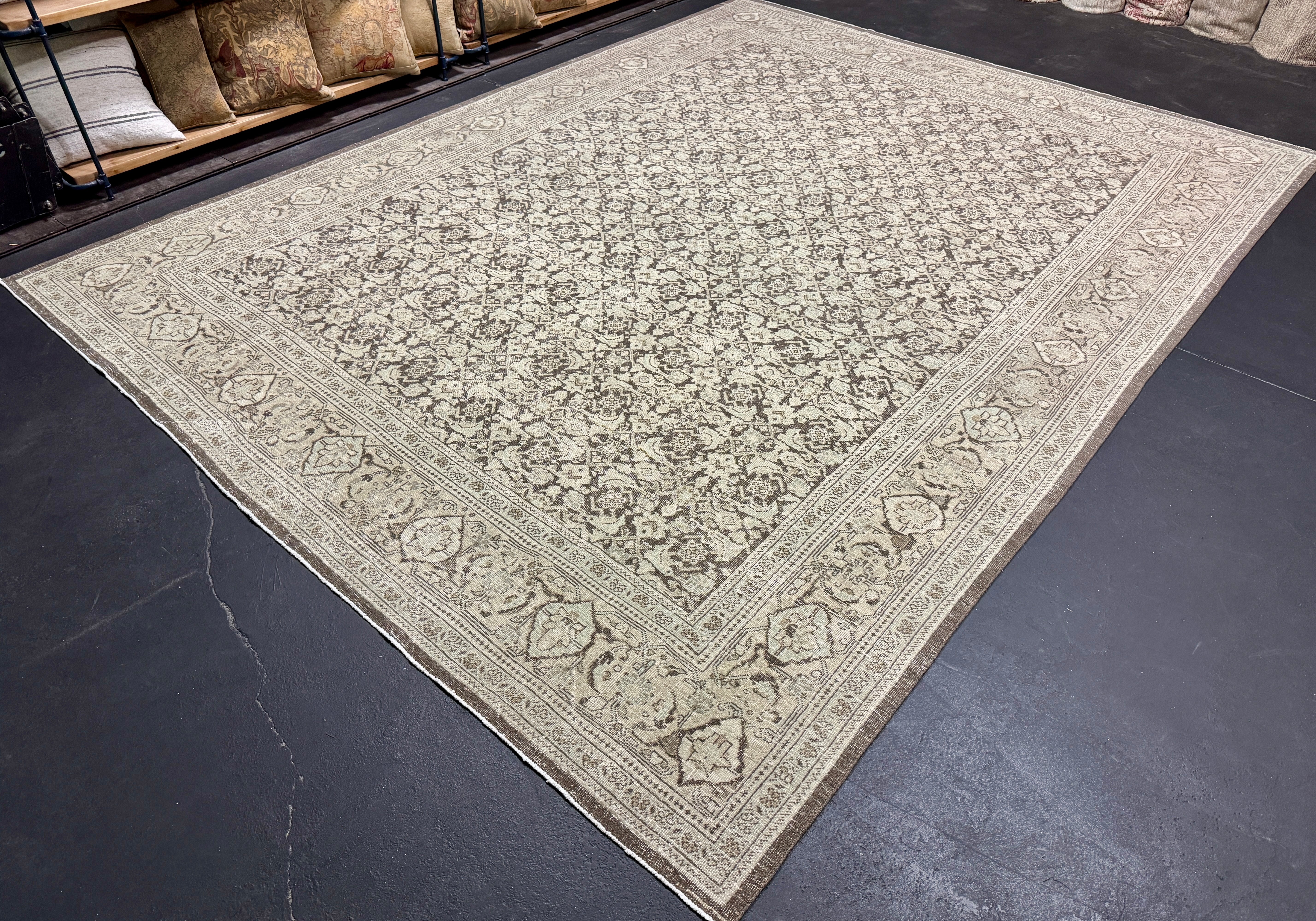 9’4 x 12’8 Classic Vintage Rug Muted Gray Beige, Sea Foam Green & Espresso '5444