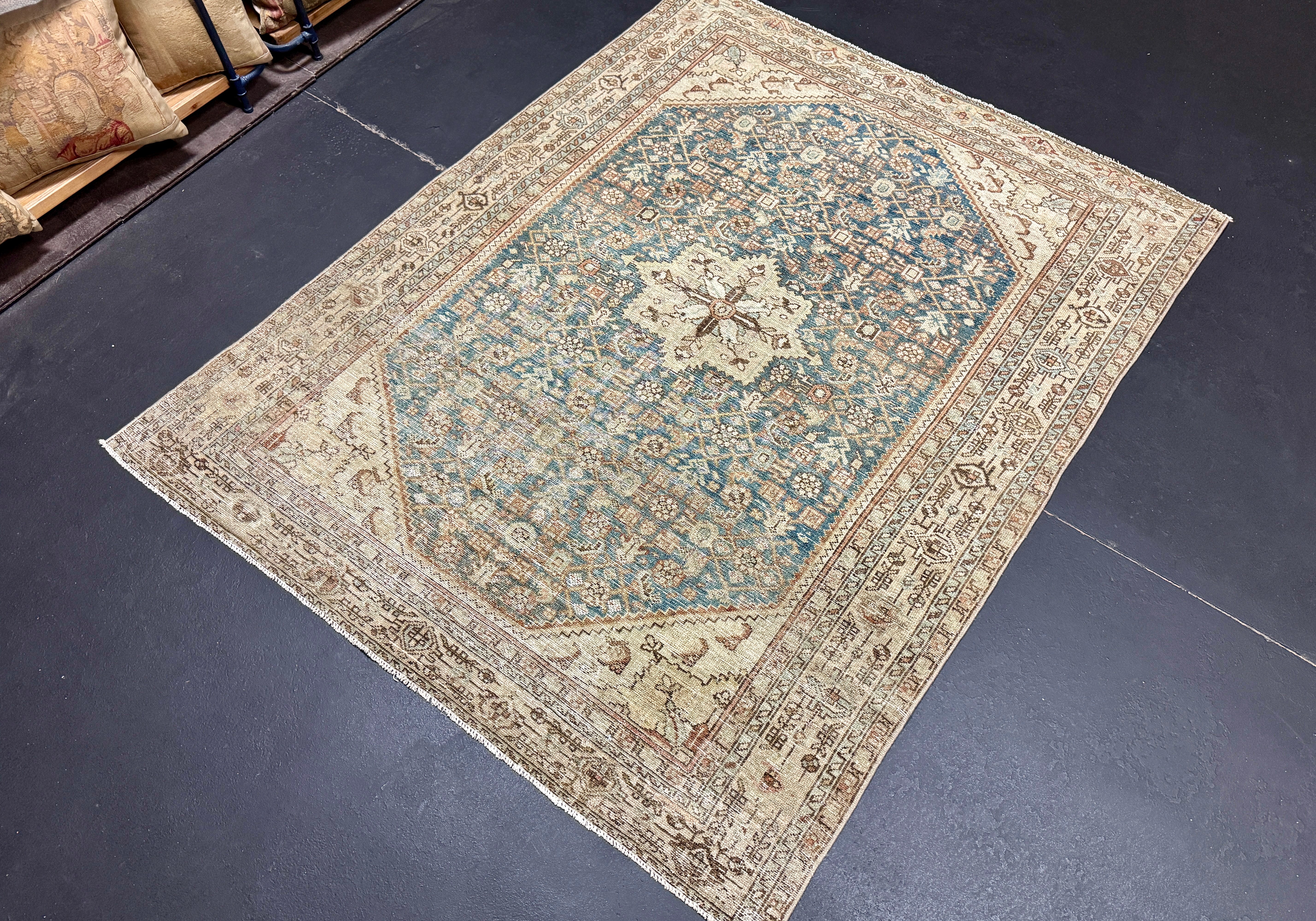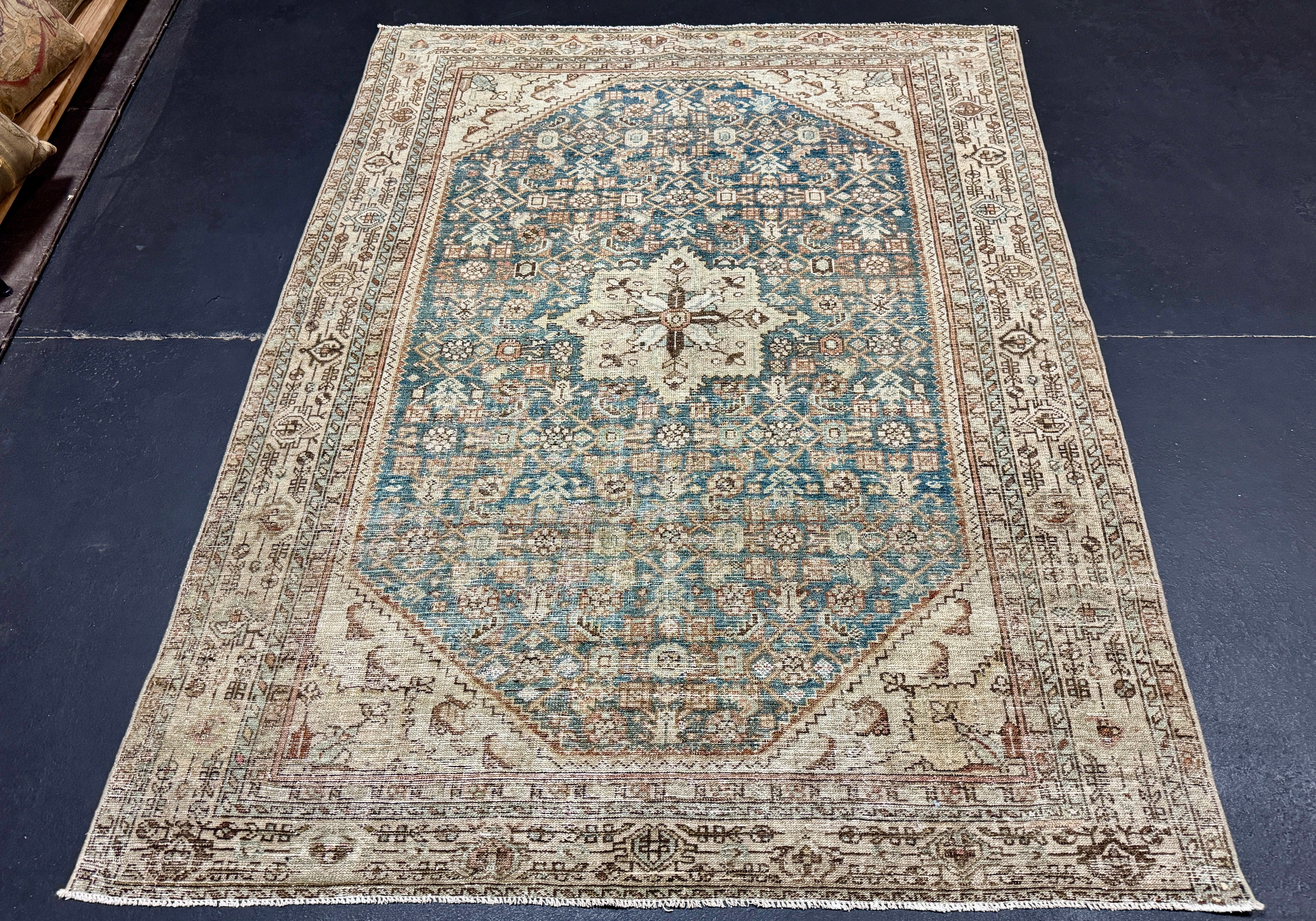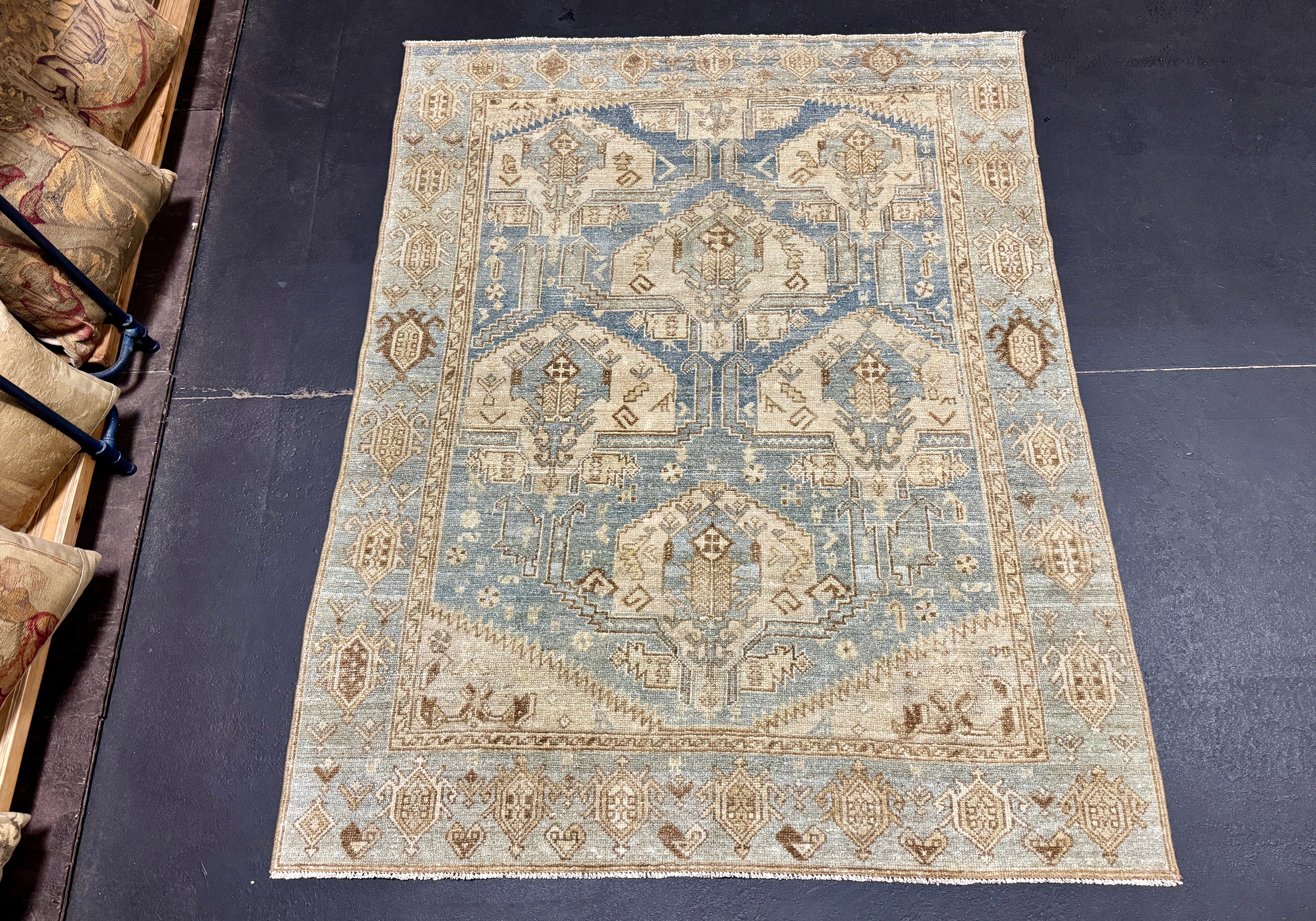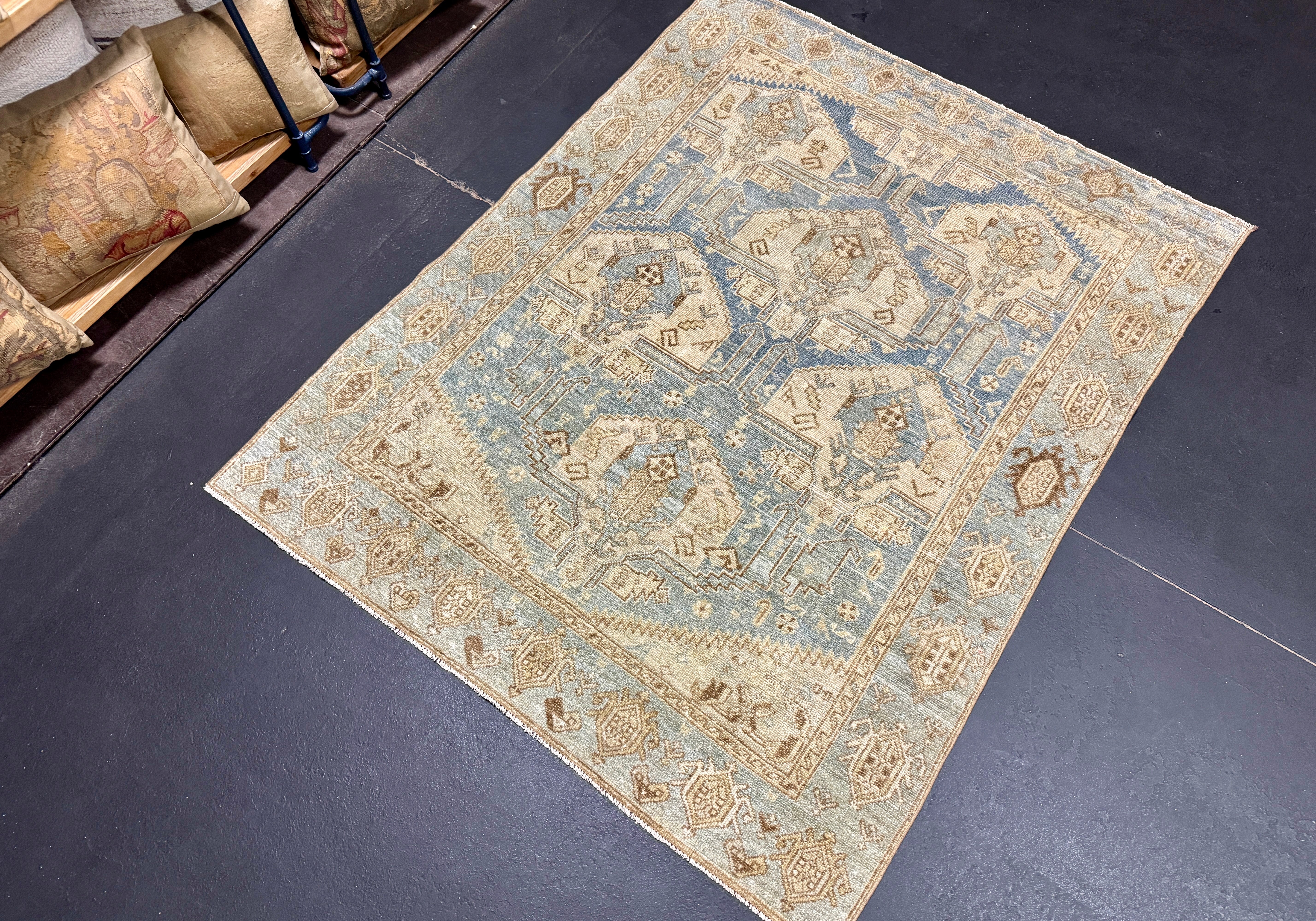 4’2 x 5’3 Classic Vintage Rug Muted Denim Blue & Beige 5732