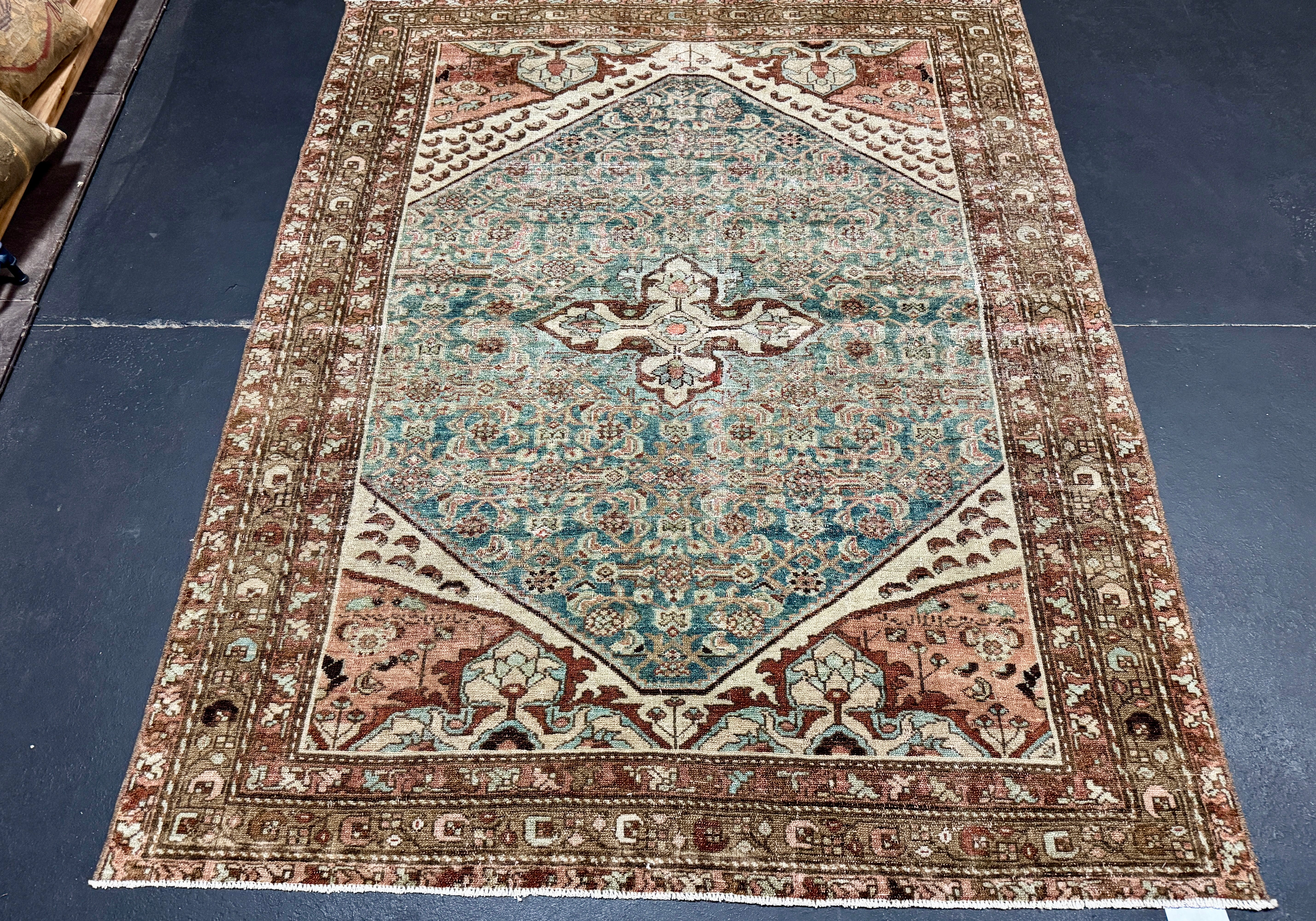 4’ x 5’10 Classic Antique Rug Muted Khaki Green, Brick & Blue '5566