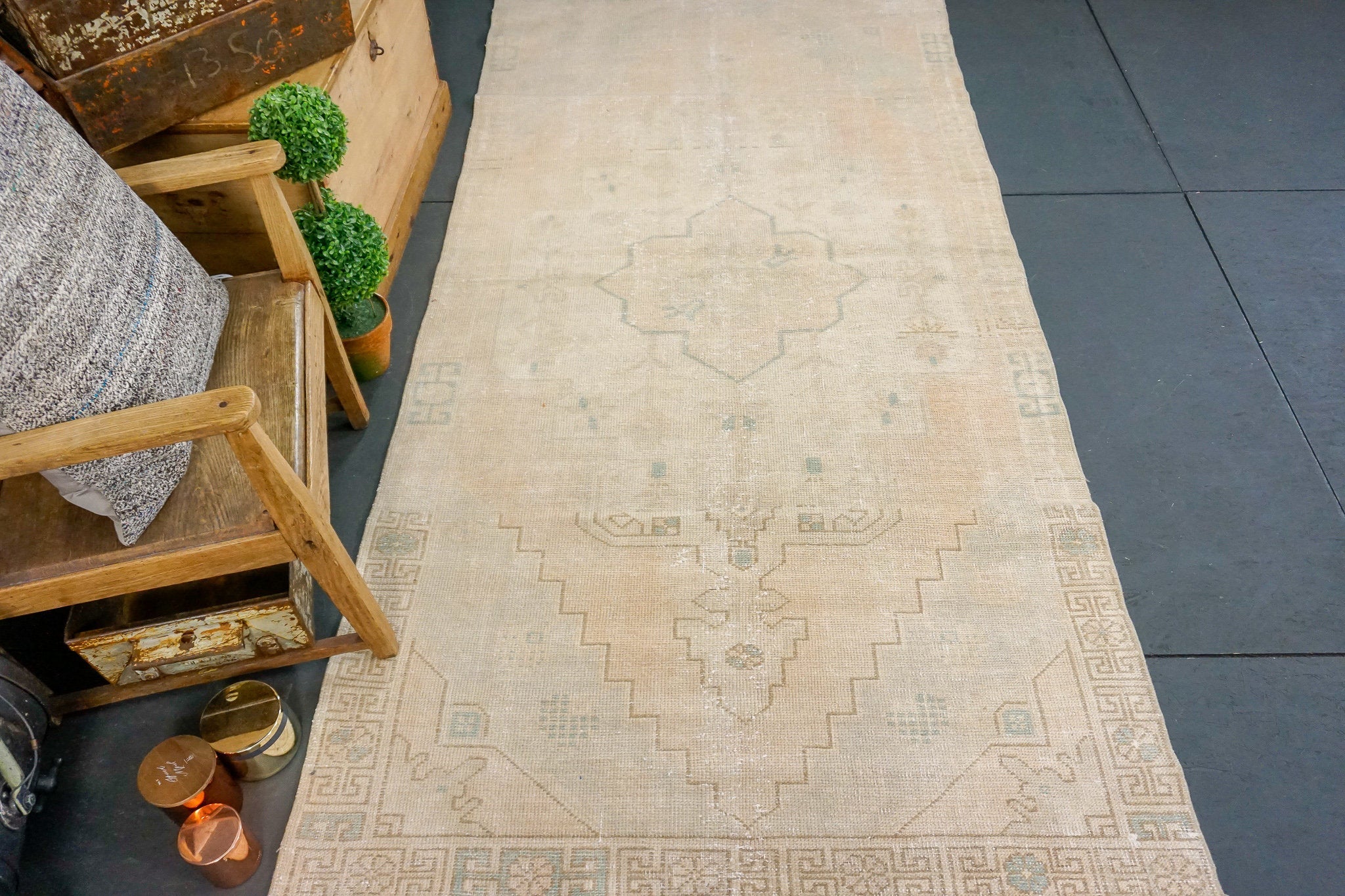 4'3 x 9'4 Oushak Wide Runner Rug Muted Red, Gray, Apricot, Mustard and Cream Carpet '2348
