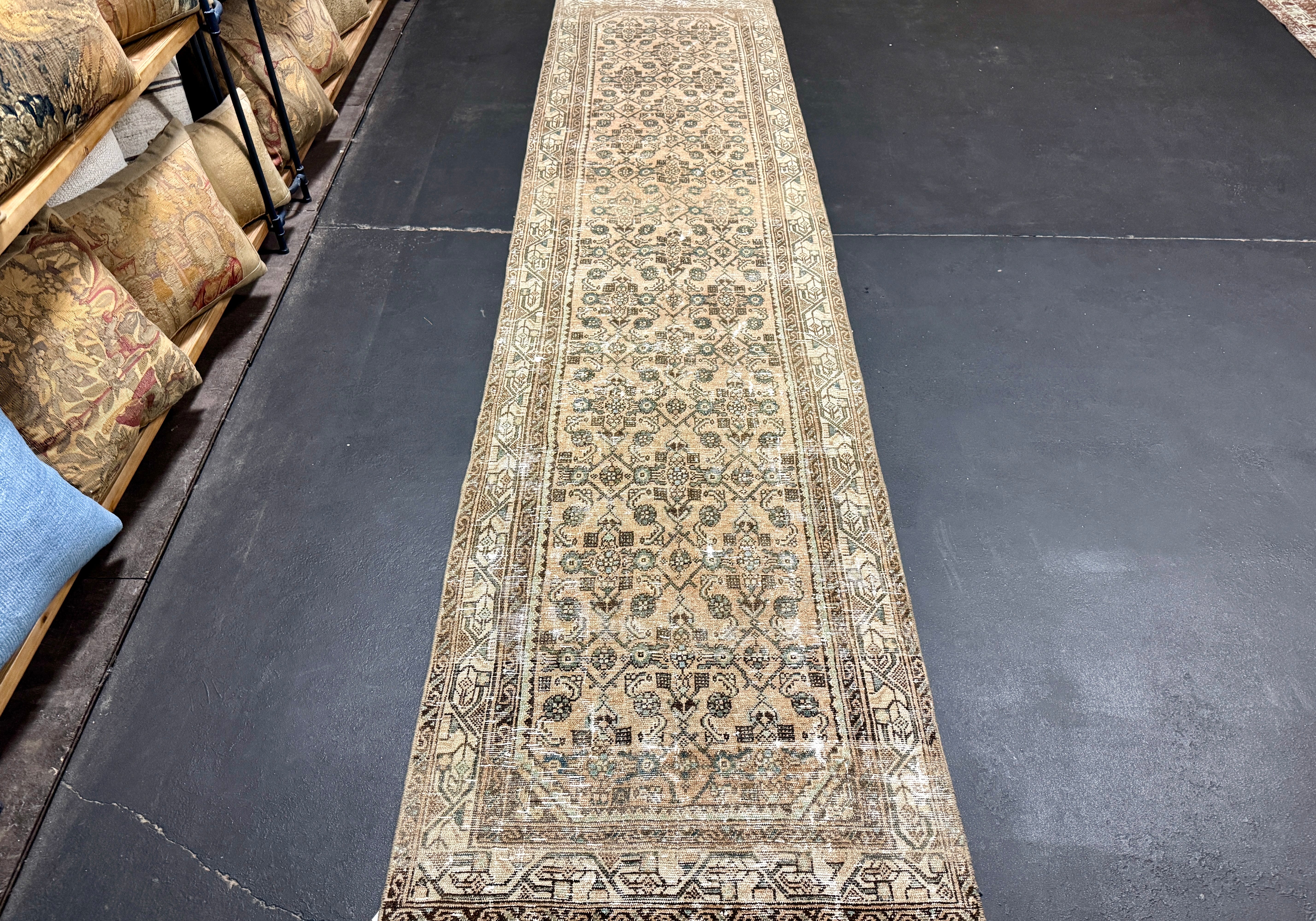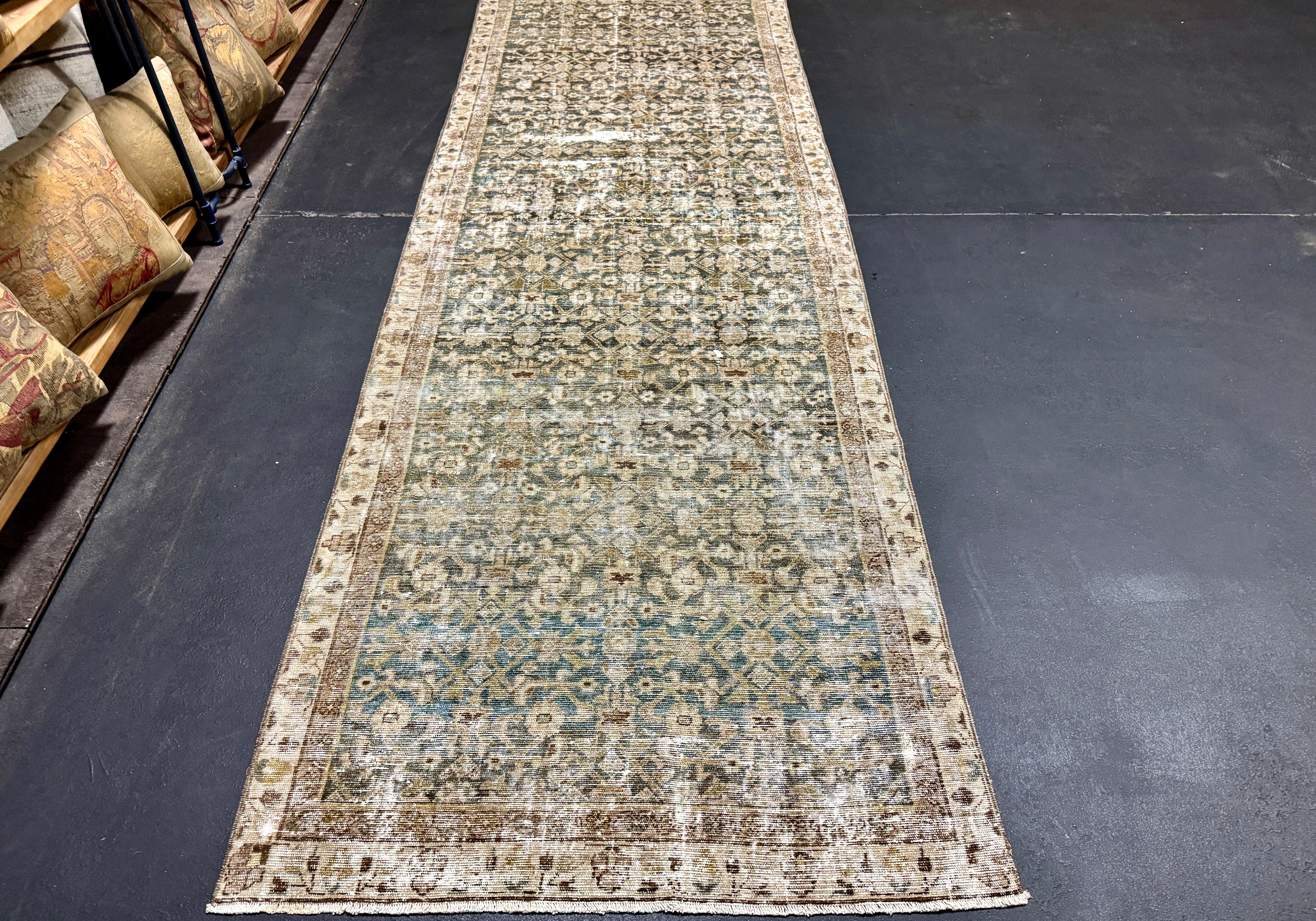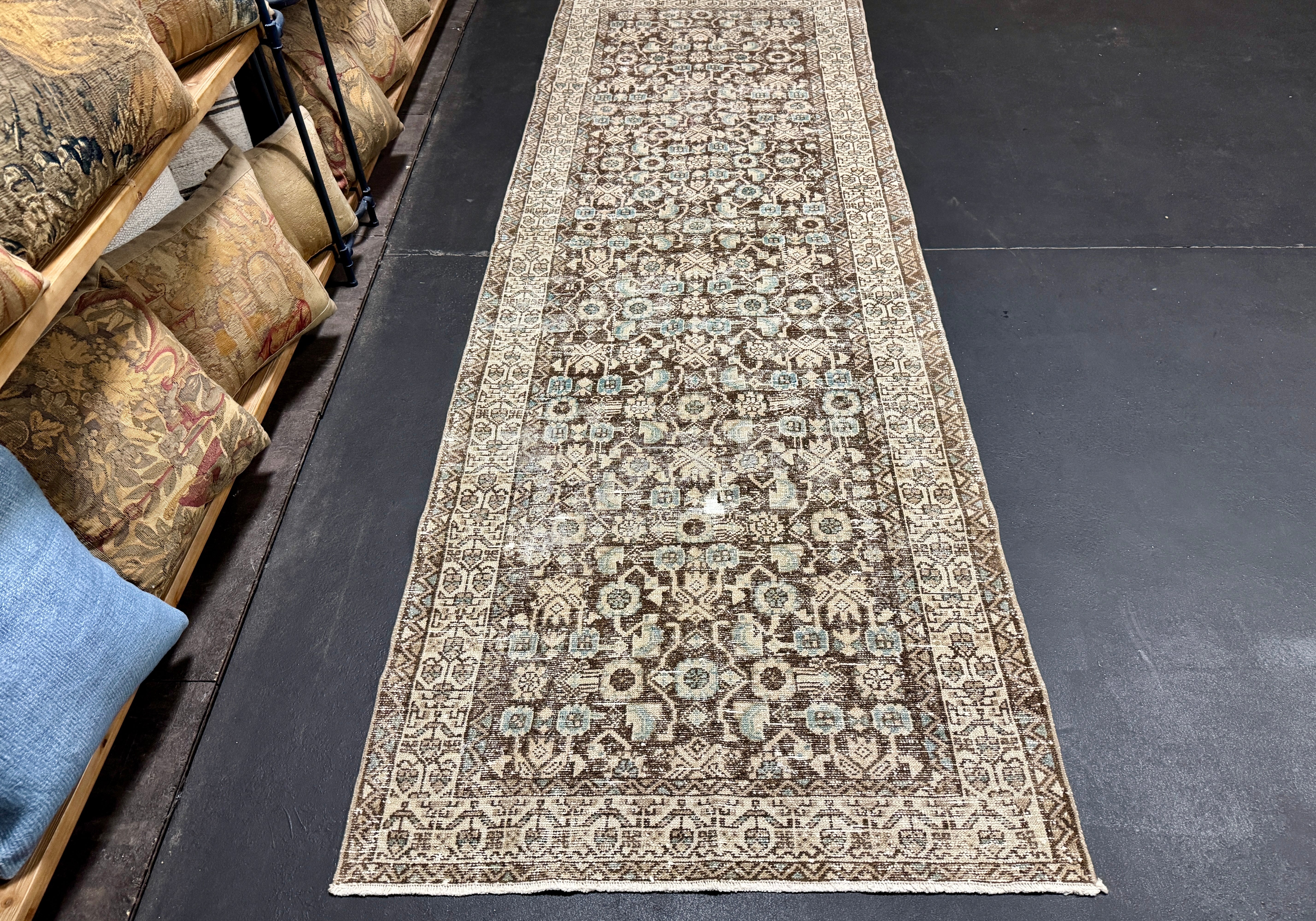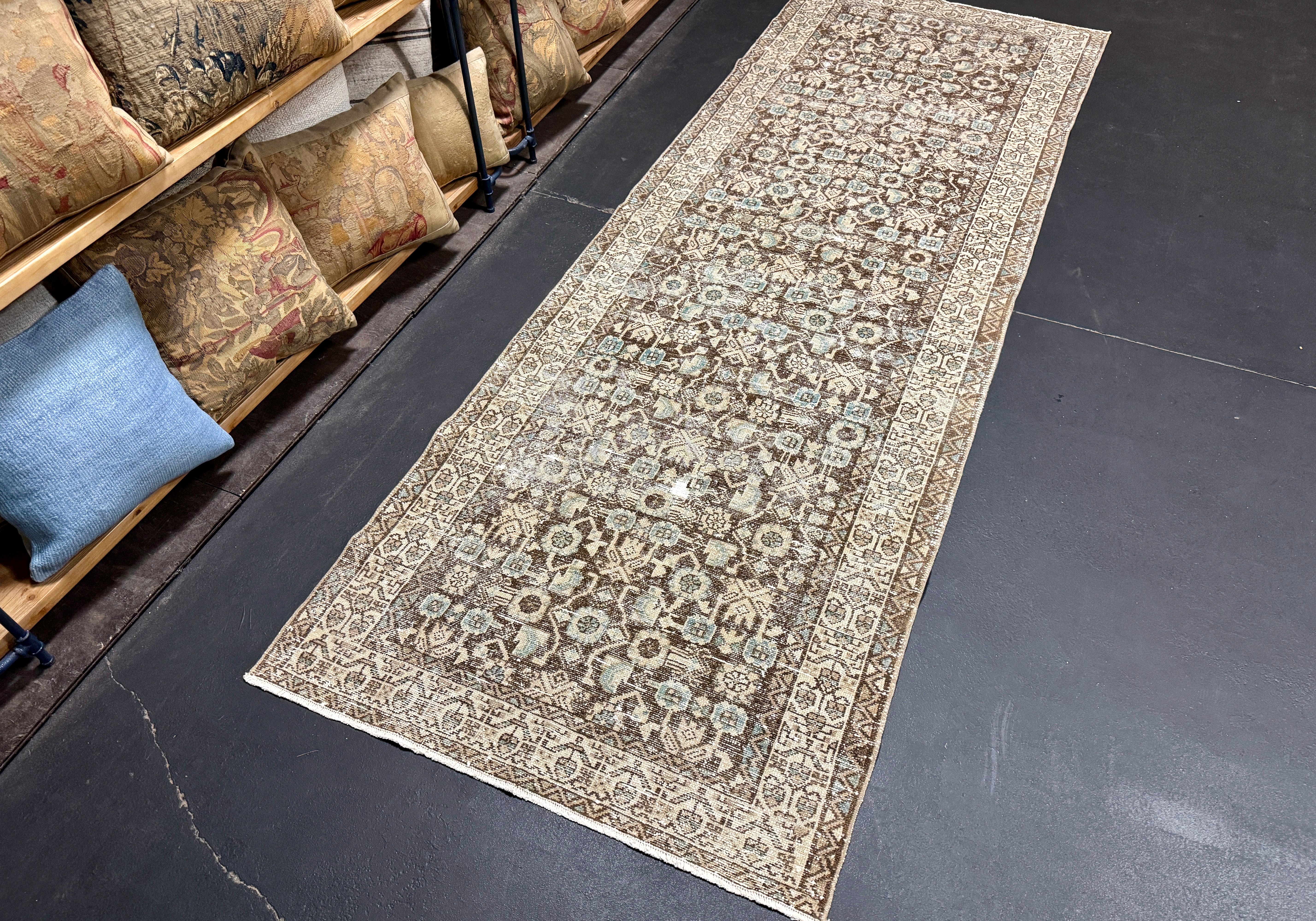 3’5 x 12’9 Classic Vintage Runner Muted Brown, Beige, Blue + Green 5482
