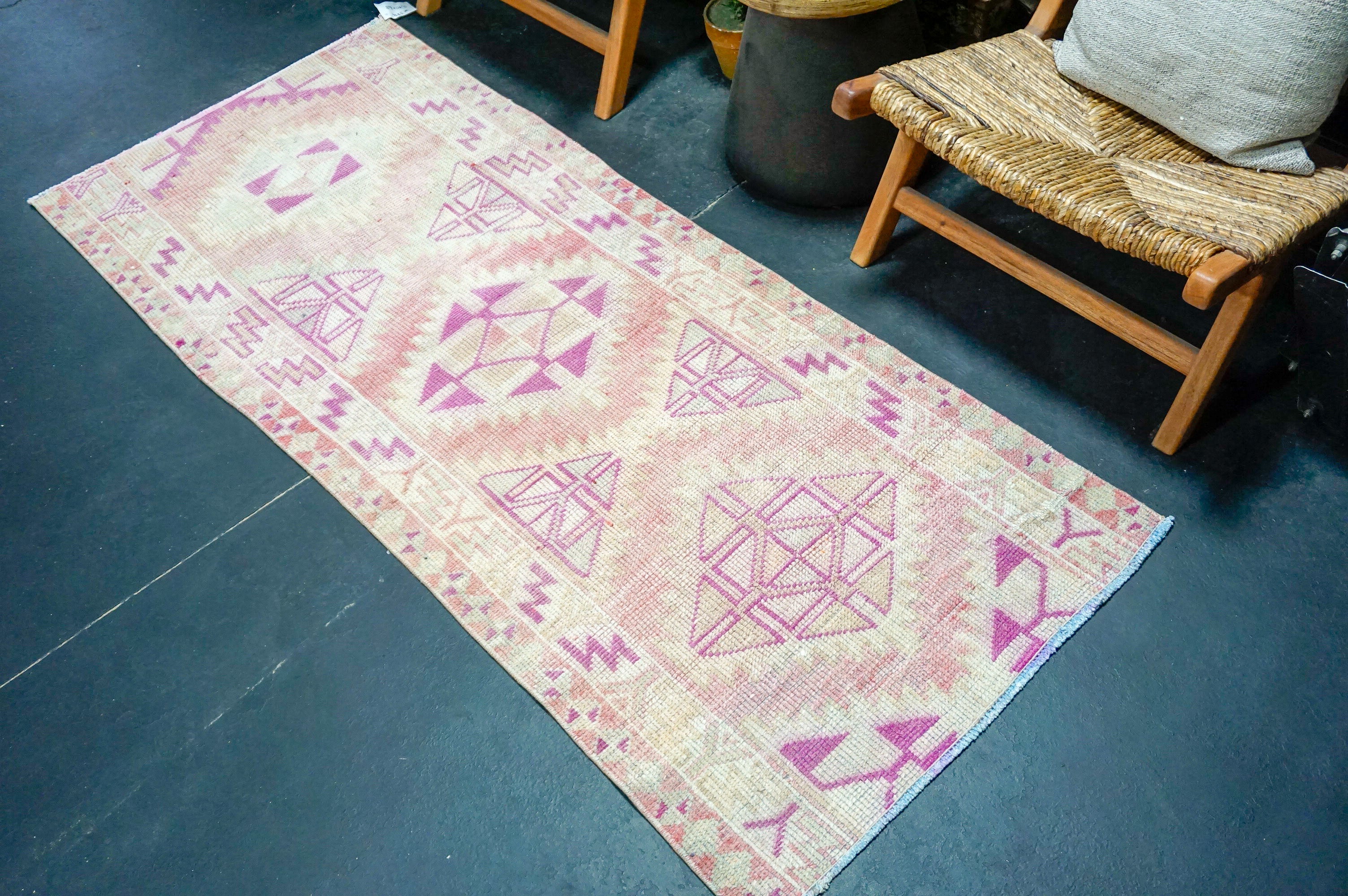 Hold for CL til 10/23*2’11 x 5’8 Vintage Herki Runner Blush, Gray + Fuchsia '3839