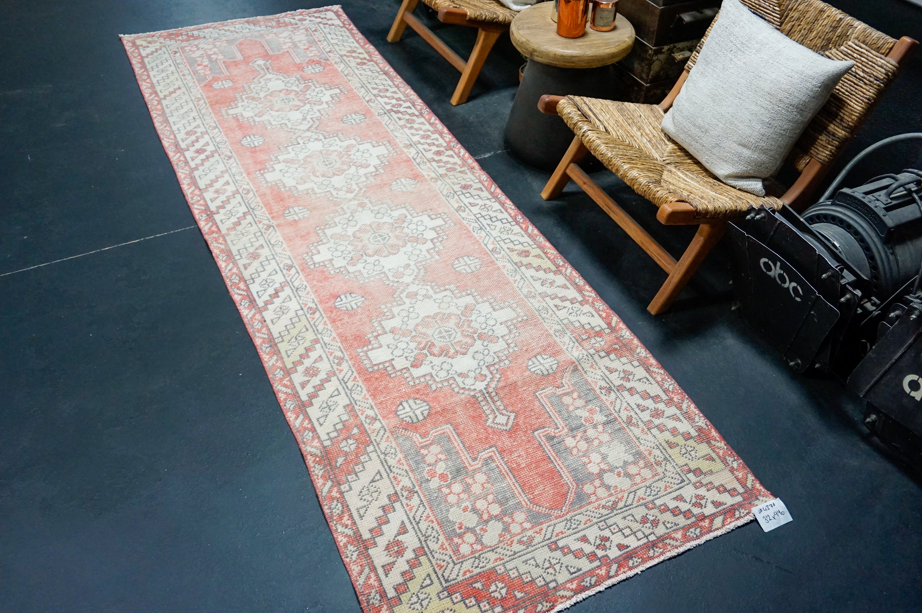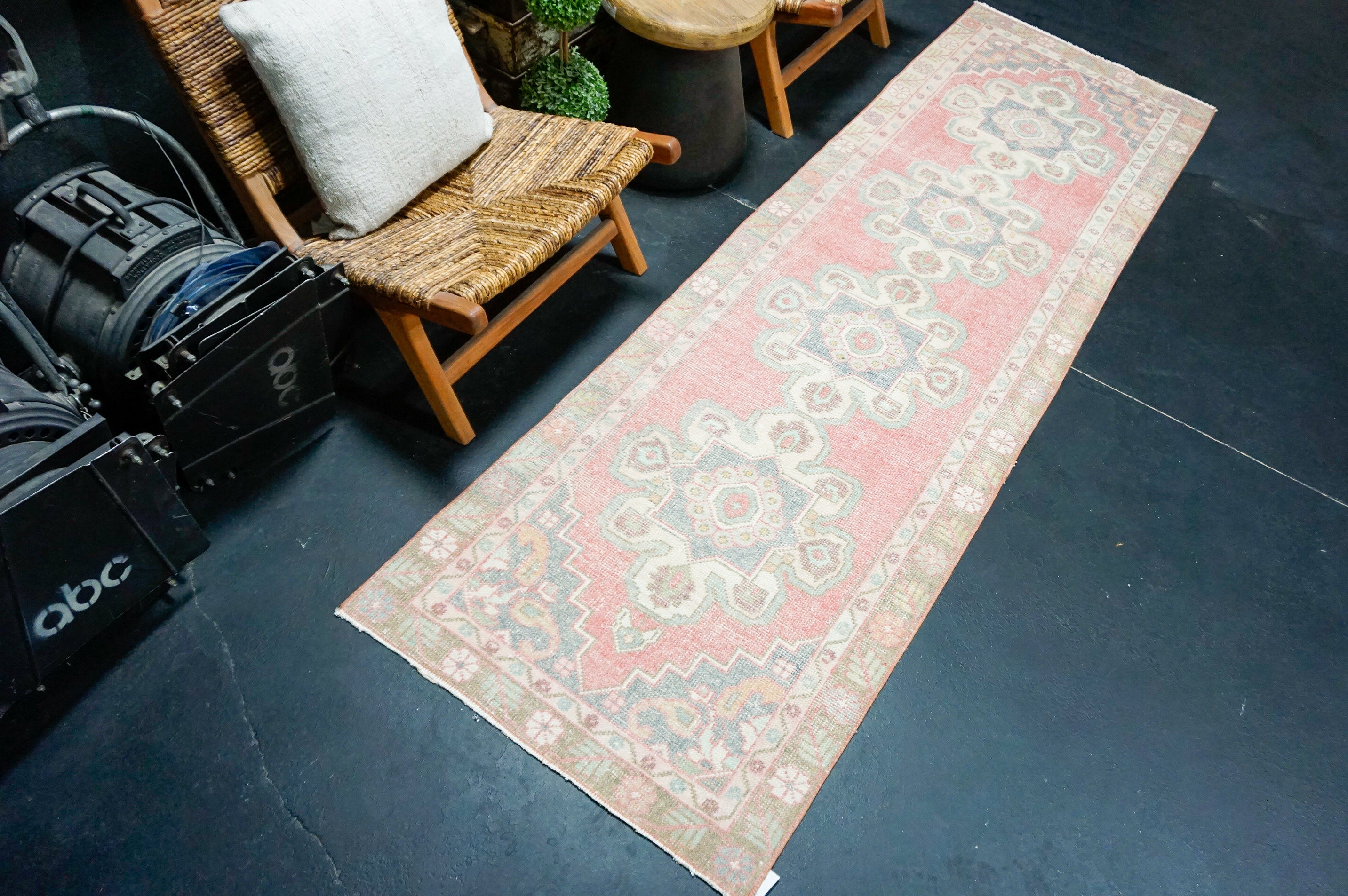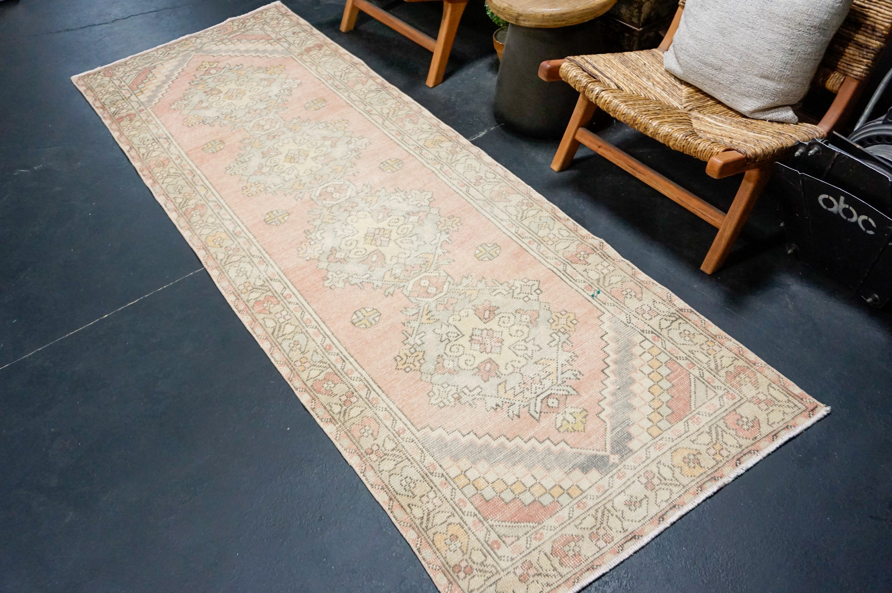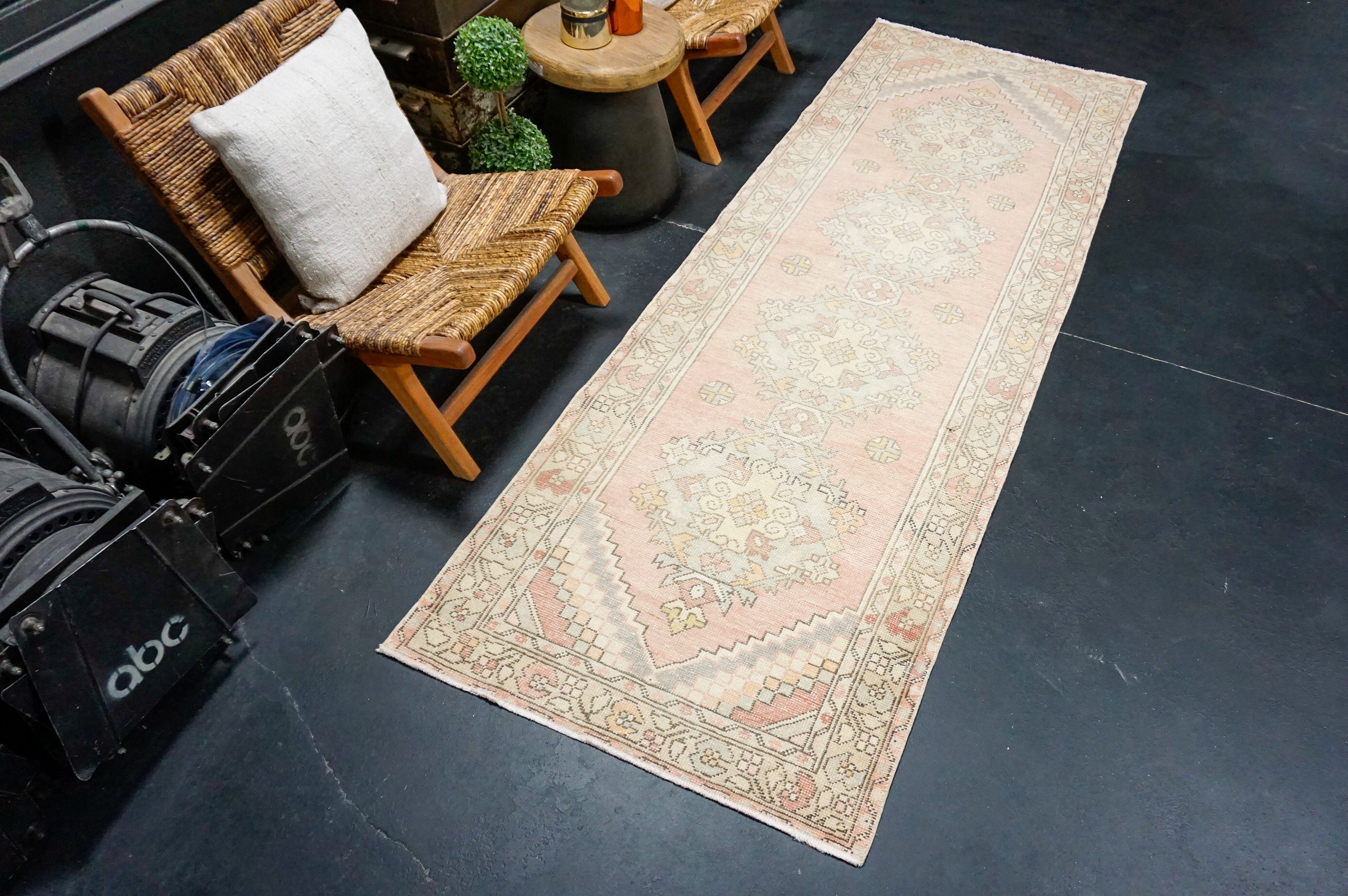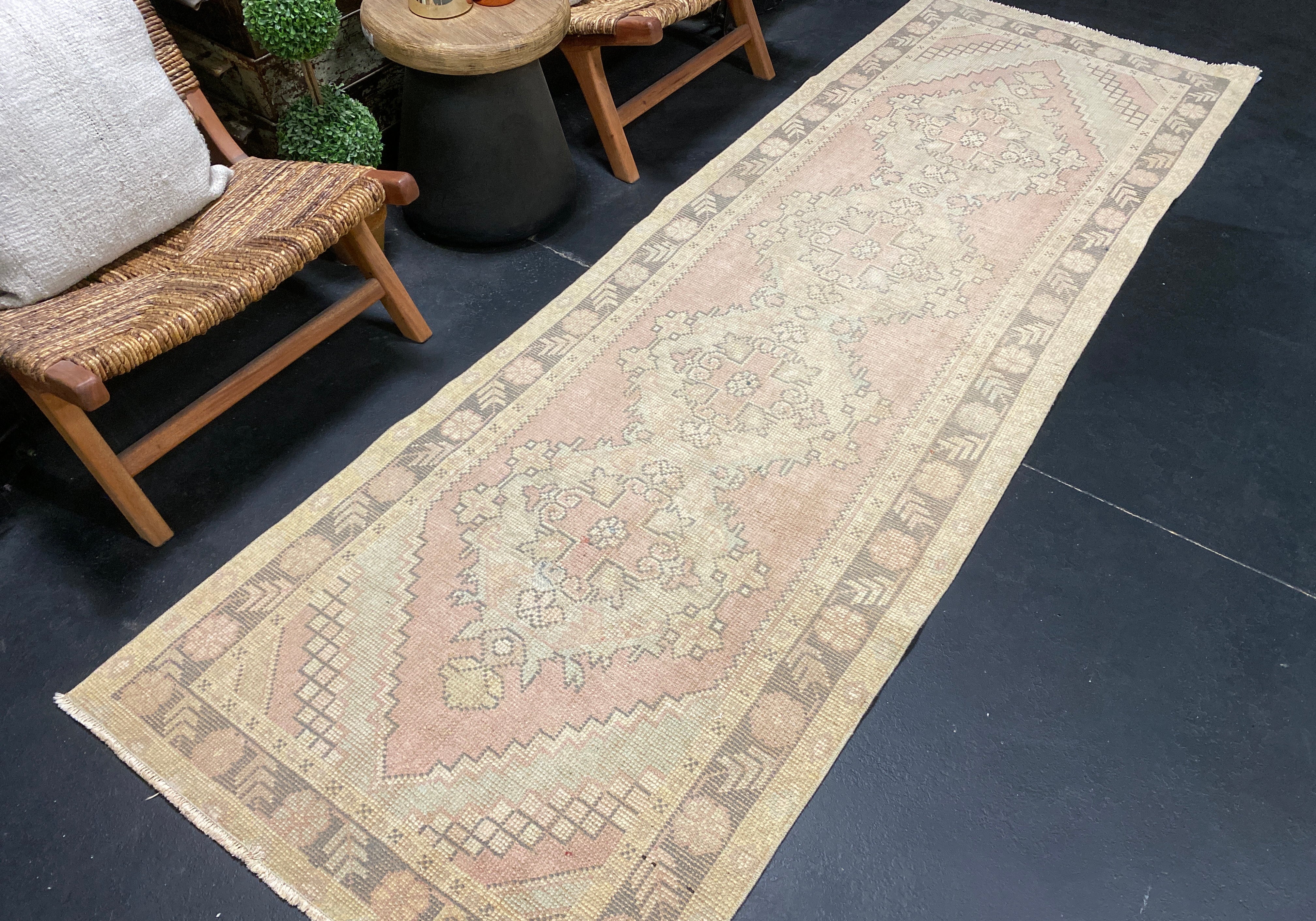 3’ x 9’4 Vintage Turkish Runner Muted Strawberry, Gray & Honey '4335