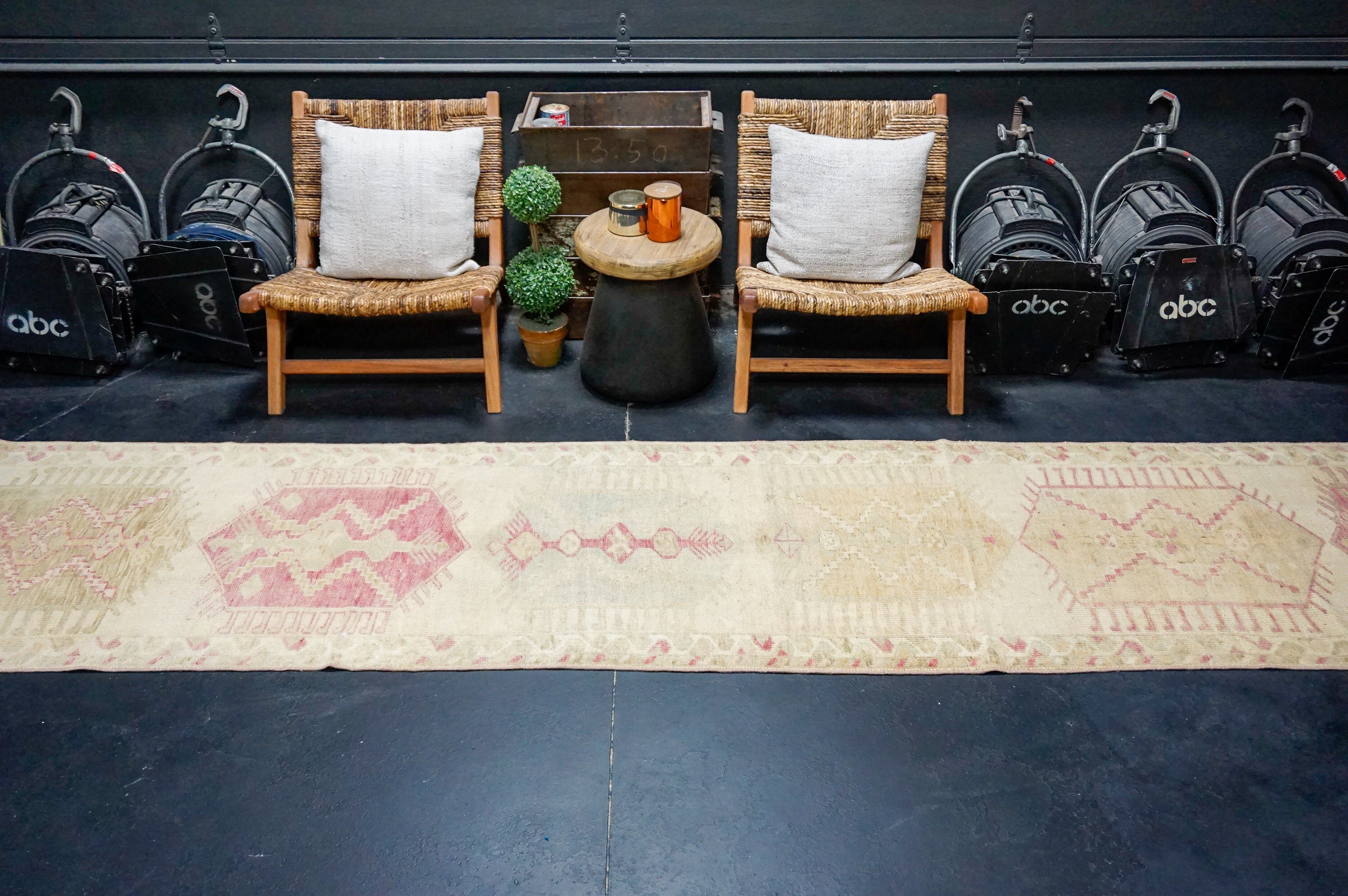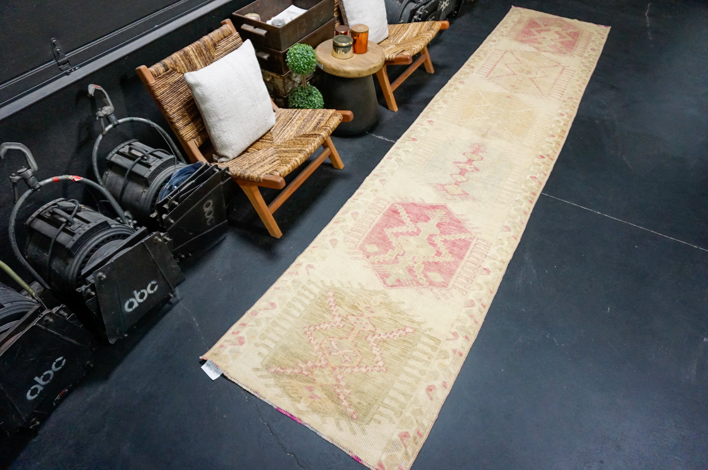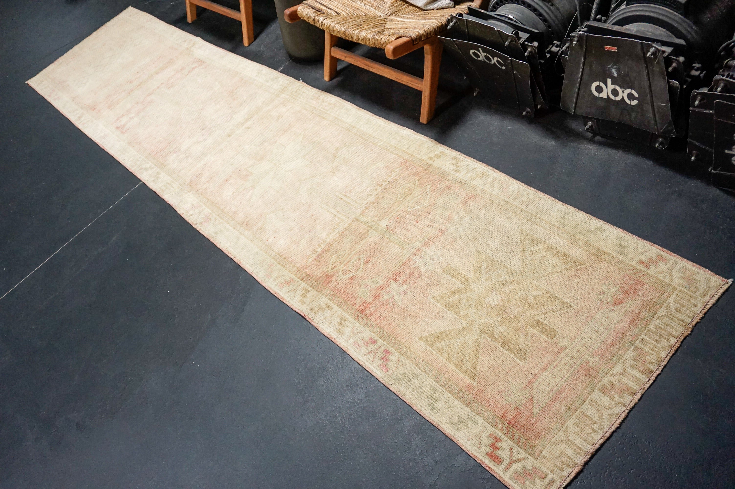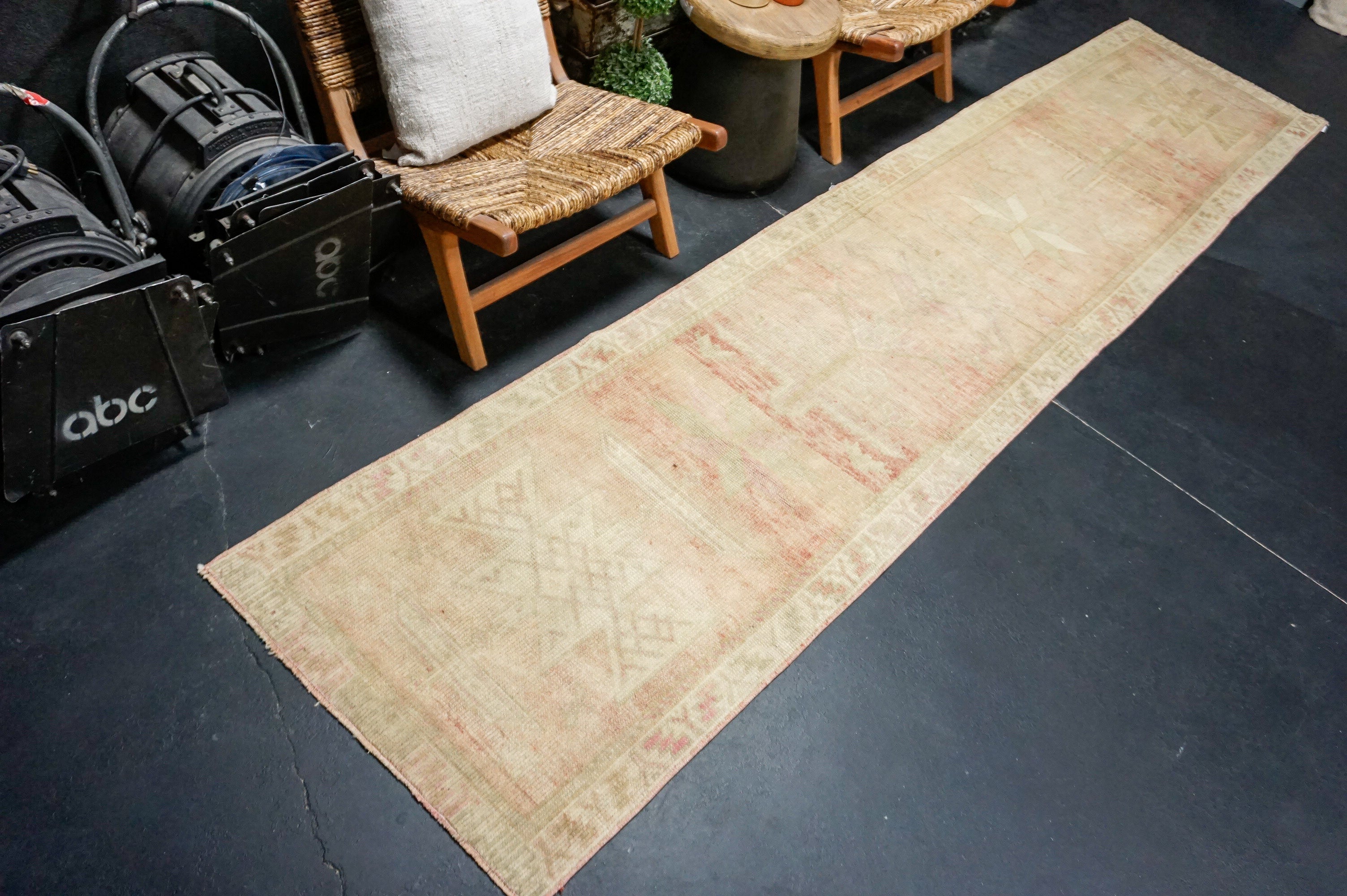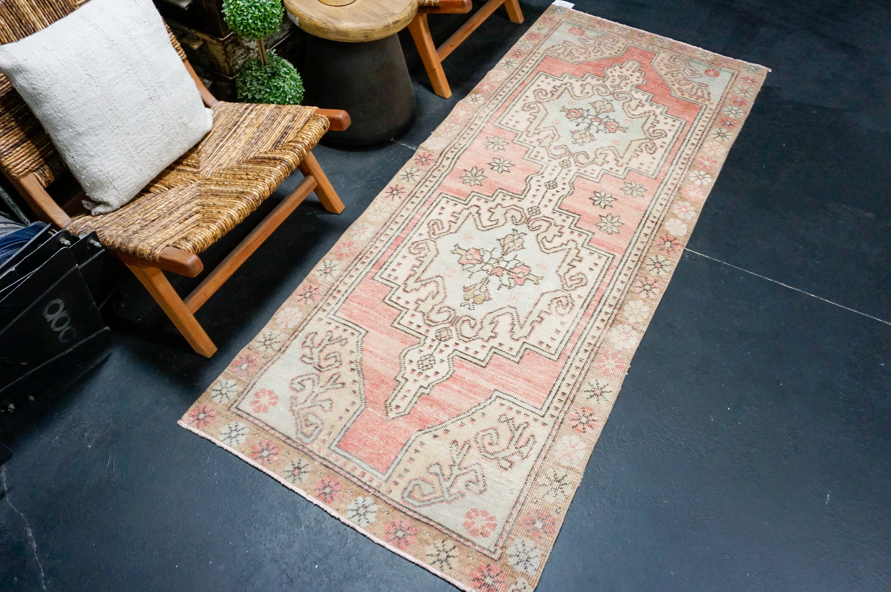 3’ x 9’4 Vintage Turkish Runner Muted Strawberry, Gray & Honey '4335