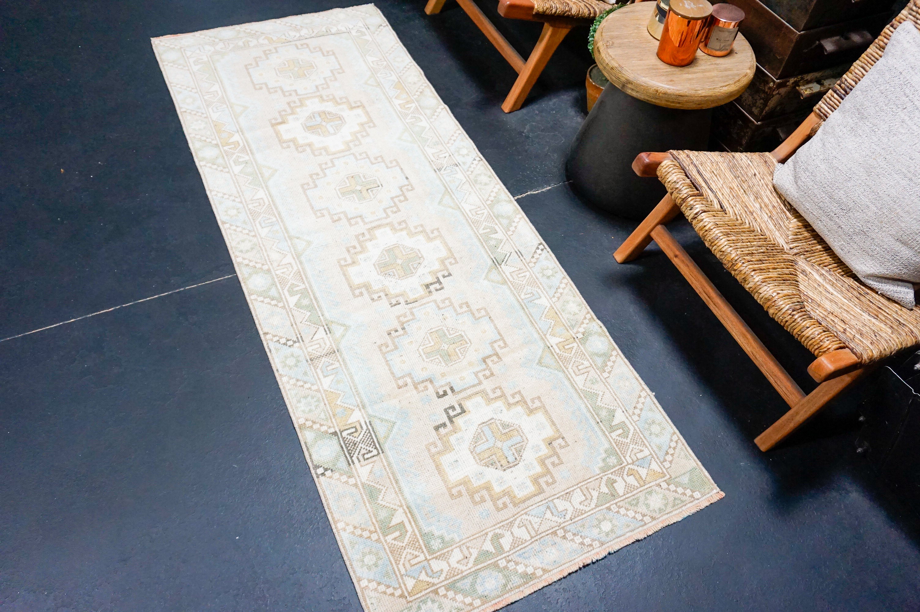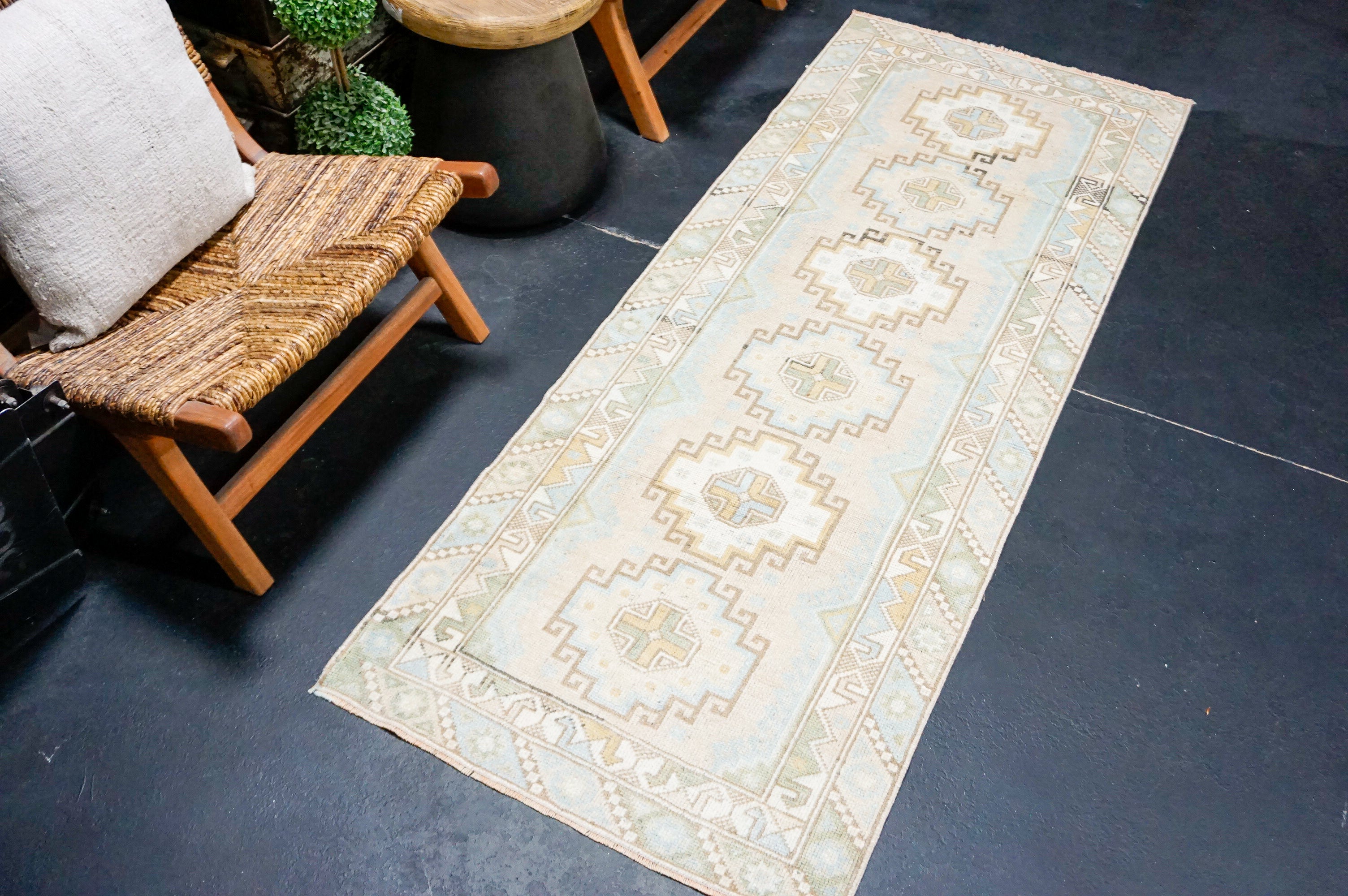 2’7 x 6’10 Vintage Turkish Runner Powder Blue, Sage Green + Cream '4360