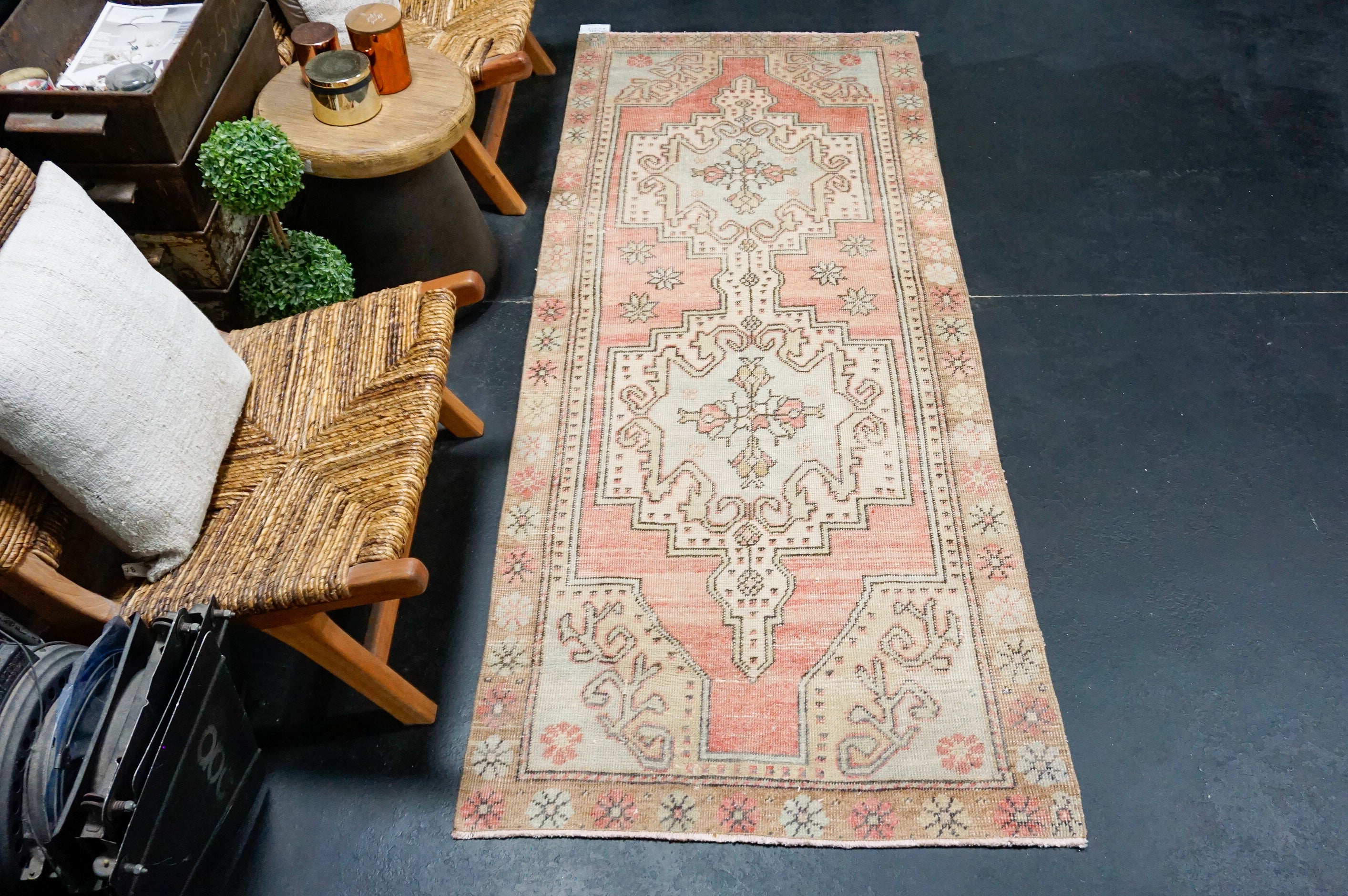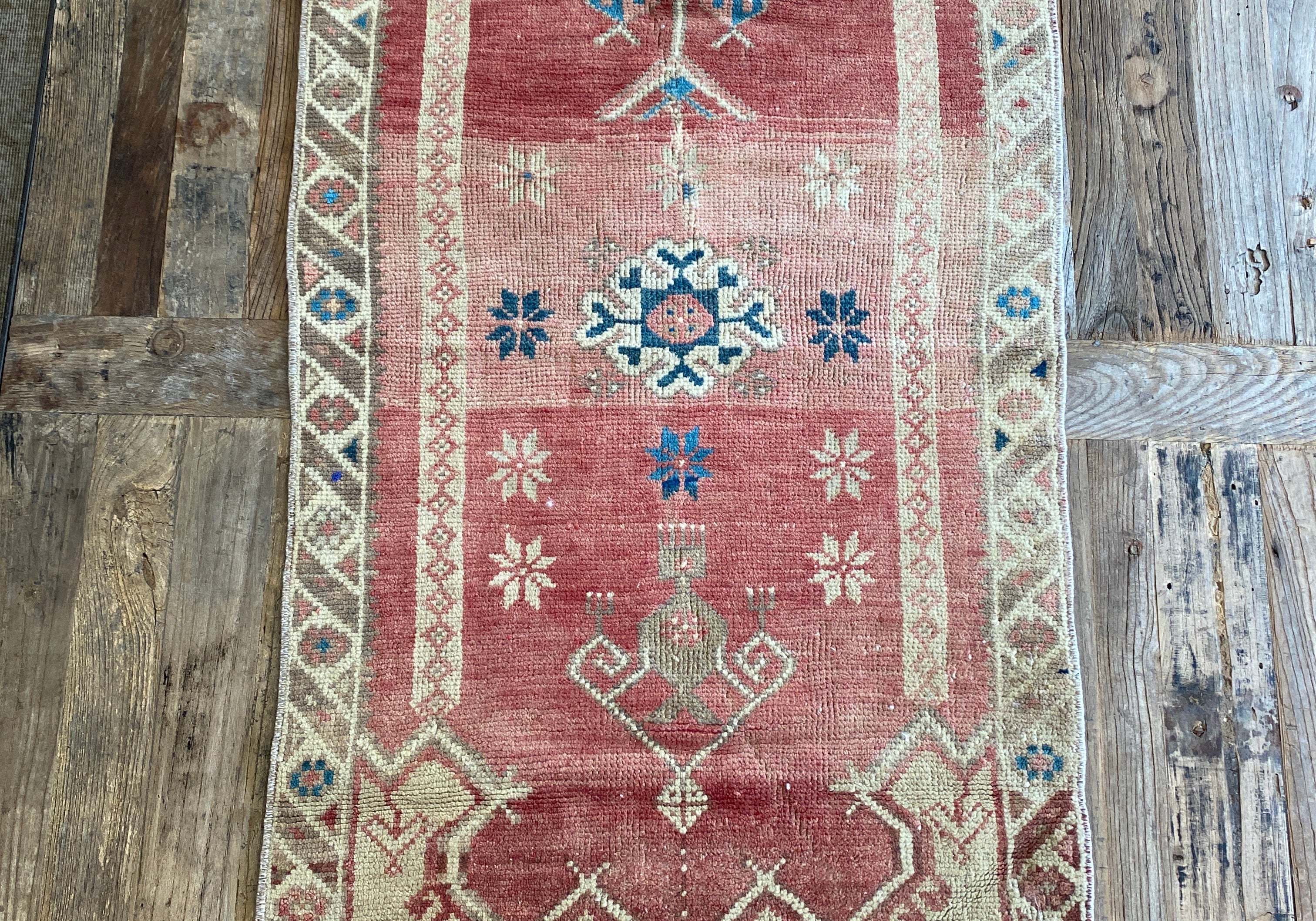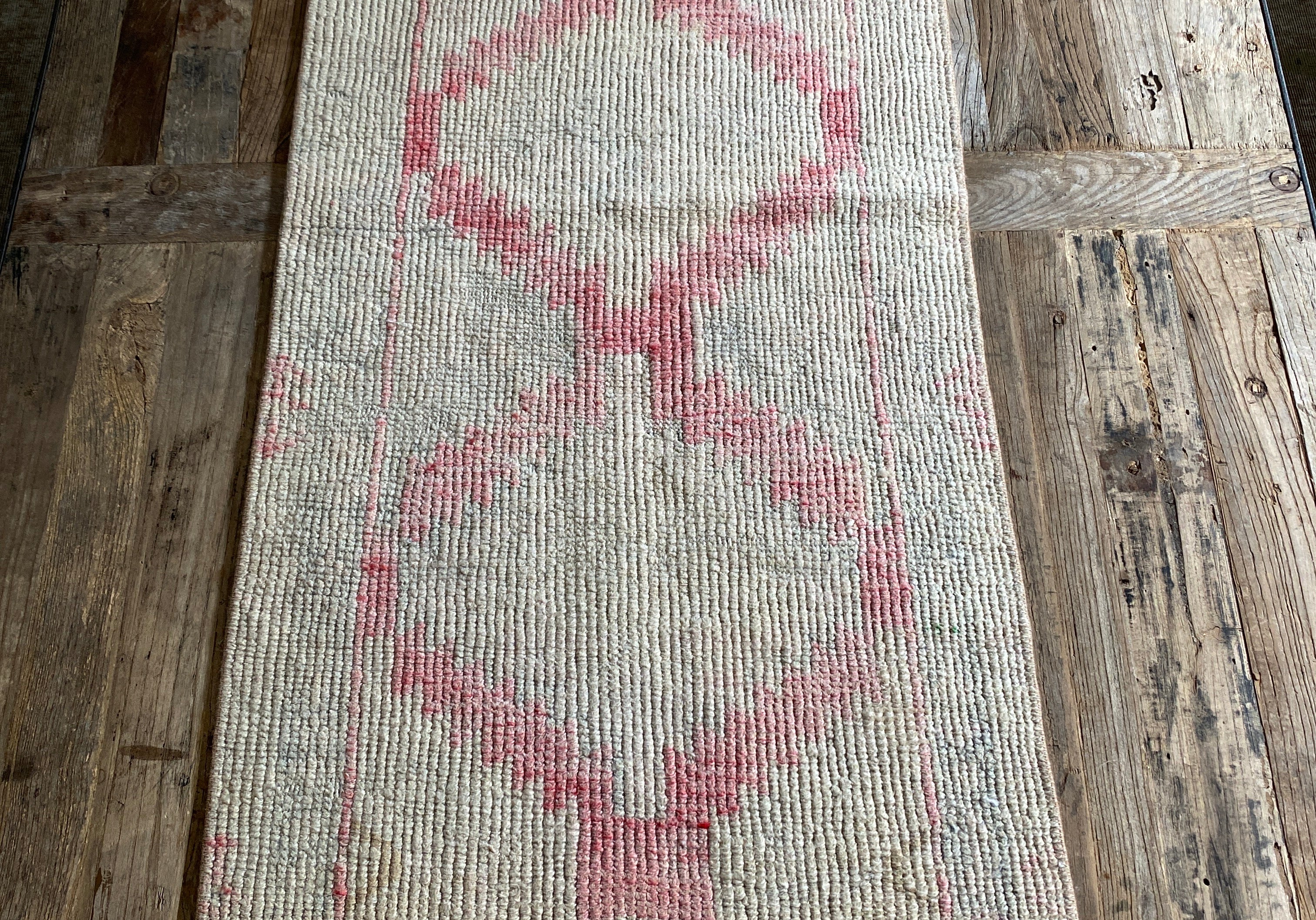 2’3 x 4’3 Vintage Oushak Runner Muted Red, Apricot + Cream '3854