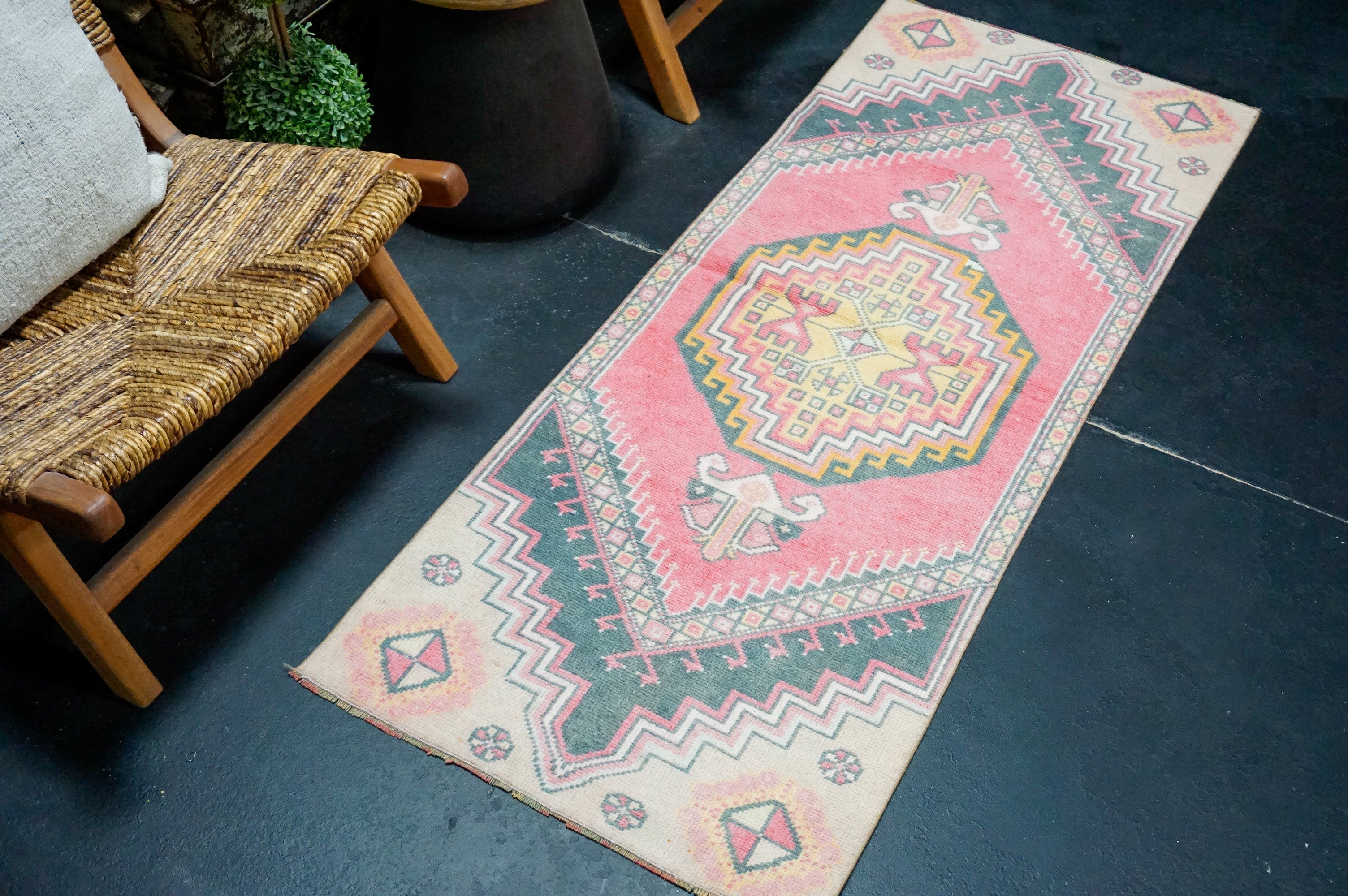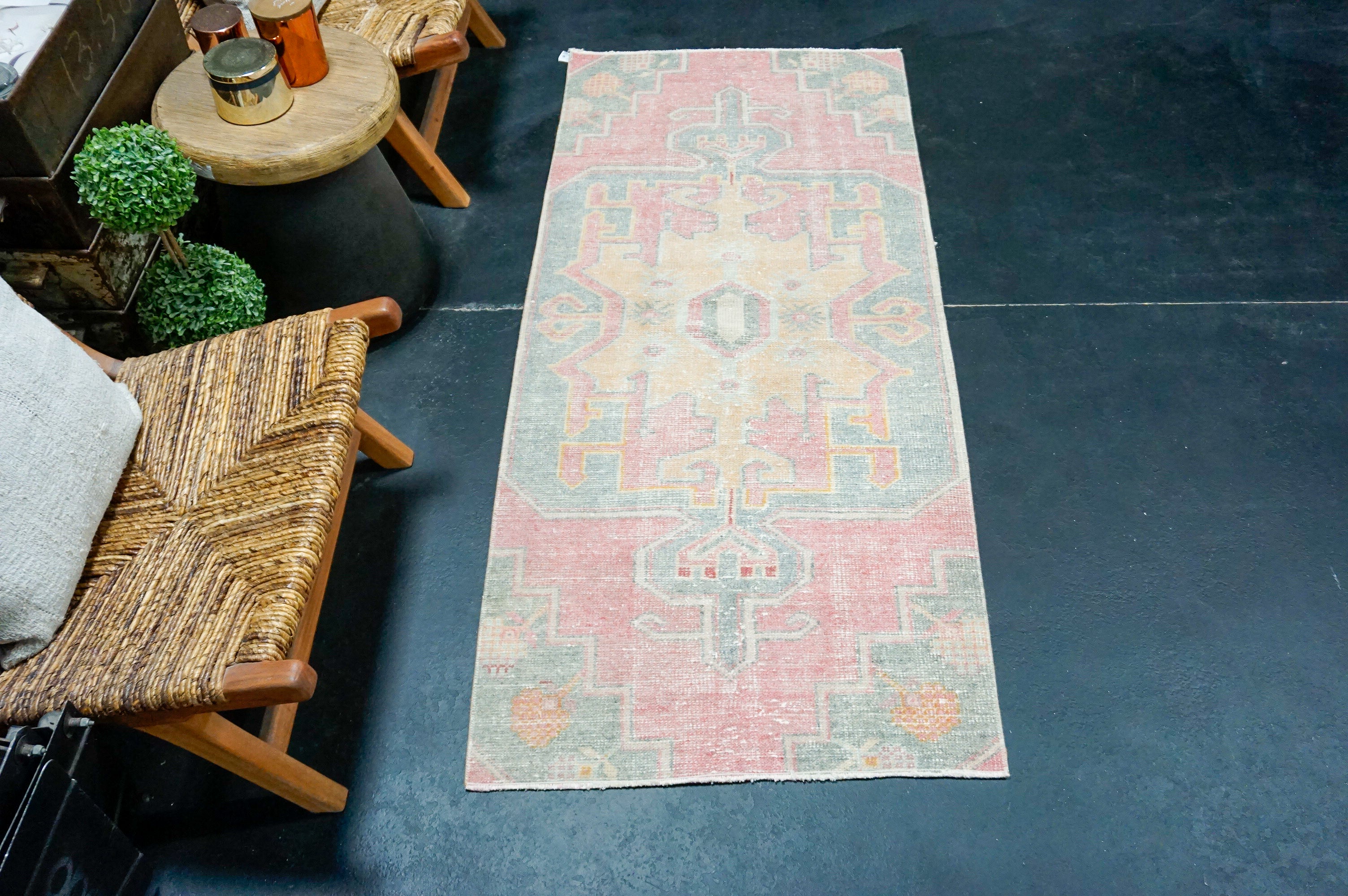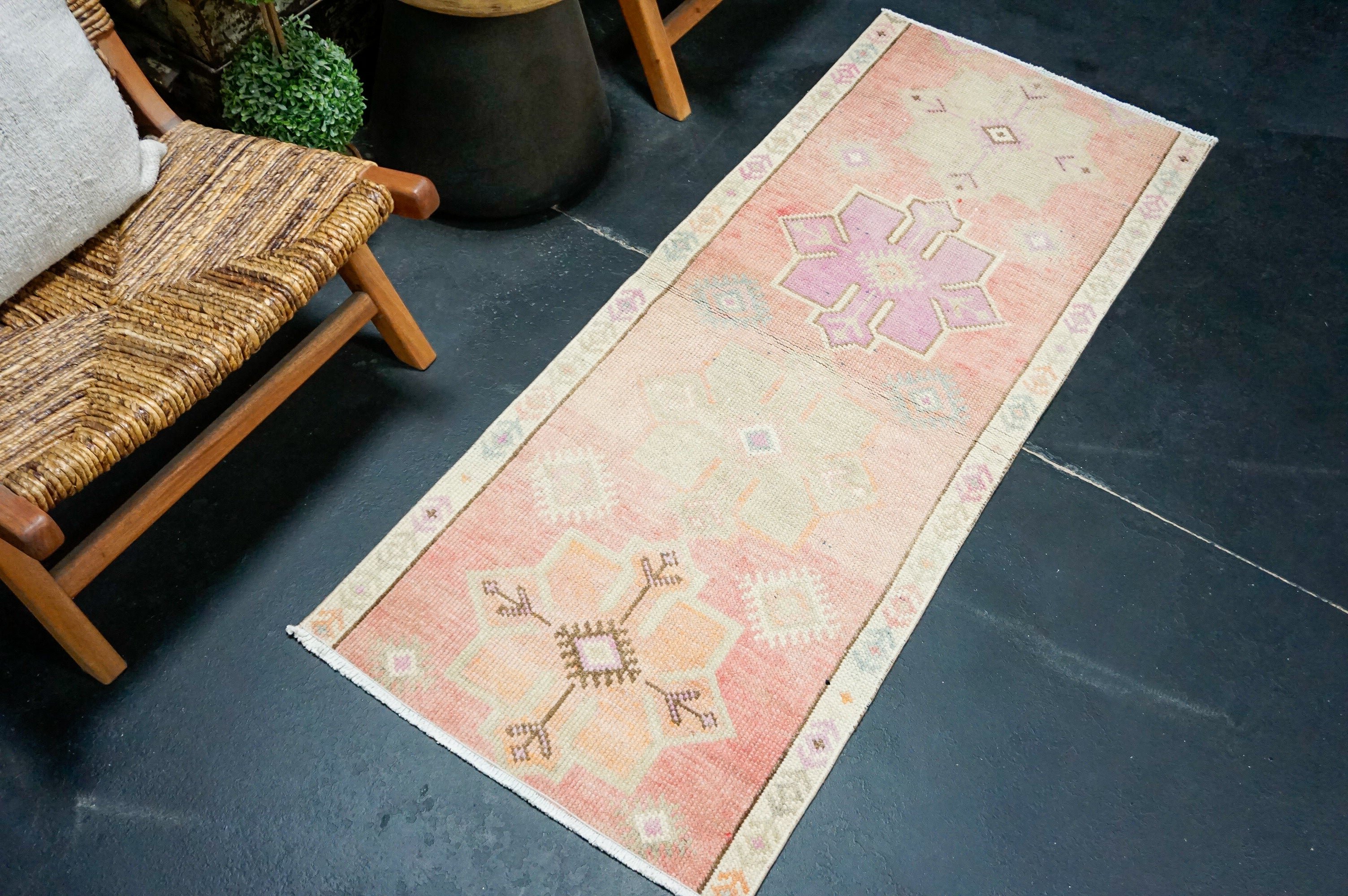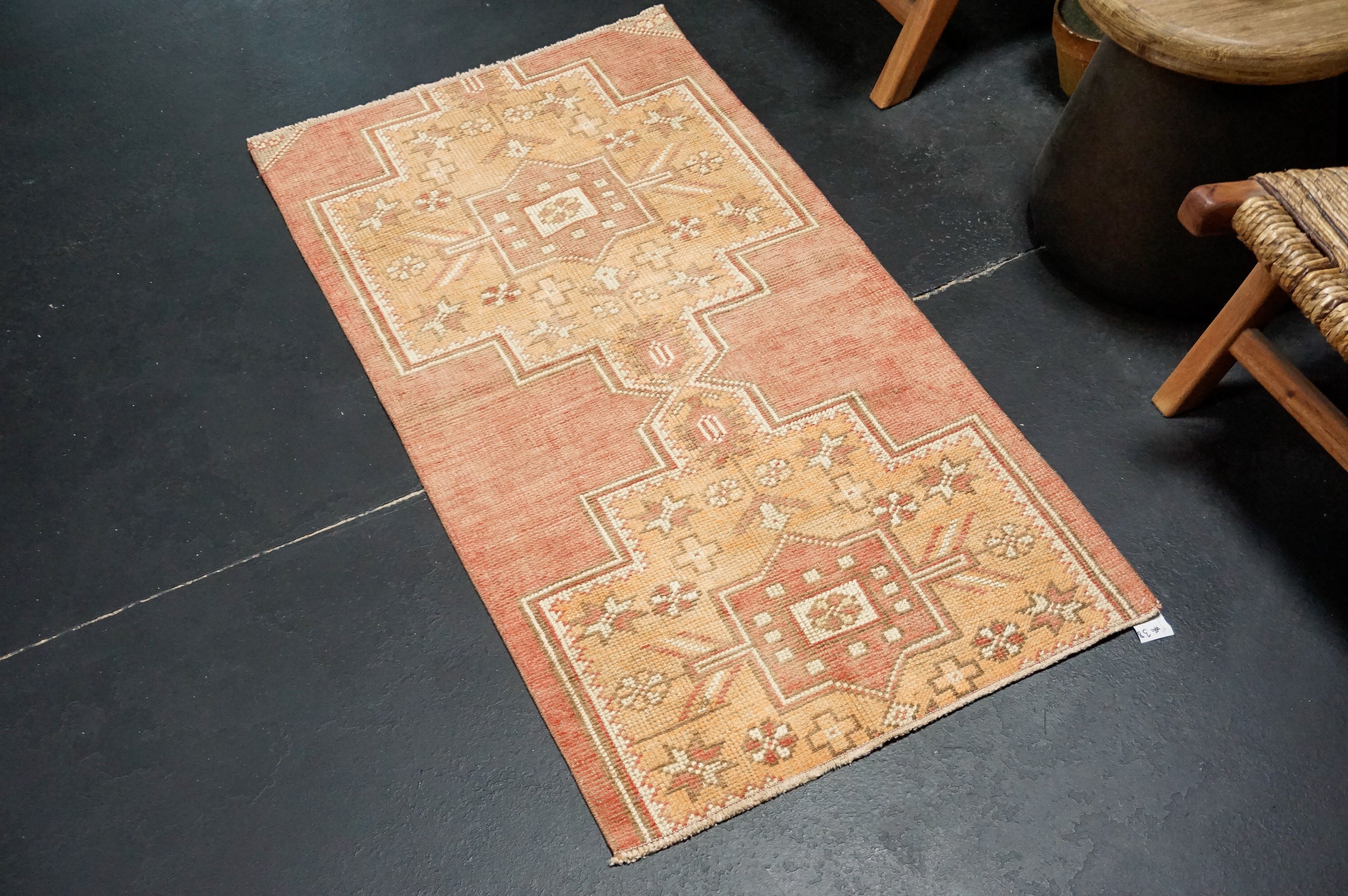 2’3 x 4’3 Vintage Oushak Runner Muted Red, Apricot + Cream '3854