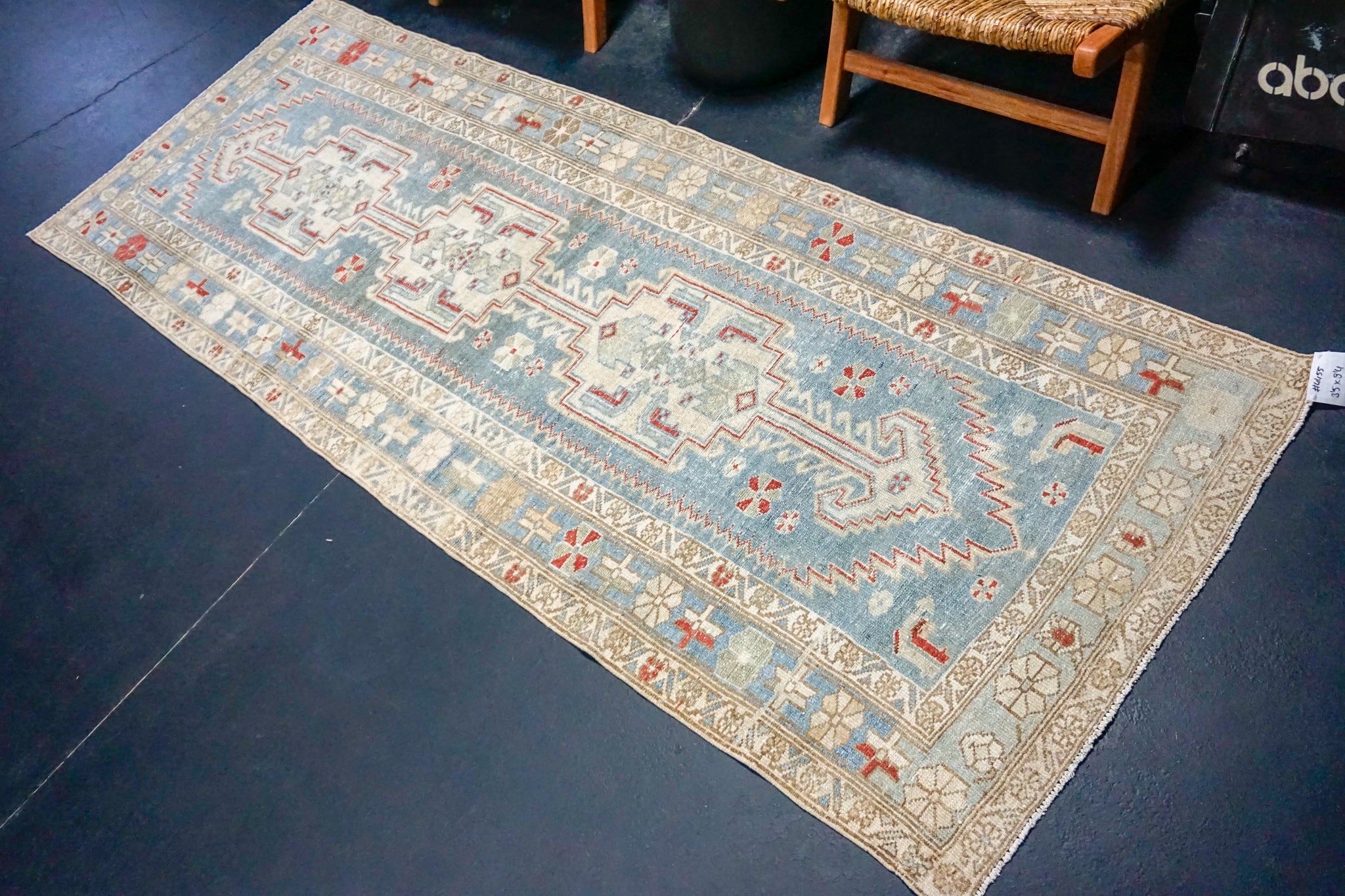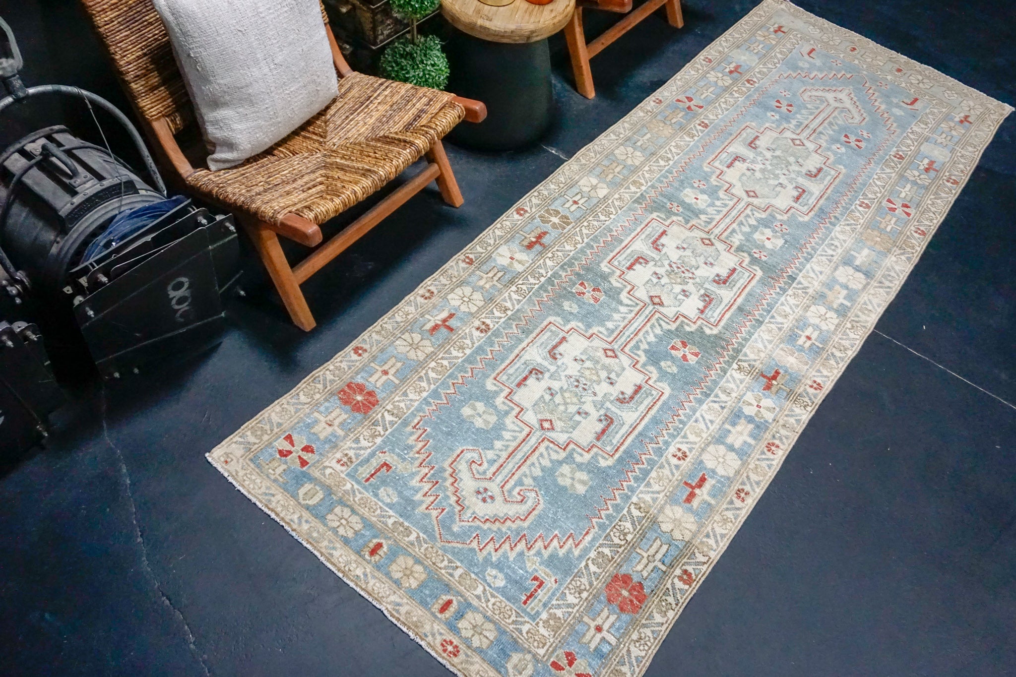 3’ x 12’4 Vintage Turkish Herki Runner Red, Beige & Blue '4157