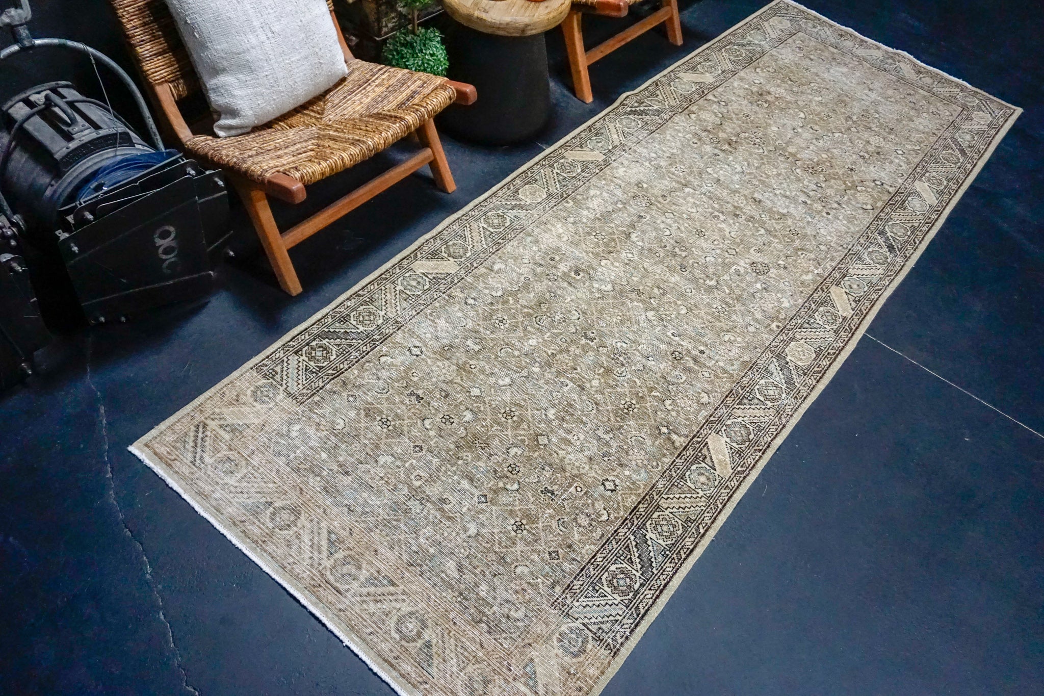 3’2 x 10’9 Antique Runner Muted Gray, Sage, Wine + Brown '4357