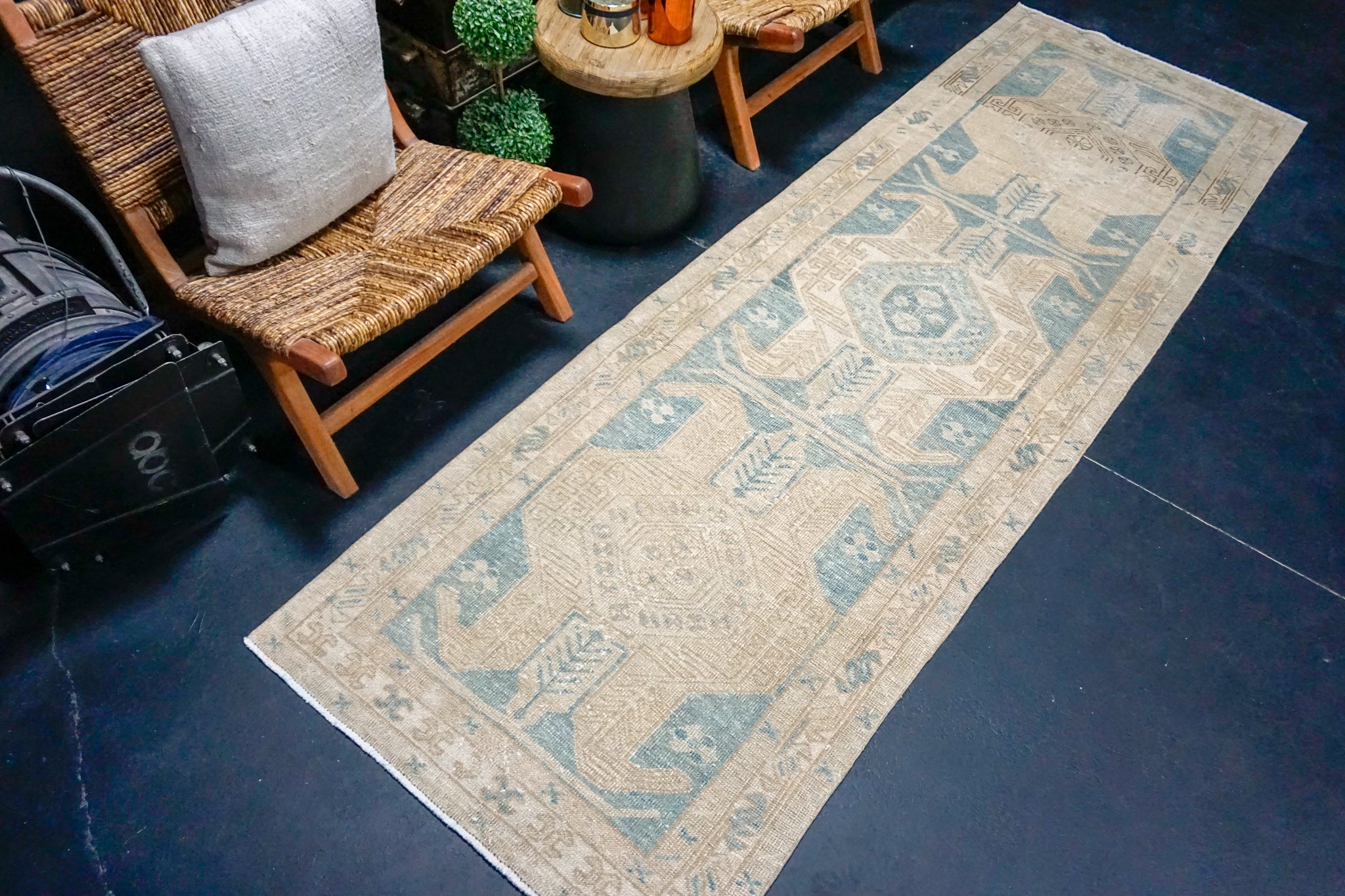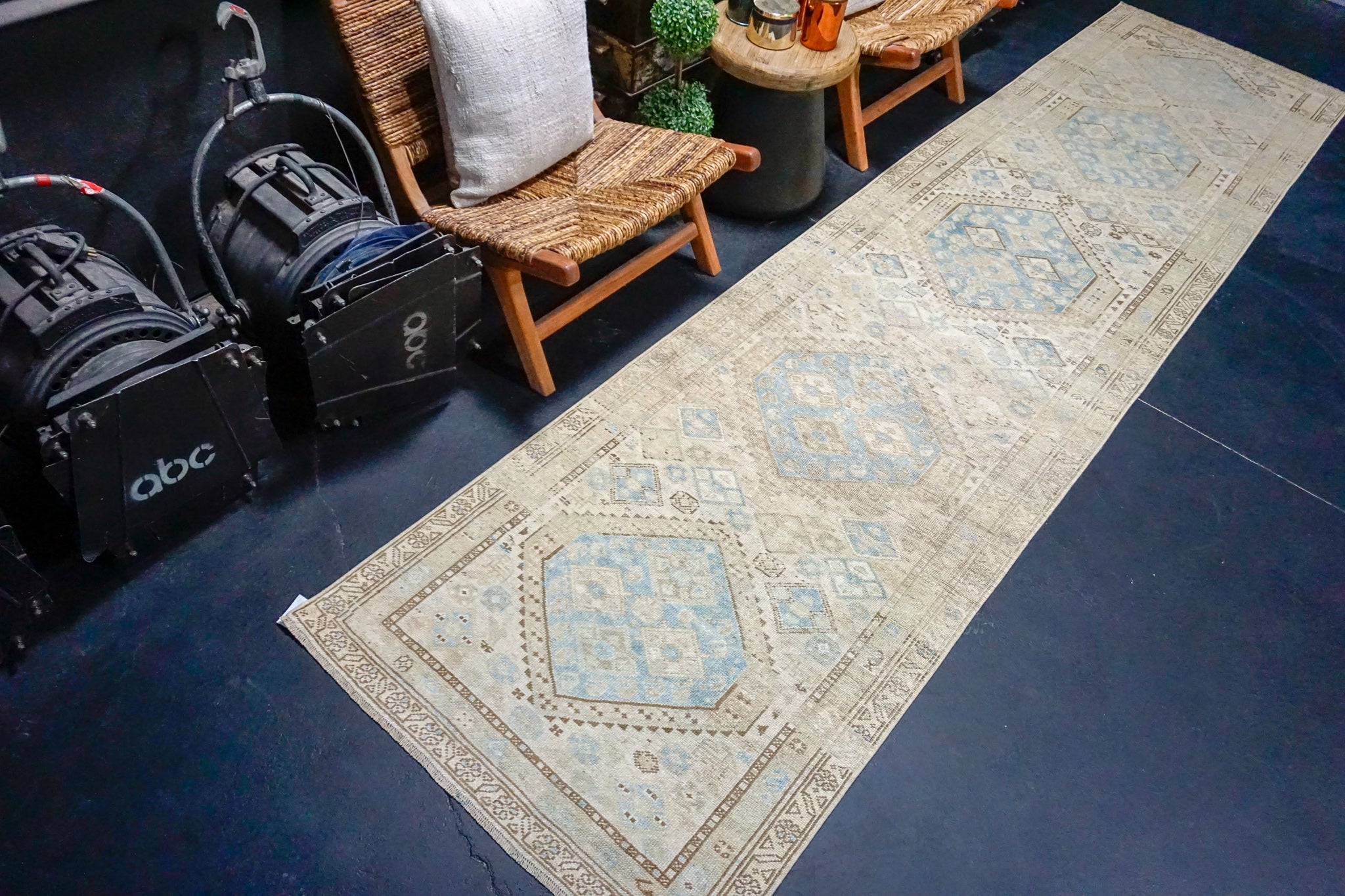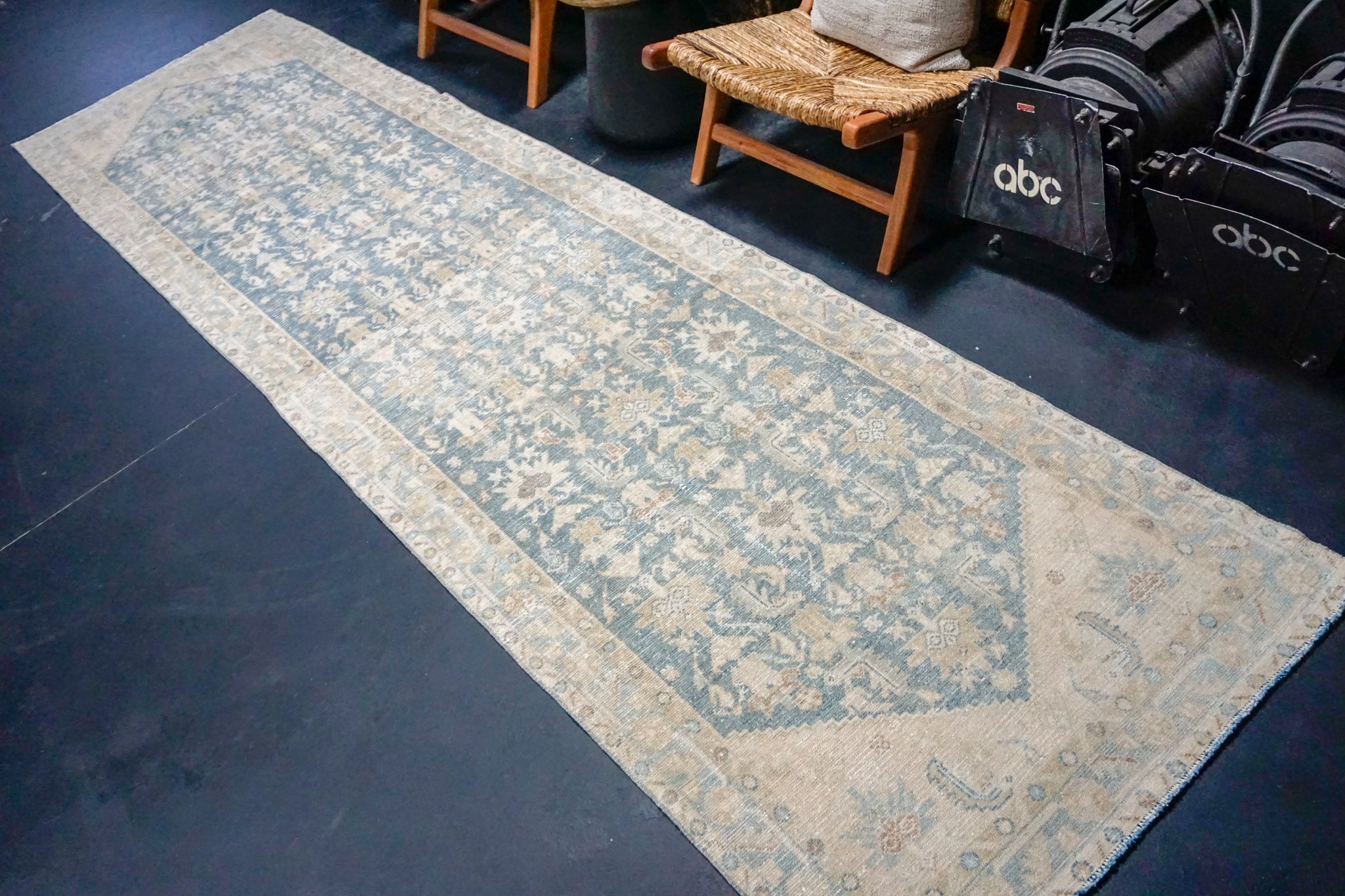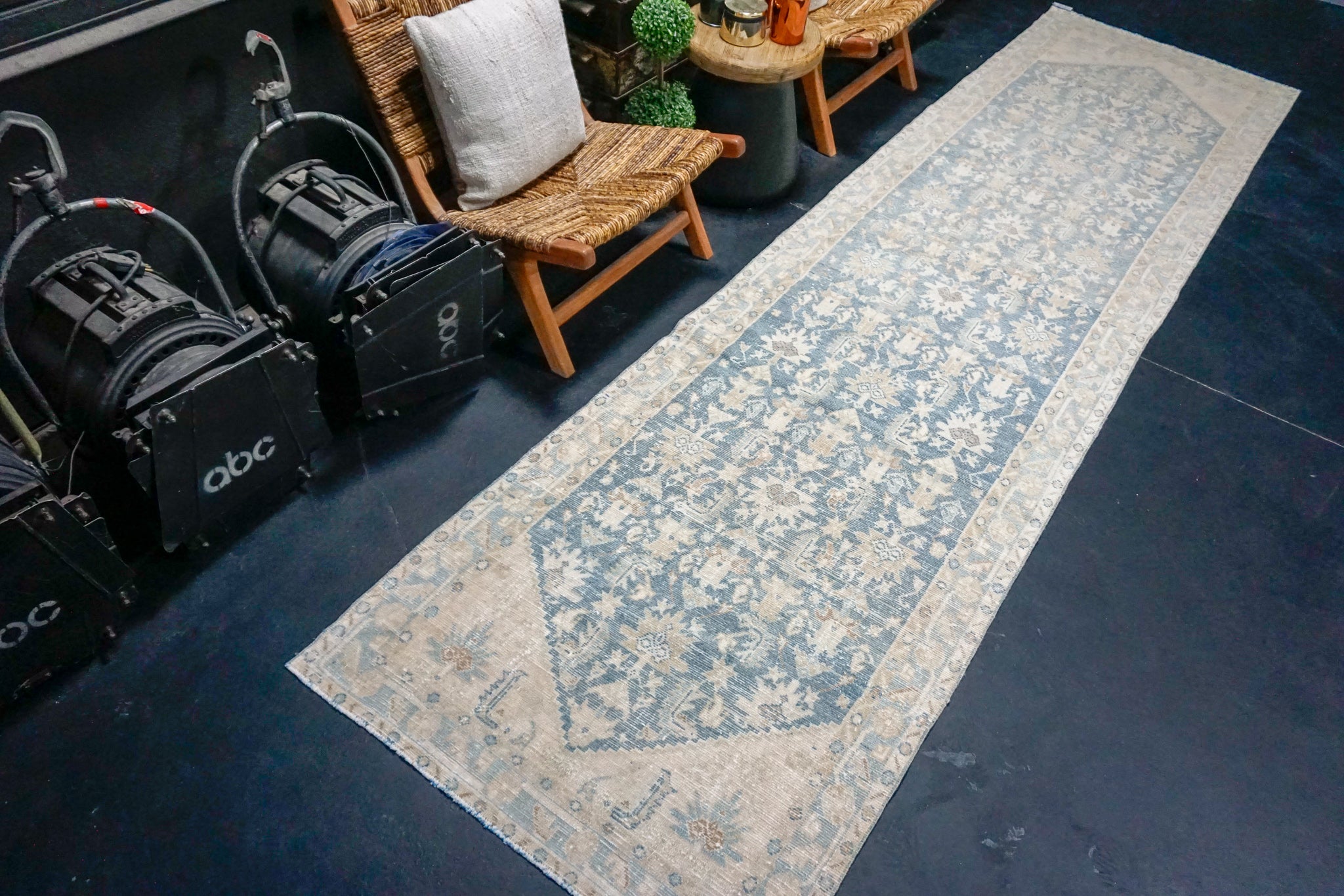 3’ x 13’ Classic Vintage Persian Runner Muted Denim + Beige SB '4292