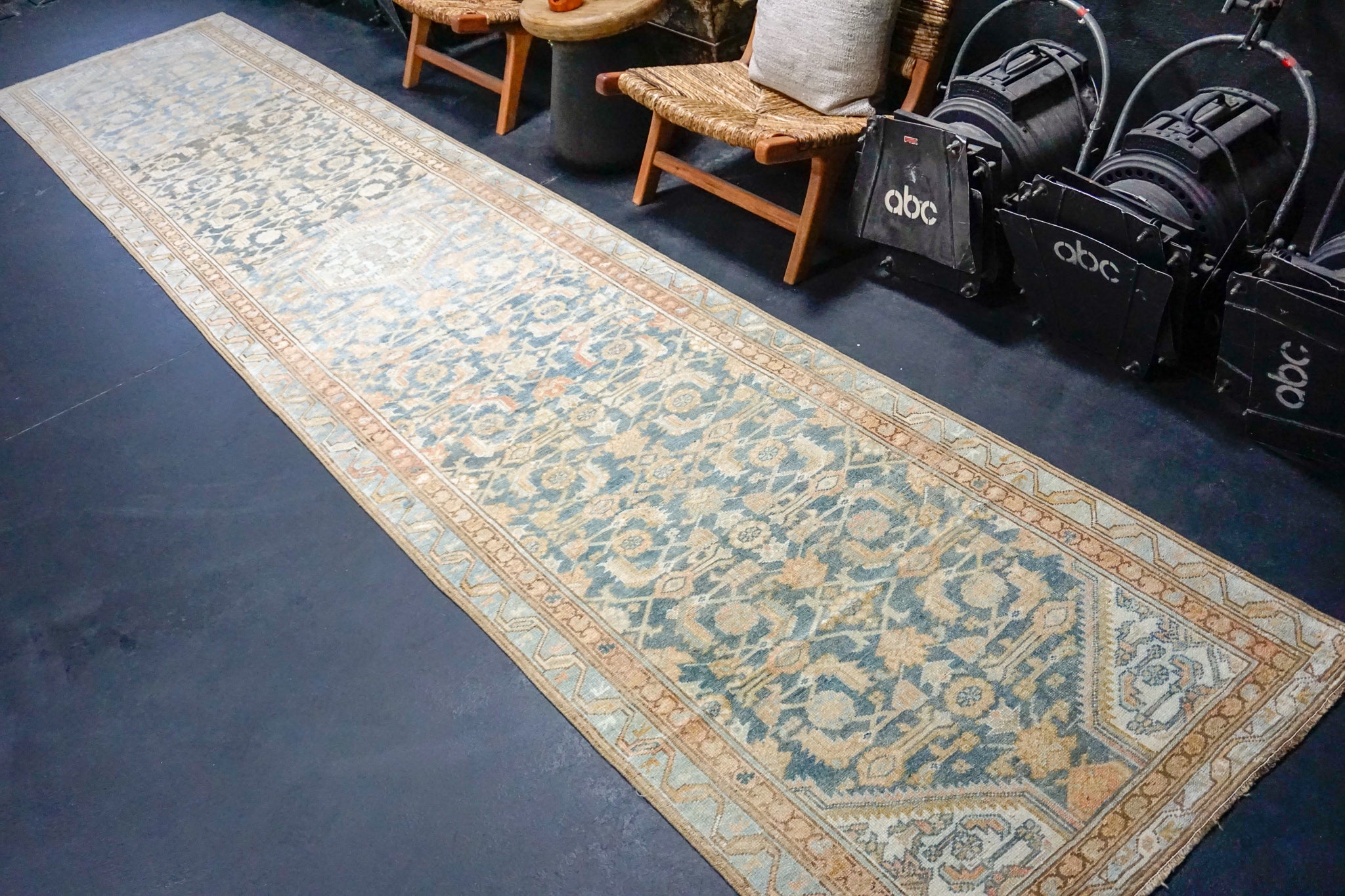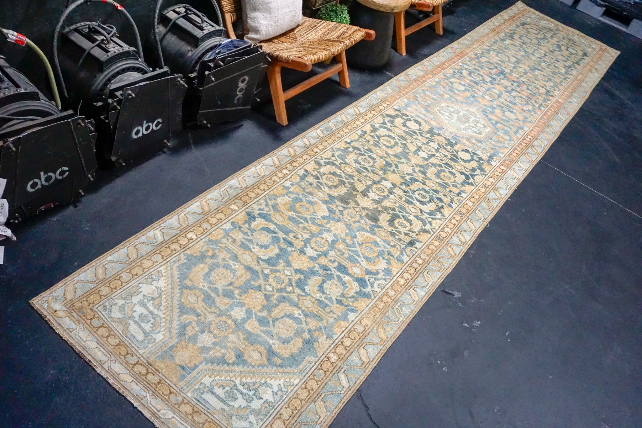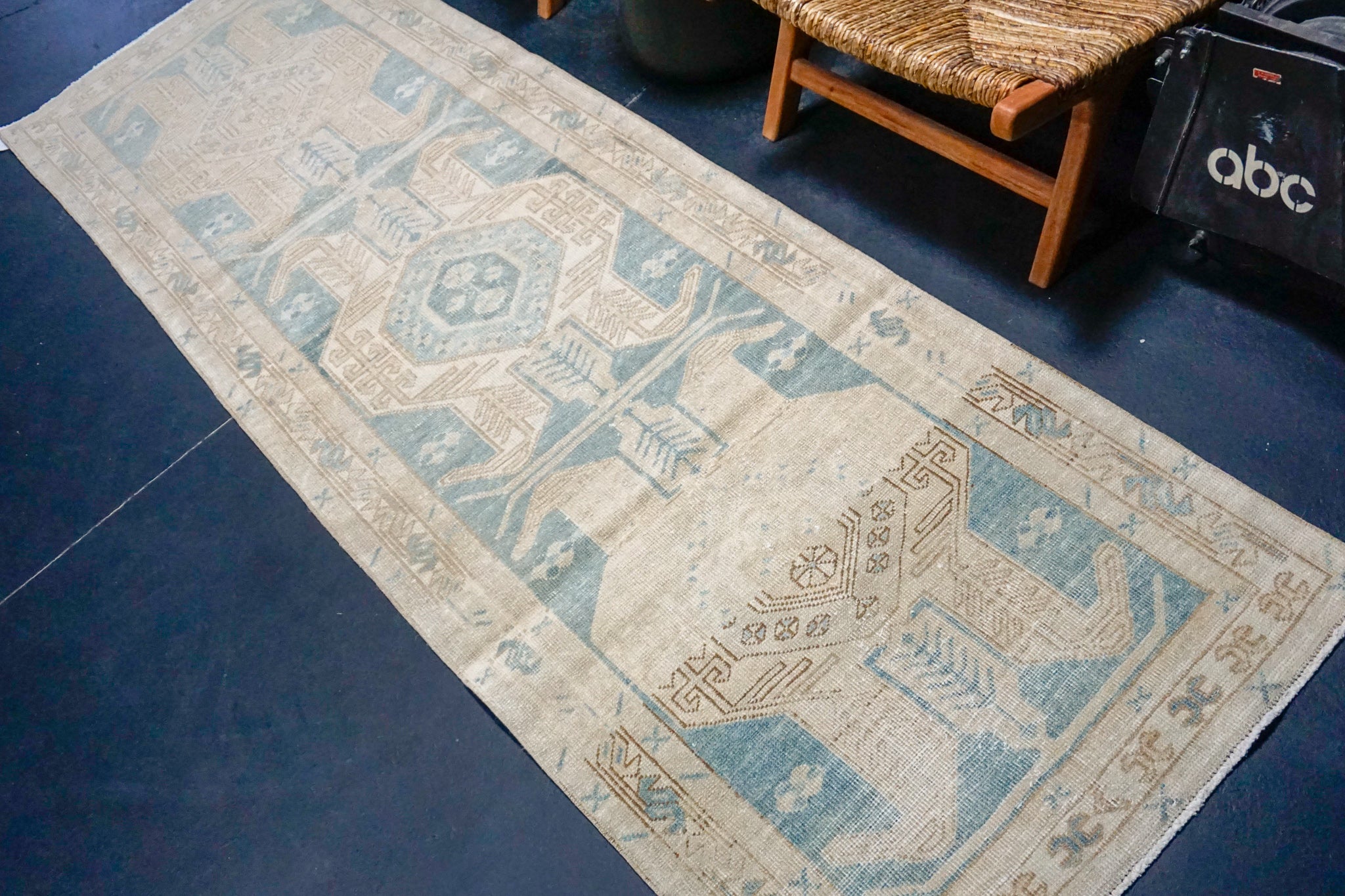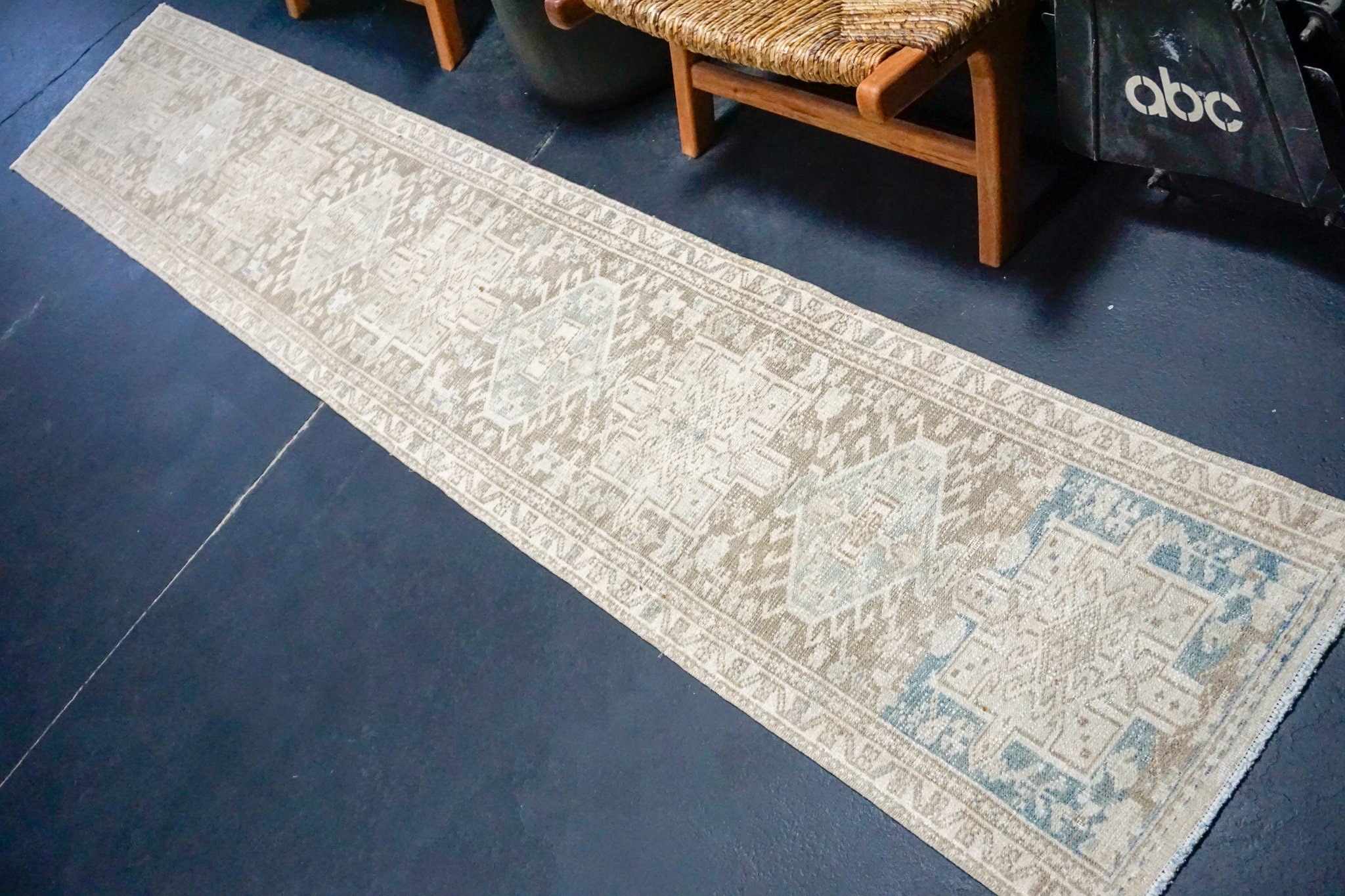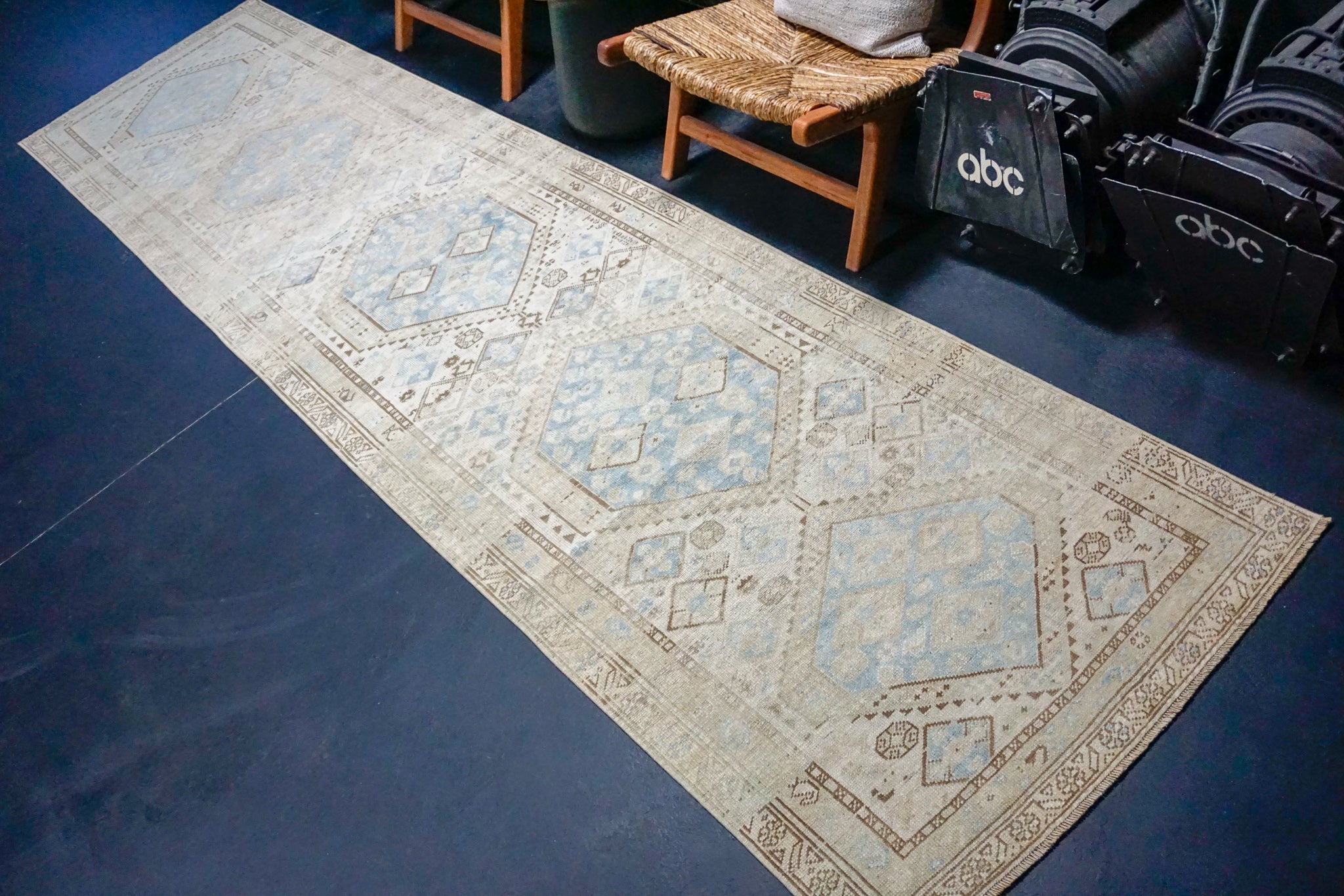3’ x 13’ Classic Vintage Persian Runner Muted Denim + Beige SB '4292