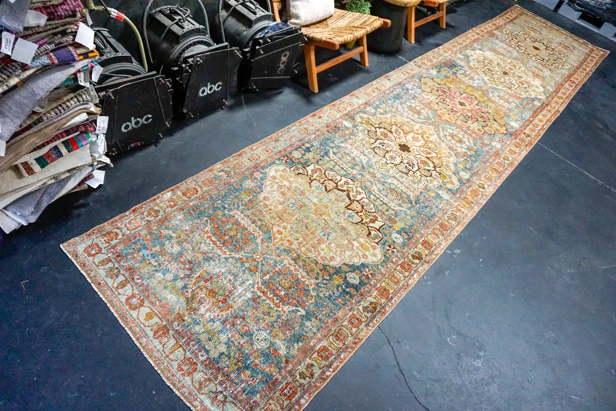 3’9 x 17’6 Classic Antique Runner Muted Blue, Rust, Olive + Gray '4501