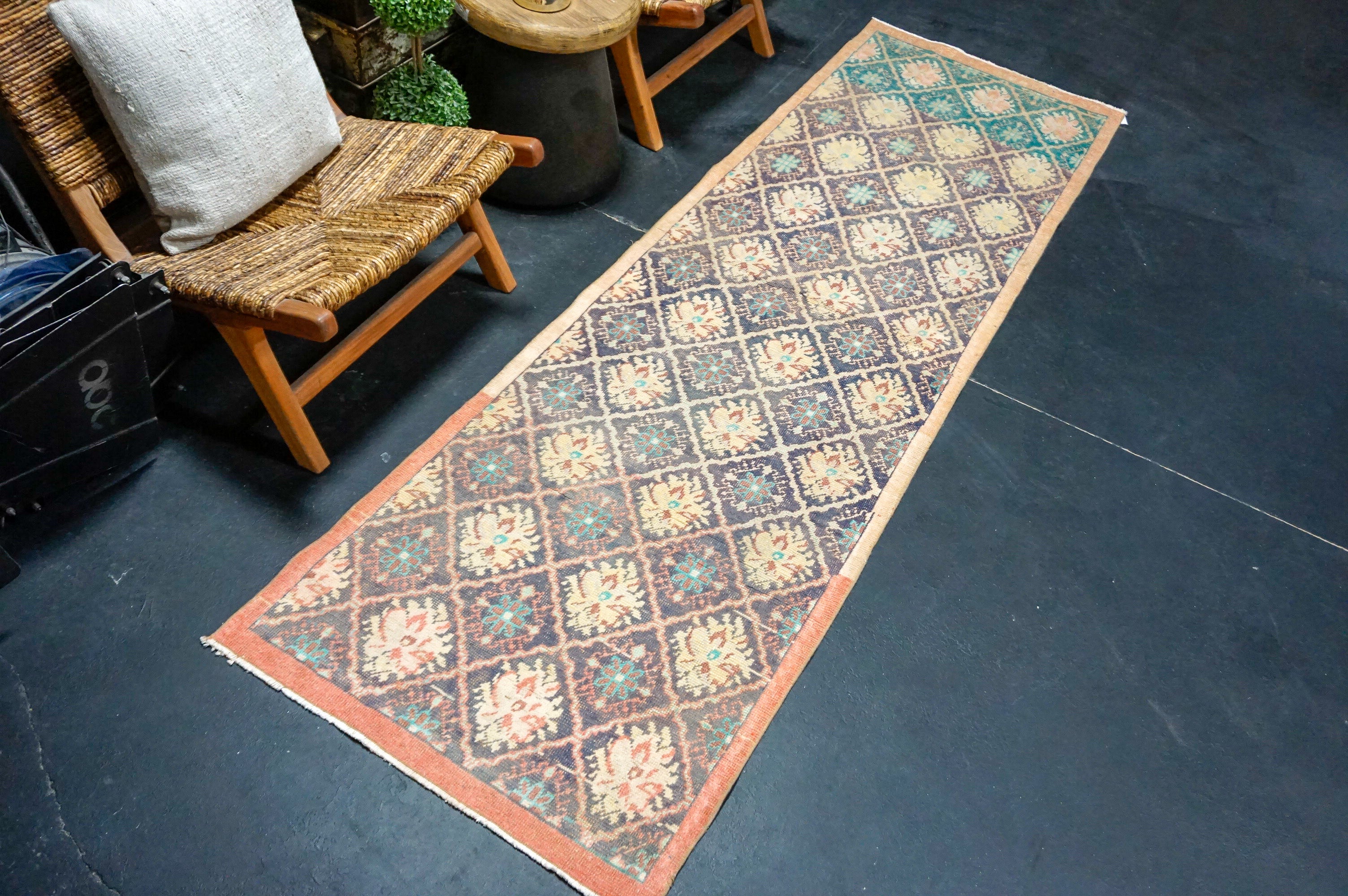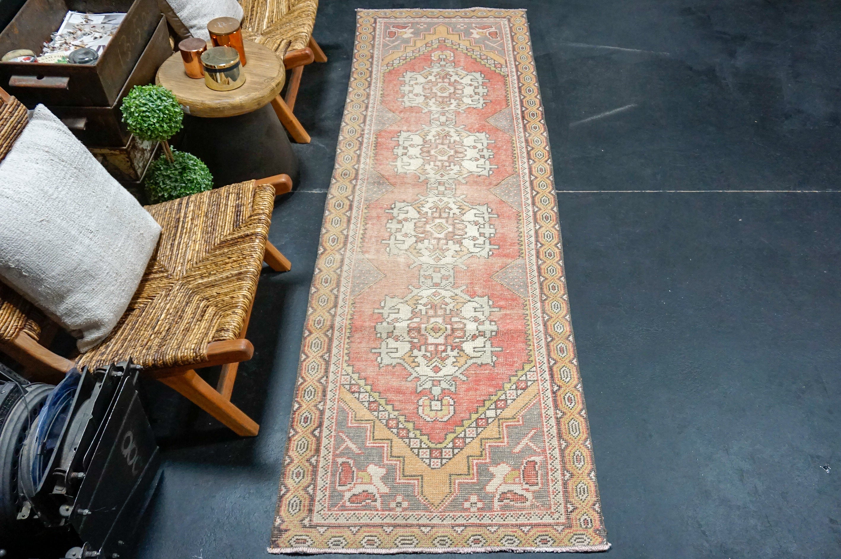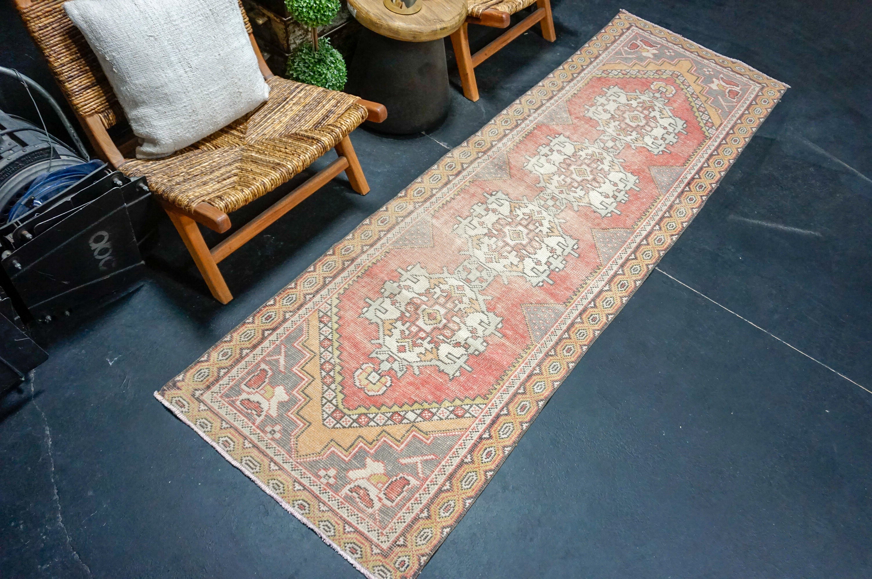 2’9 x 9’ Vintage Oushak Runner Muted Red, Apricot & Gray '4153