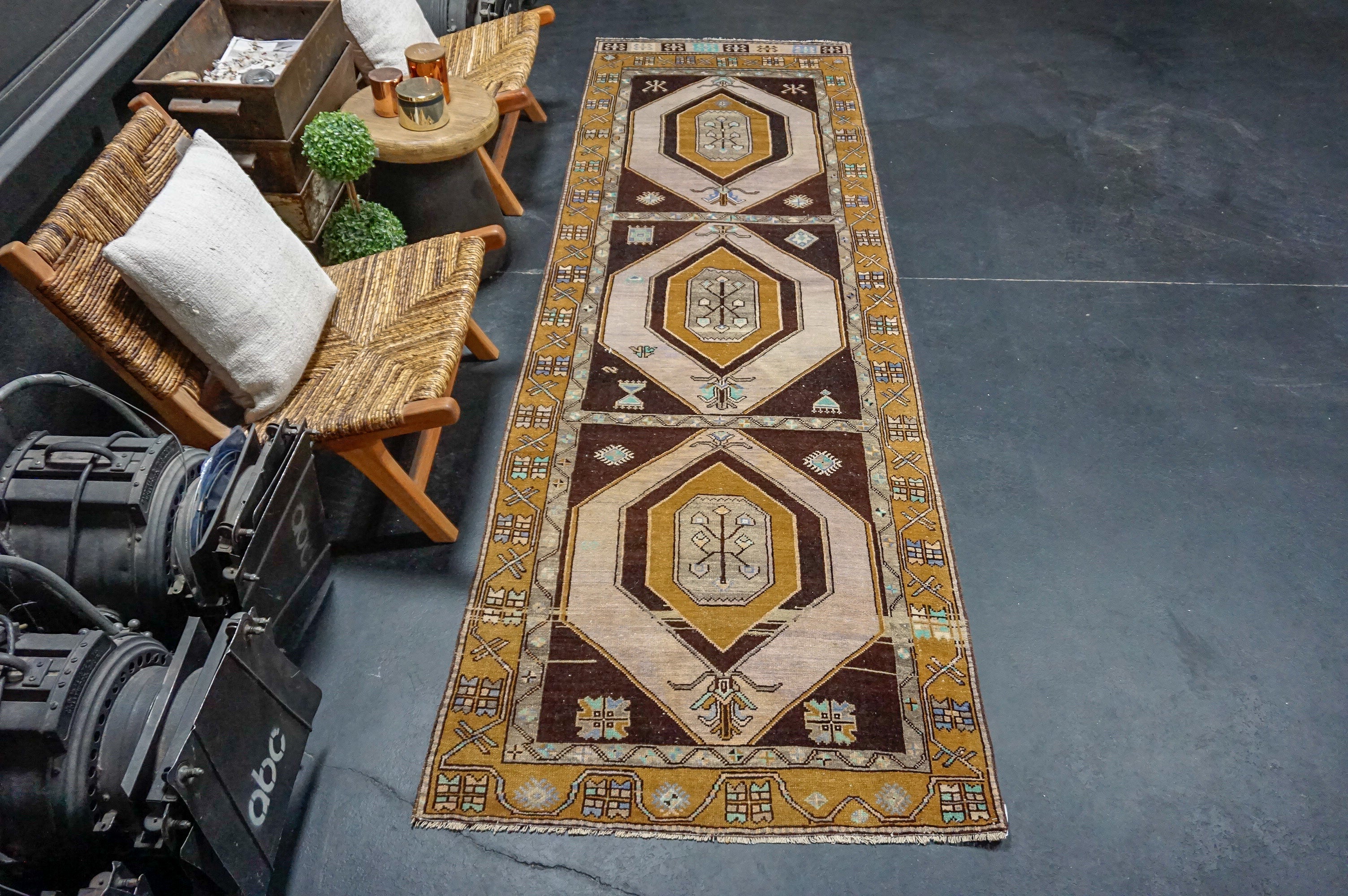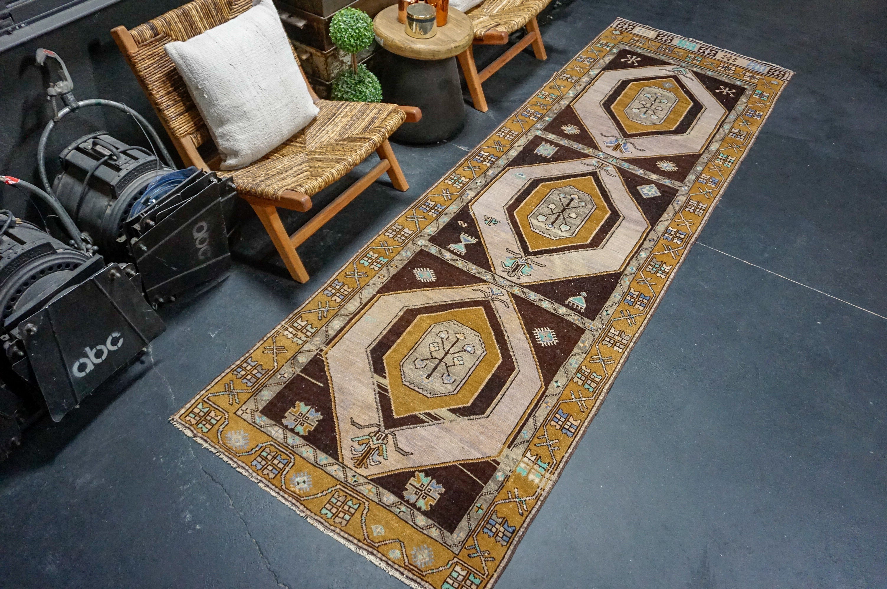3’9 x 10’6 Classic Vintage Runner Muted Camel Beige & Brown SB '4484