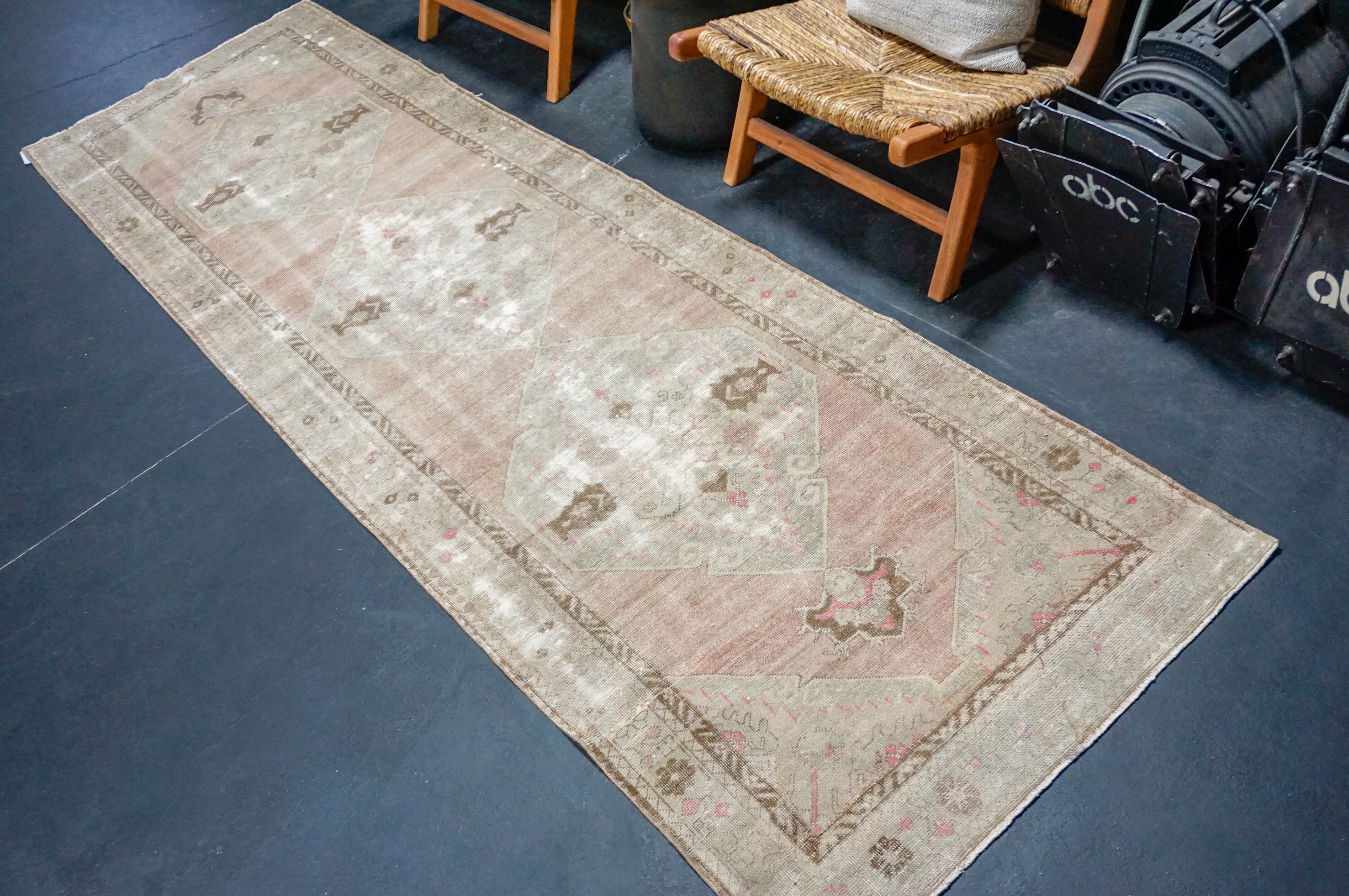 4’3 x 10’ Vintage Oushak Rug Muted Pink, Taupe + Bronze SB '4193