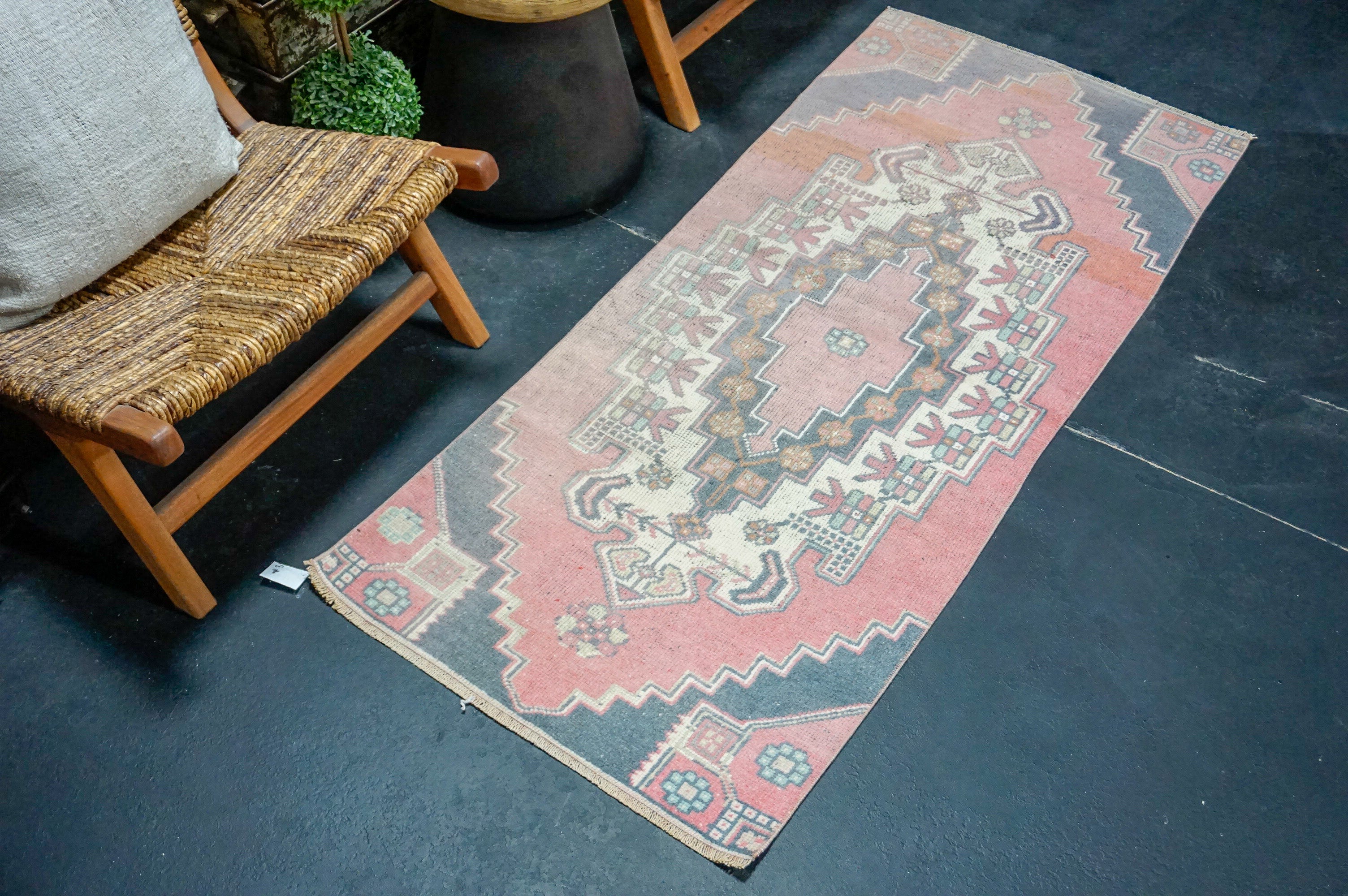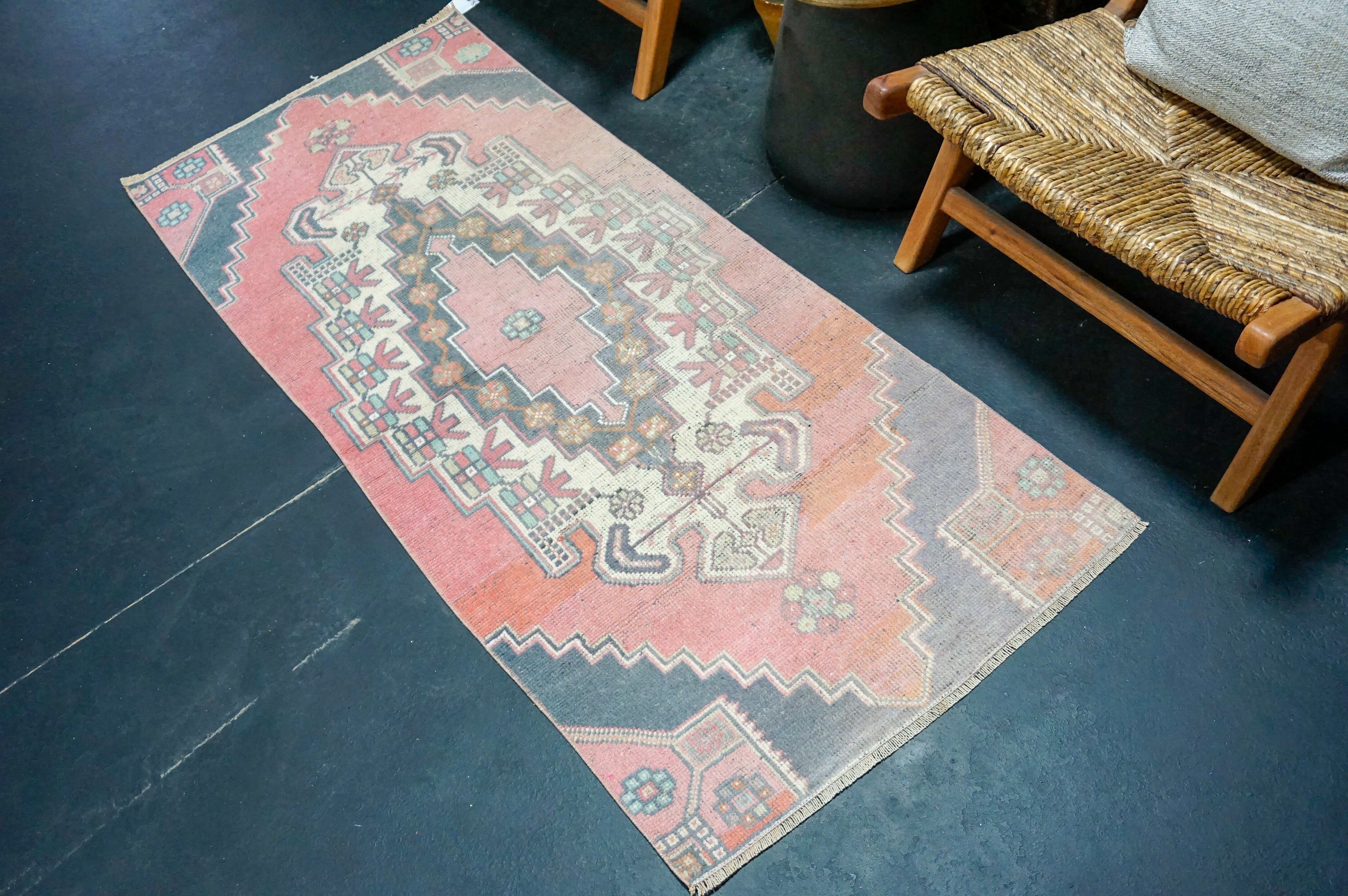 2’6 x 5’7 Vintage Oushak Runner Watermelon Coral + Gray '3844