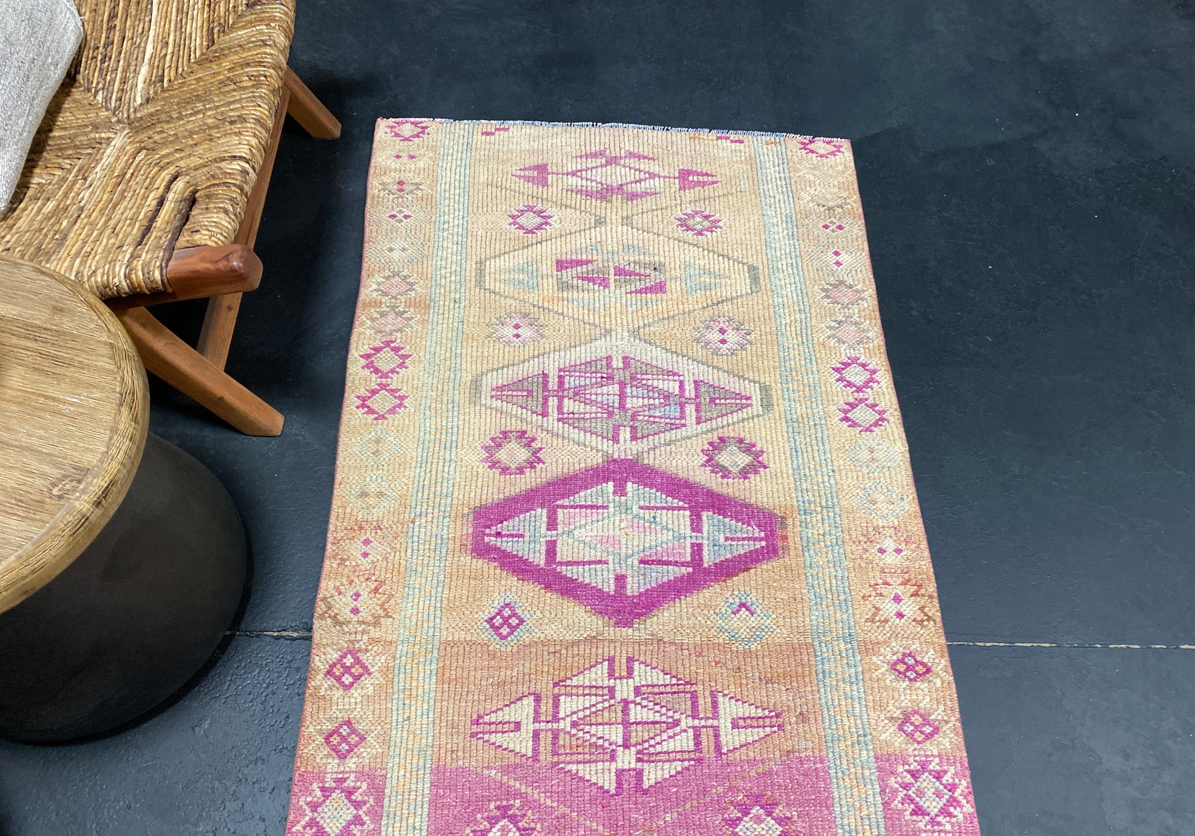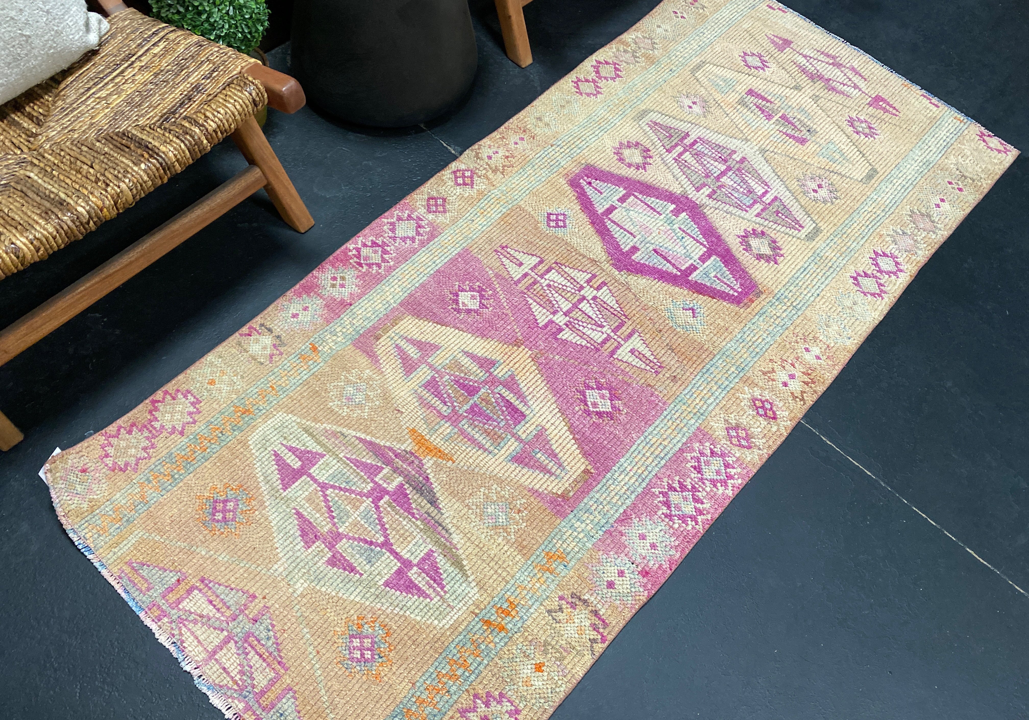 2’10 x 6’4 Vintage Herki Runner Pale Peach & Violet + Gray '4159