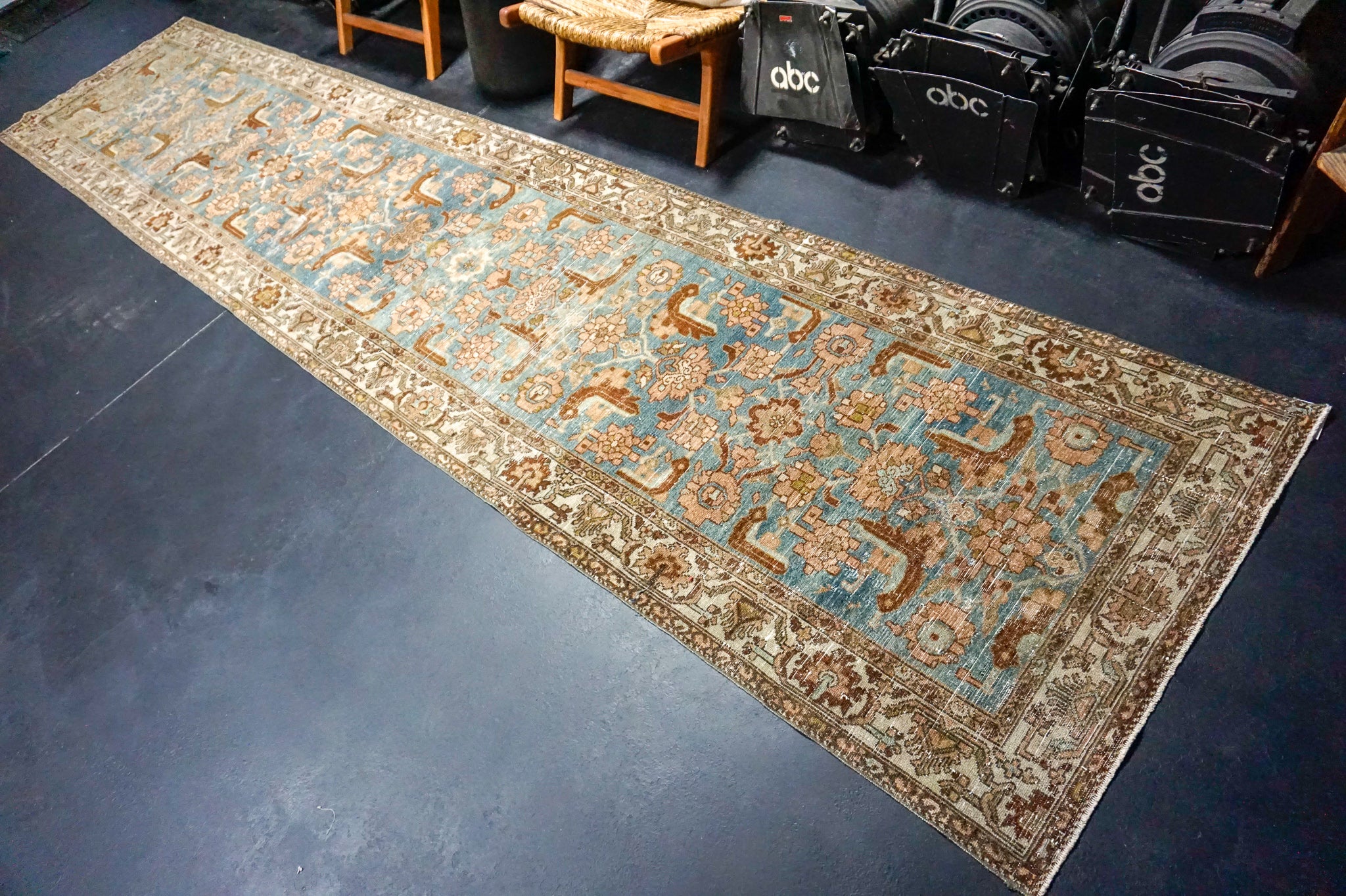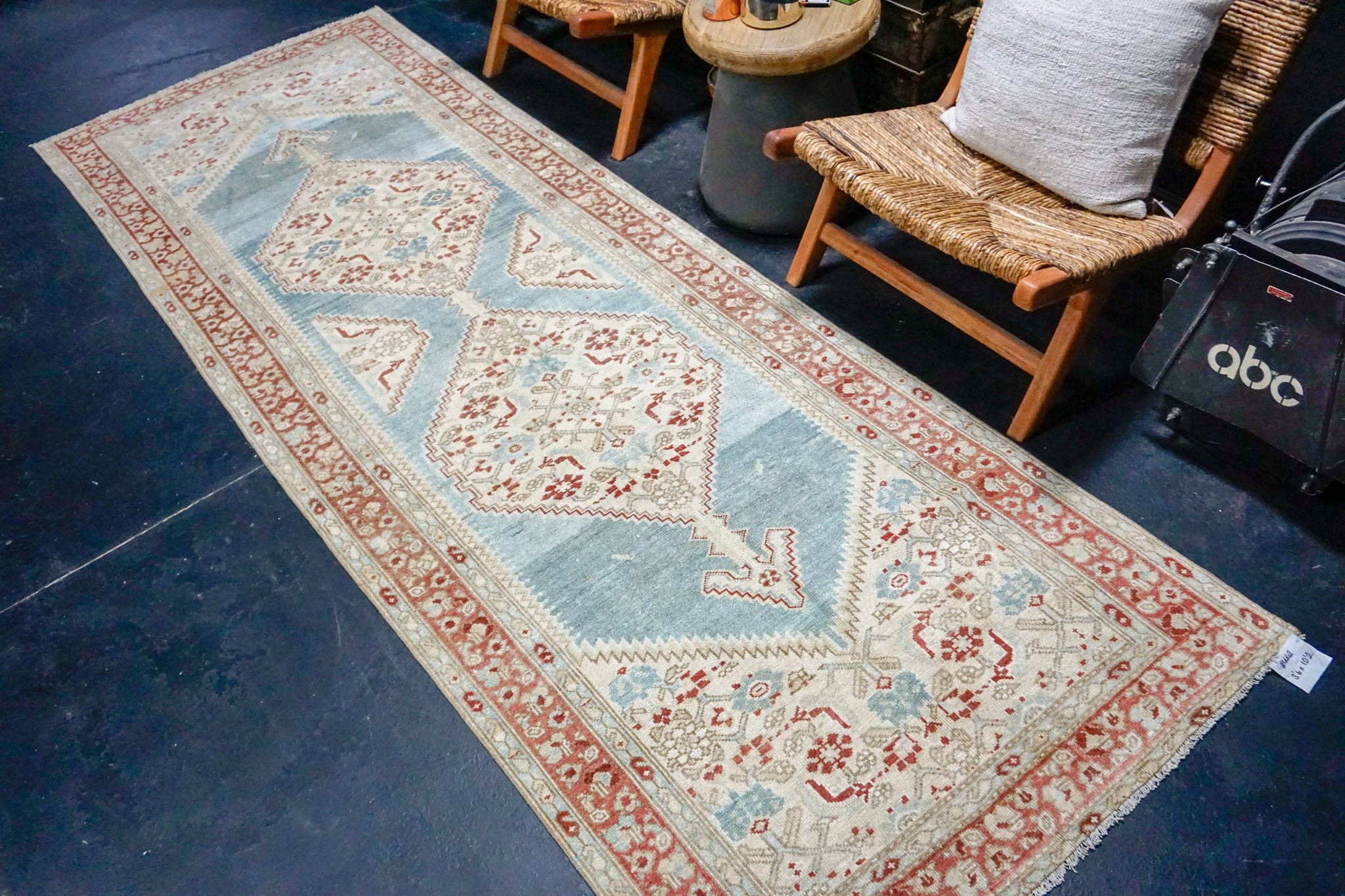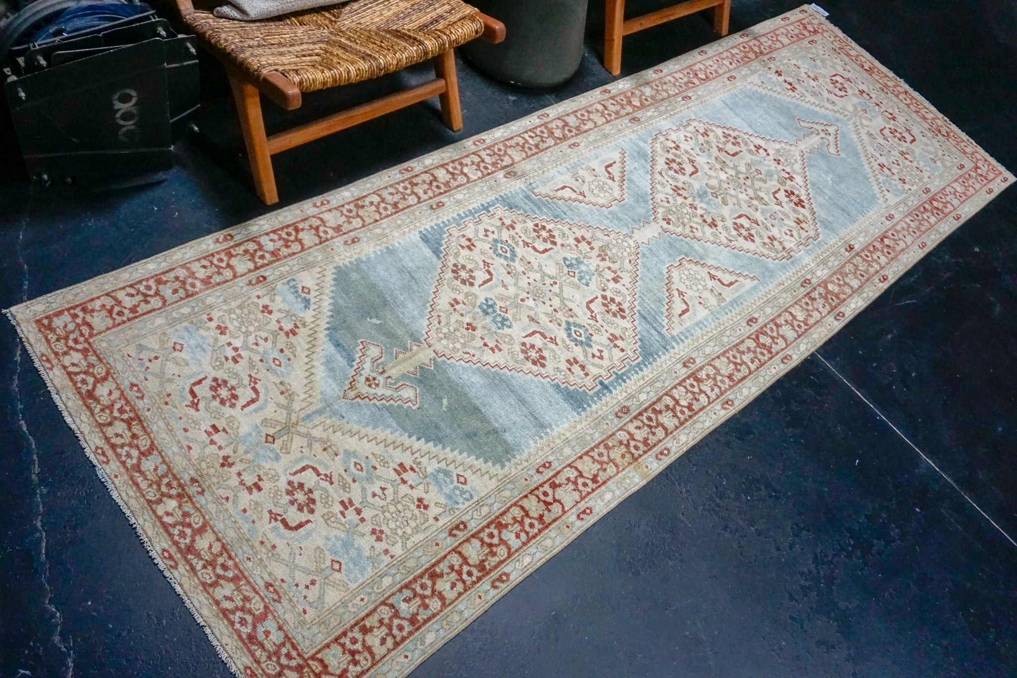 3’ x 10’4 Antique Runner Muted Sky Blue, Ivory + Red '4200