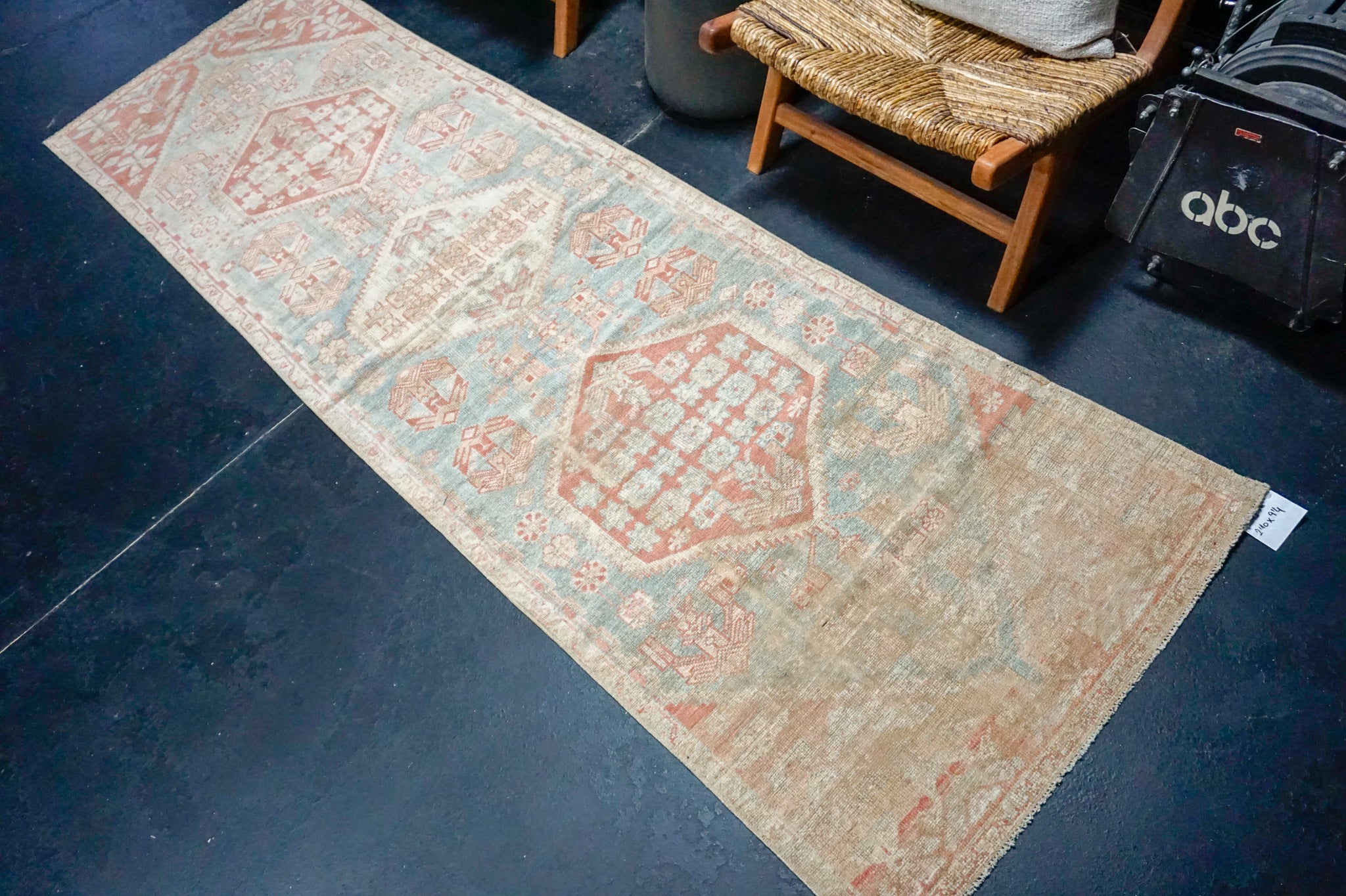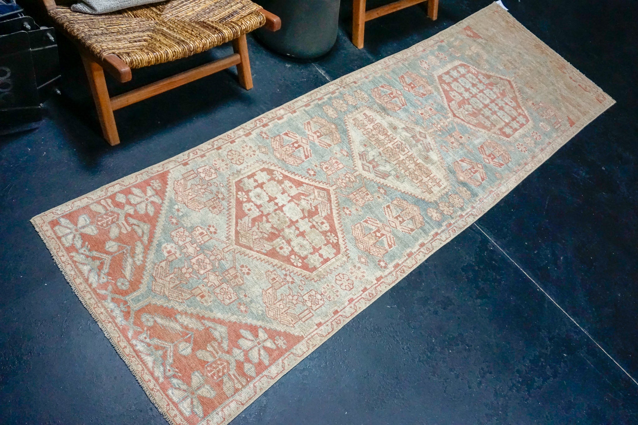3’3 x 9’4 Antique Classic Runner Muted Light Denim, Salmon + Bone SB '4356