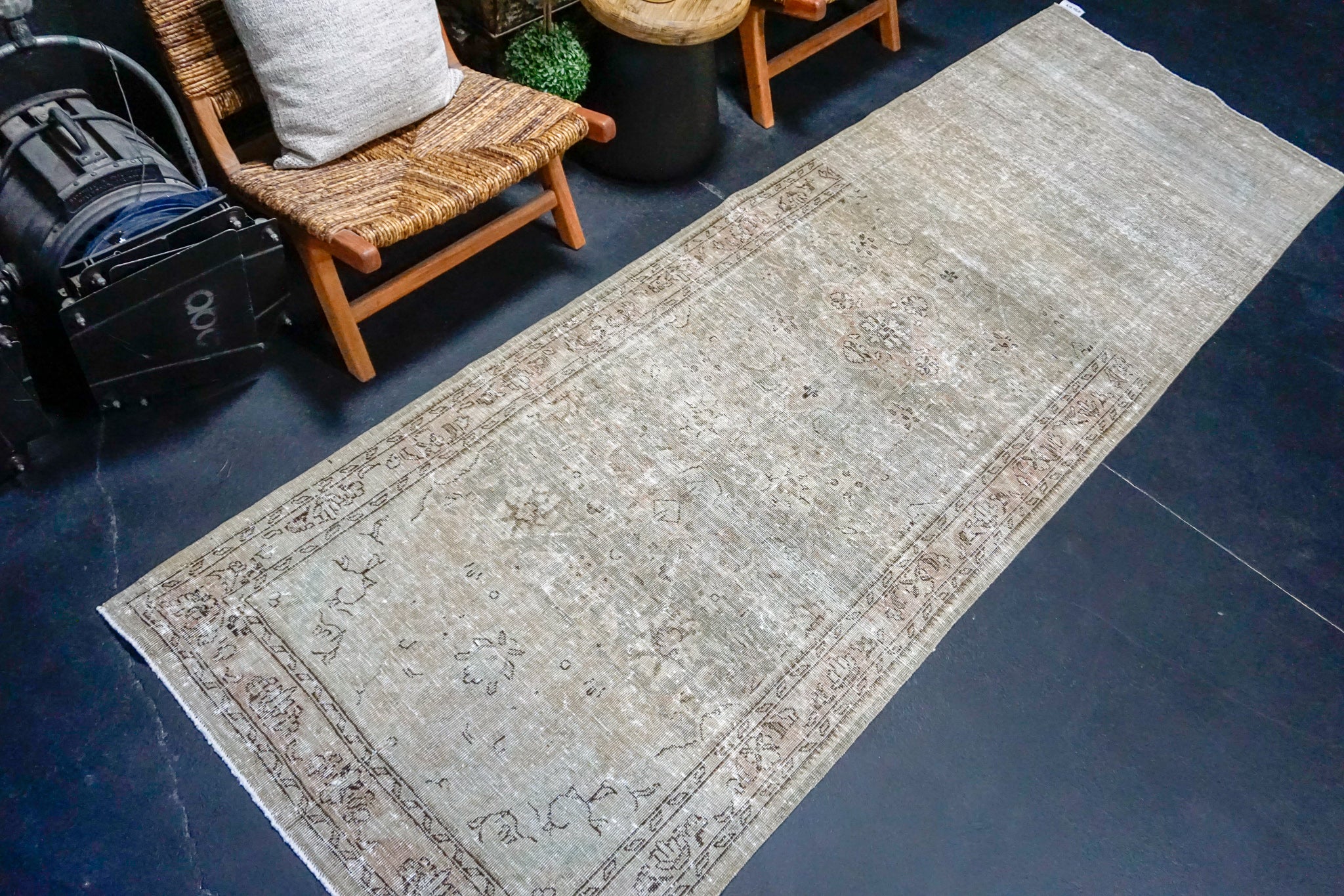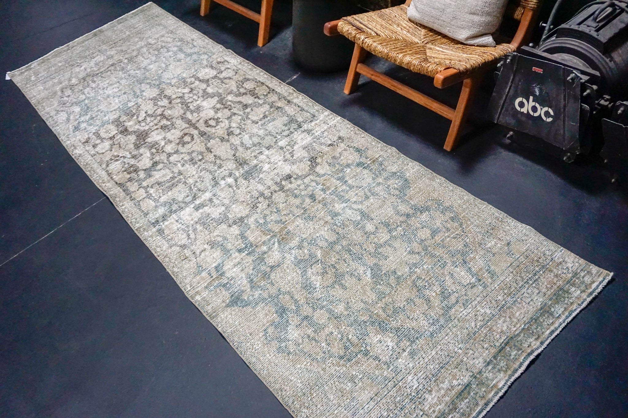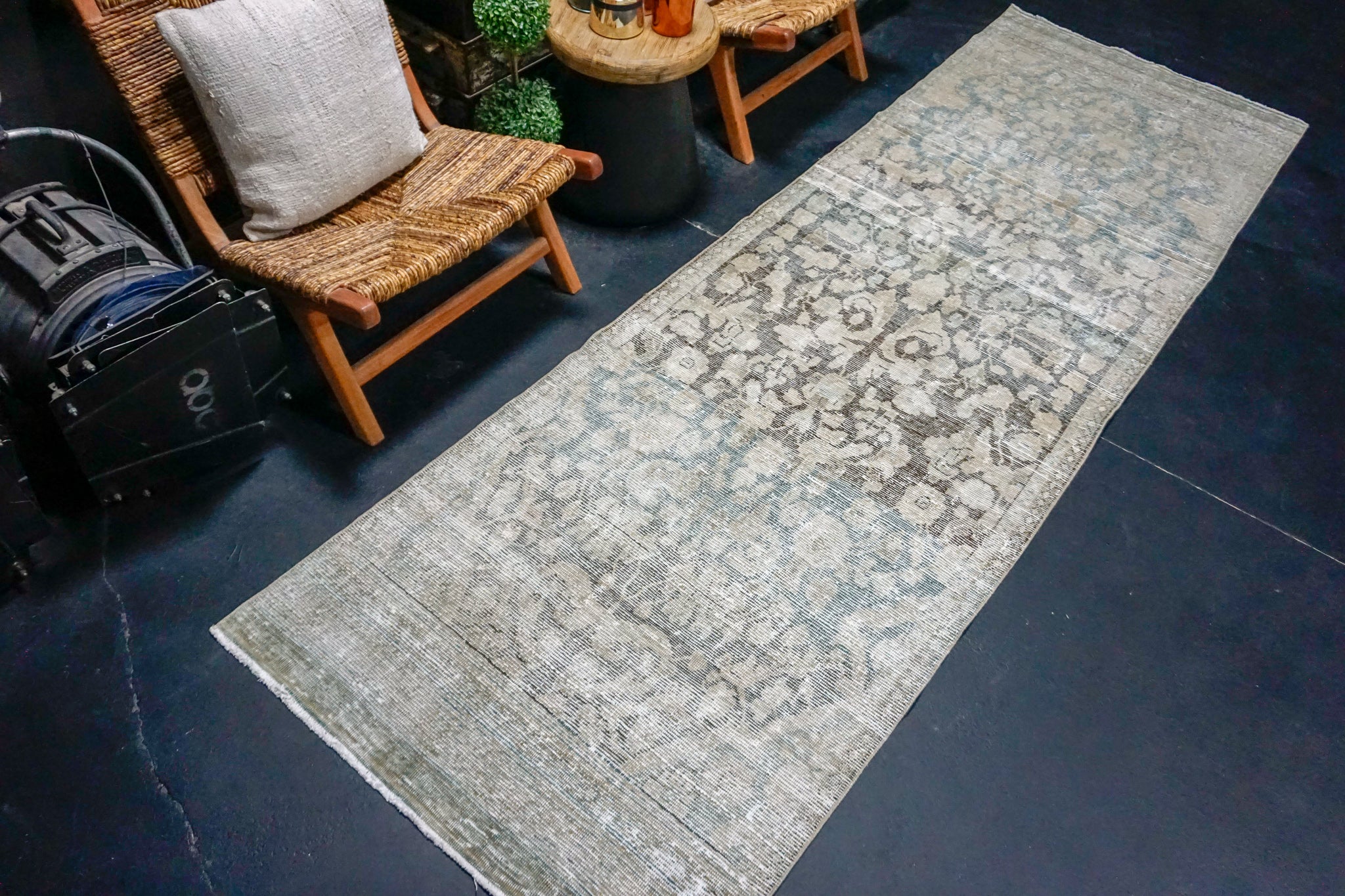 3’4 x 9’8 Classic Vintage Runner Muted Greige and Turquoise SB '4483