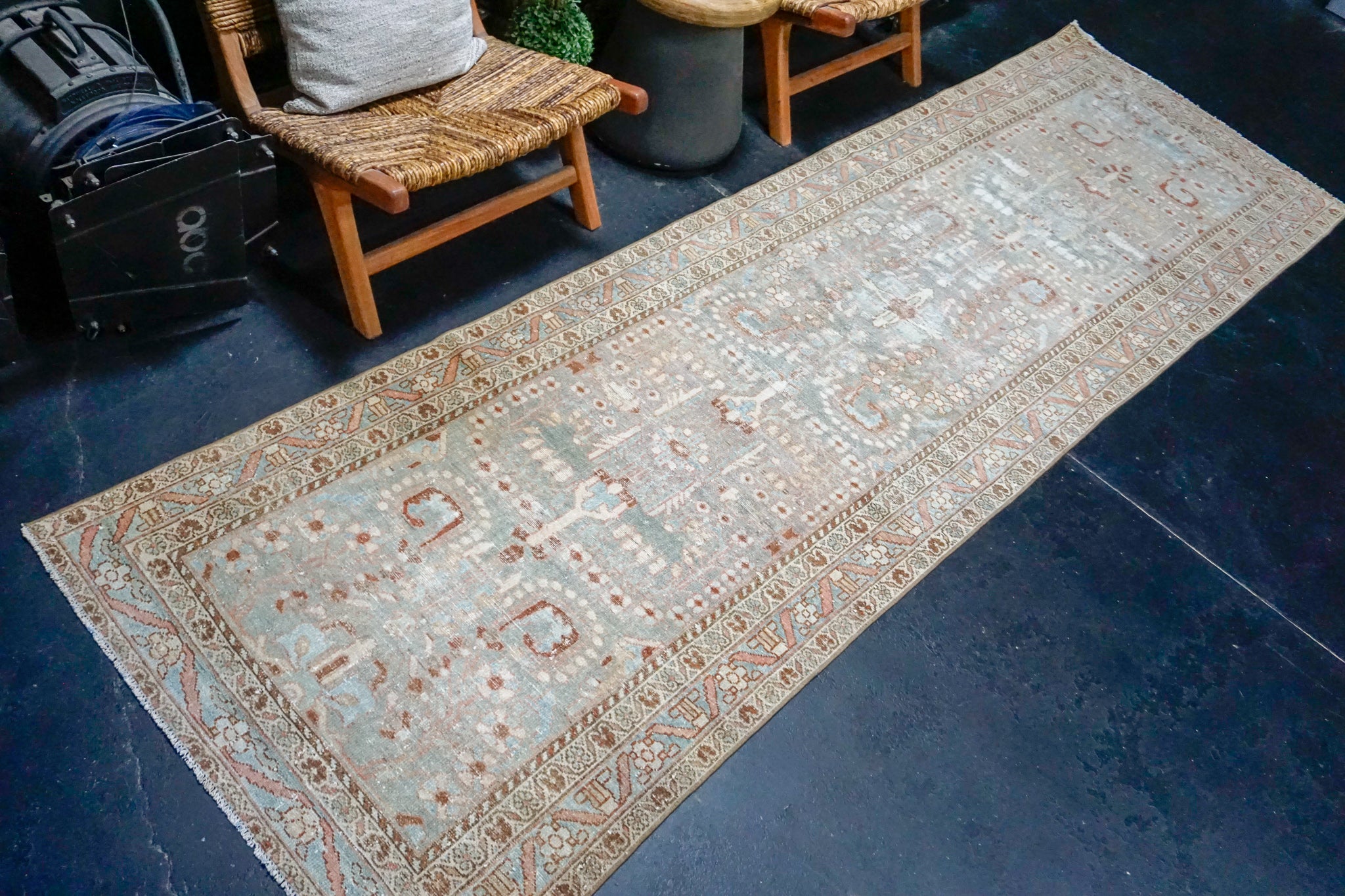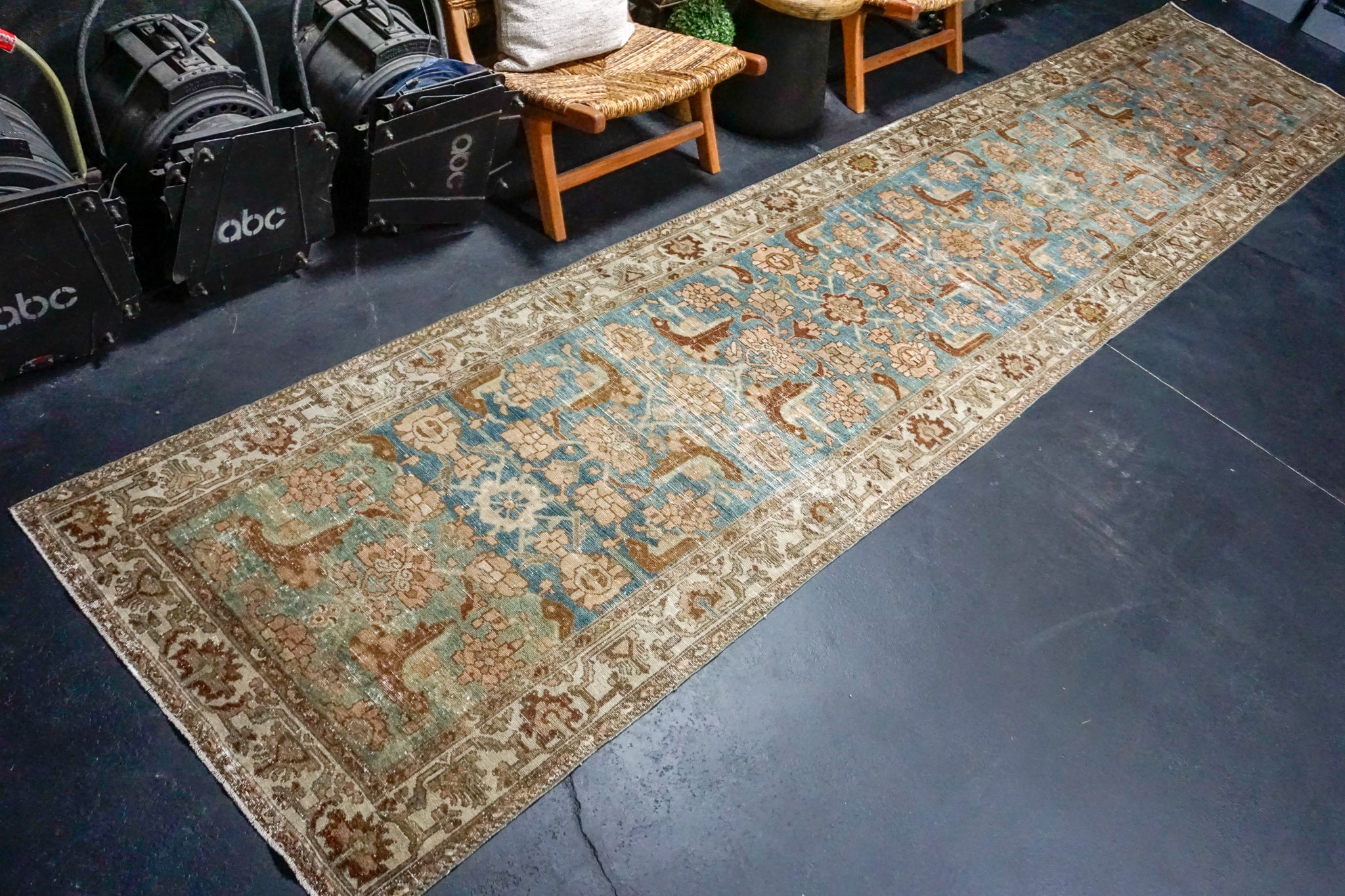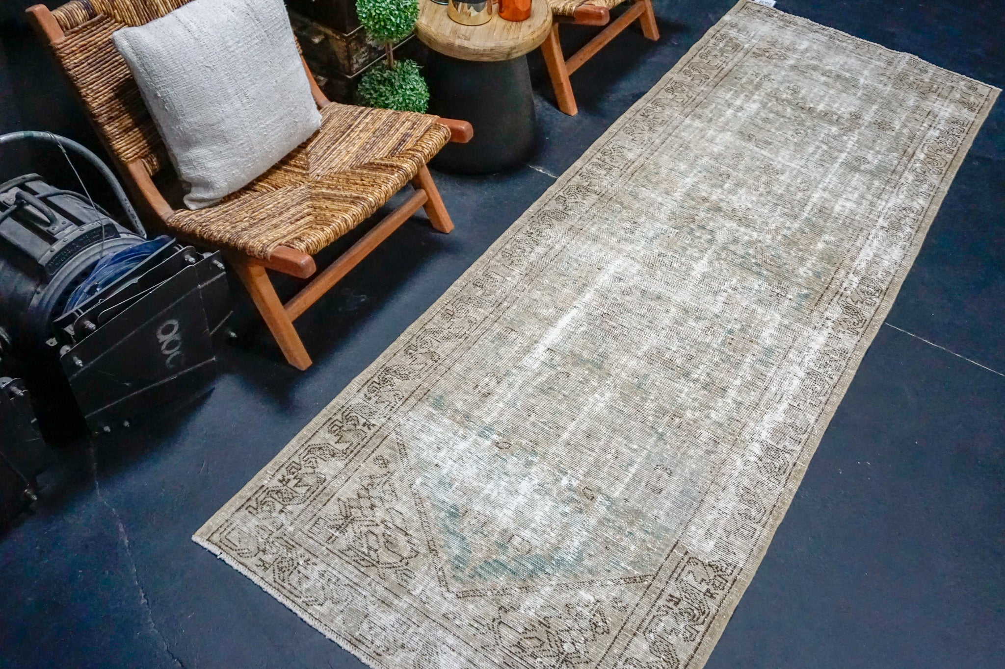 3’4 x 9’8 Classic Vintage Runner Muted Greige and Turquoise SB '4483