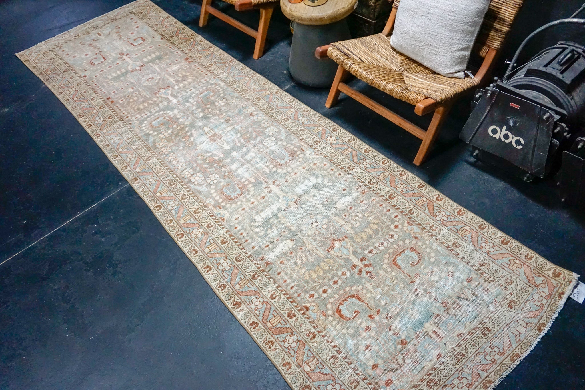 3’10 x 11’ Classic Vintage Runner Muted Light Denim, Sage + Cream '4439
