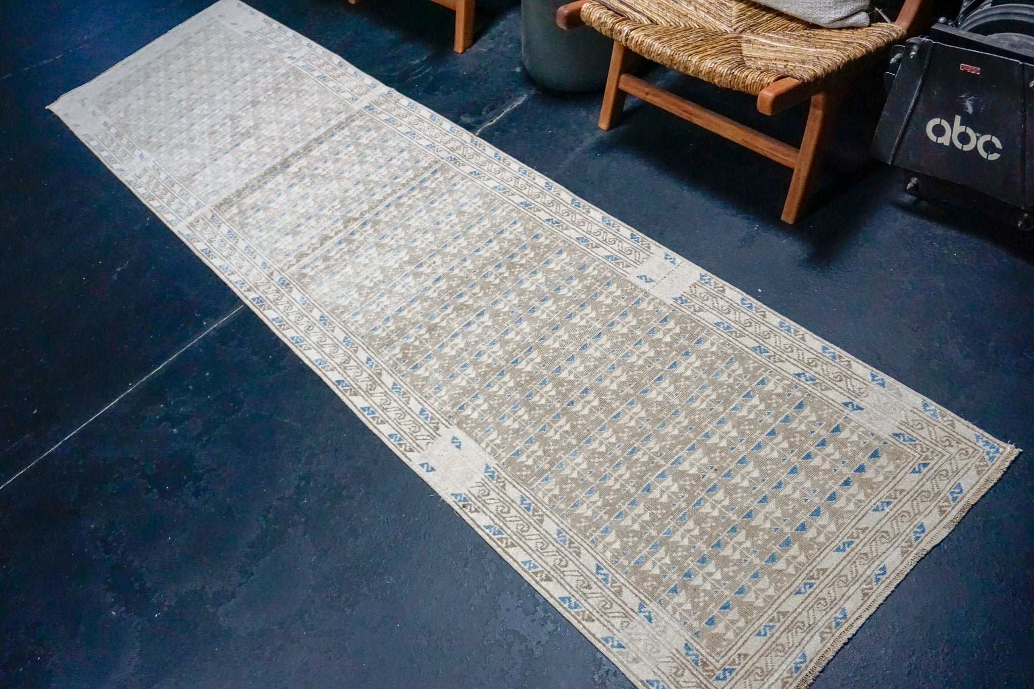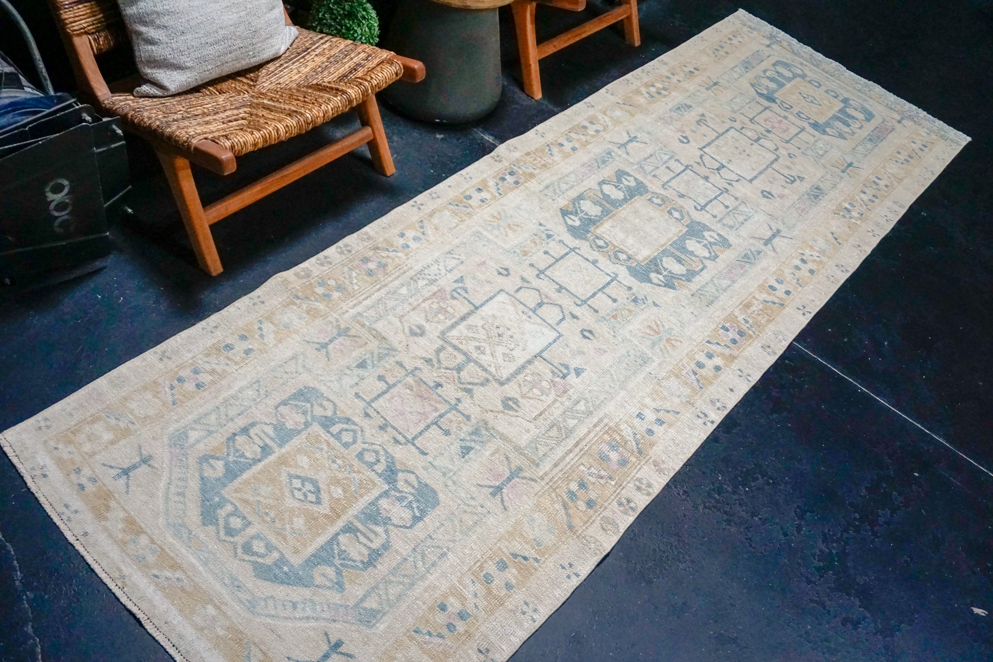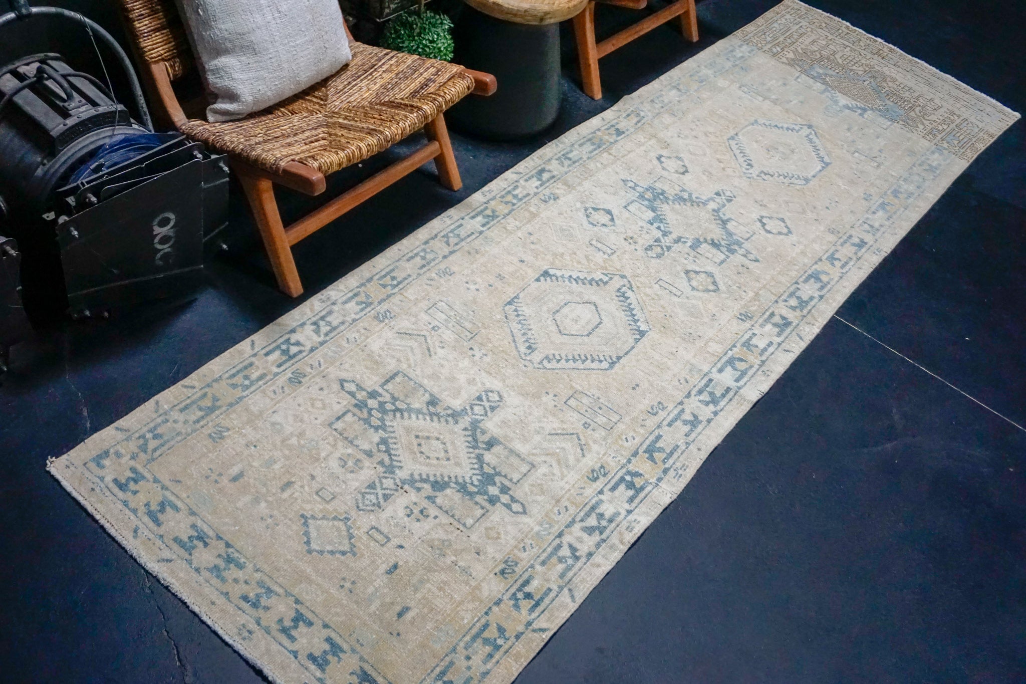 3’2 x 10’9 Classic Vintage Runner Muted Beige and Blue '4315