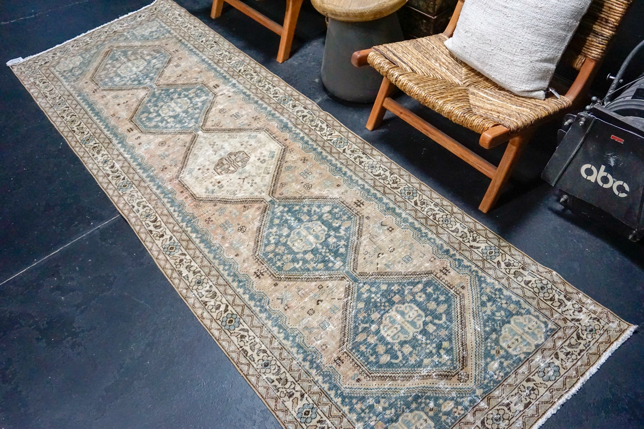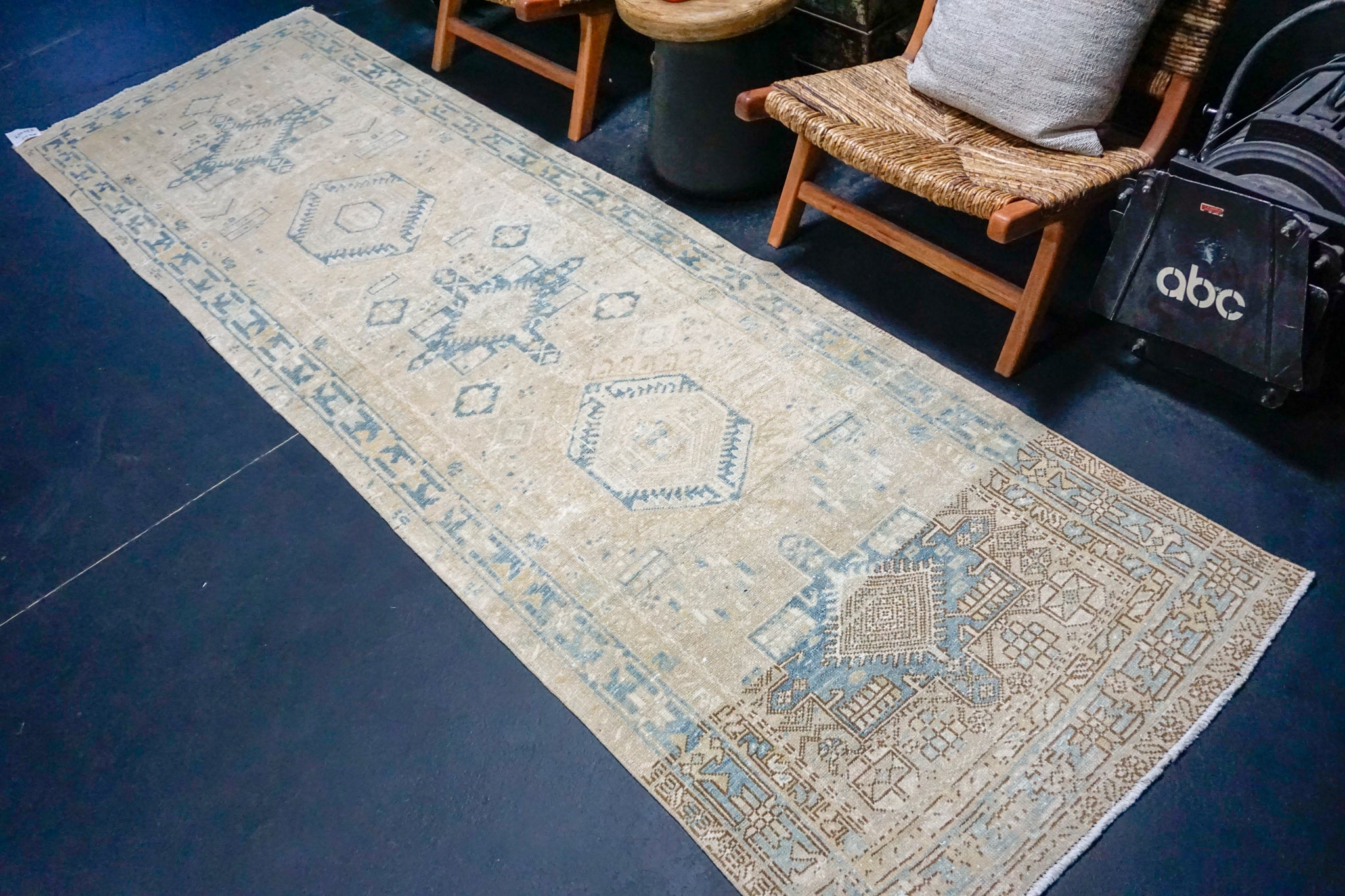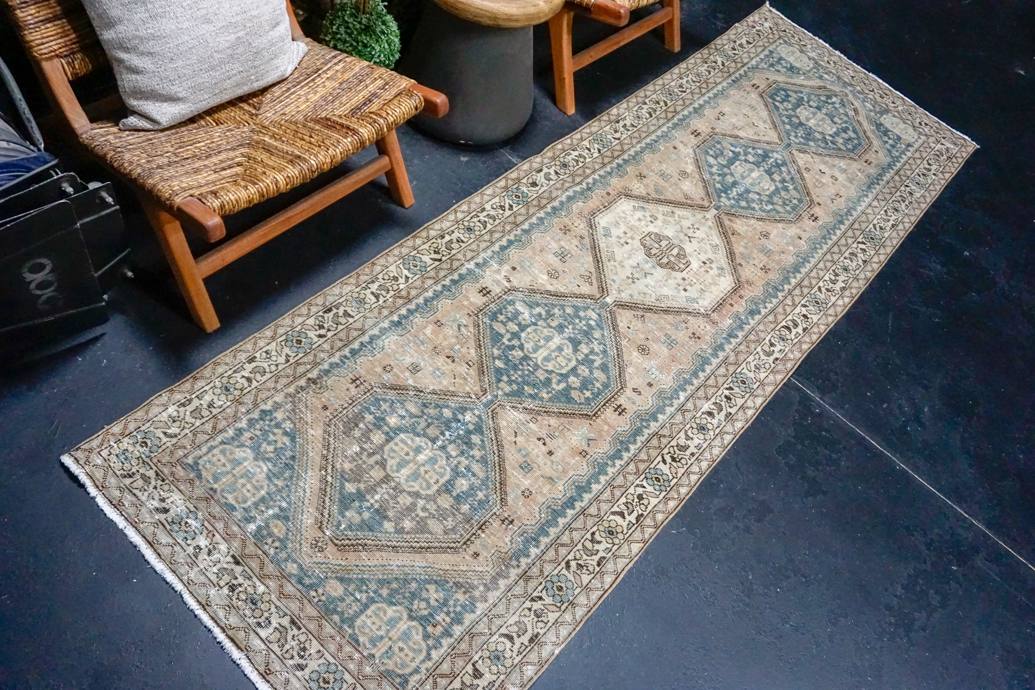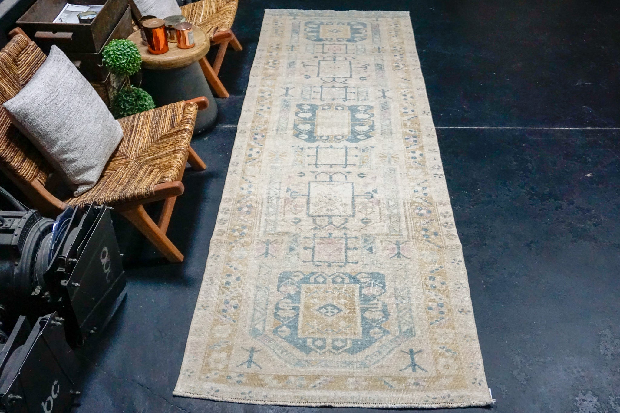 3’2 x 10’9 Classic Vintage Runner Muted Beige and Blue '4315